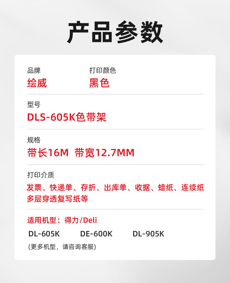 绘威DLS-605K色带适用得力DL-605K/DE-600K/DL-905K针式打印机色带架含芯