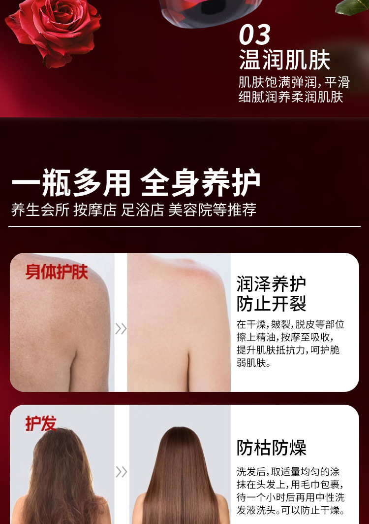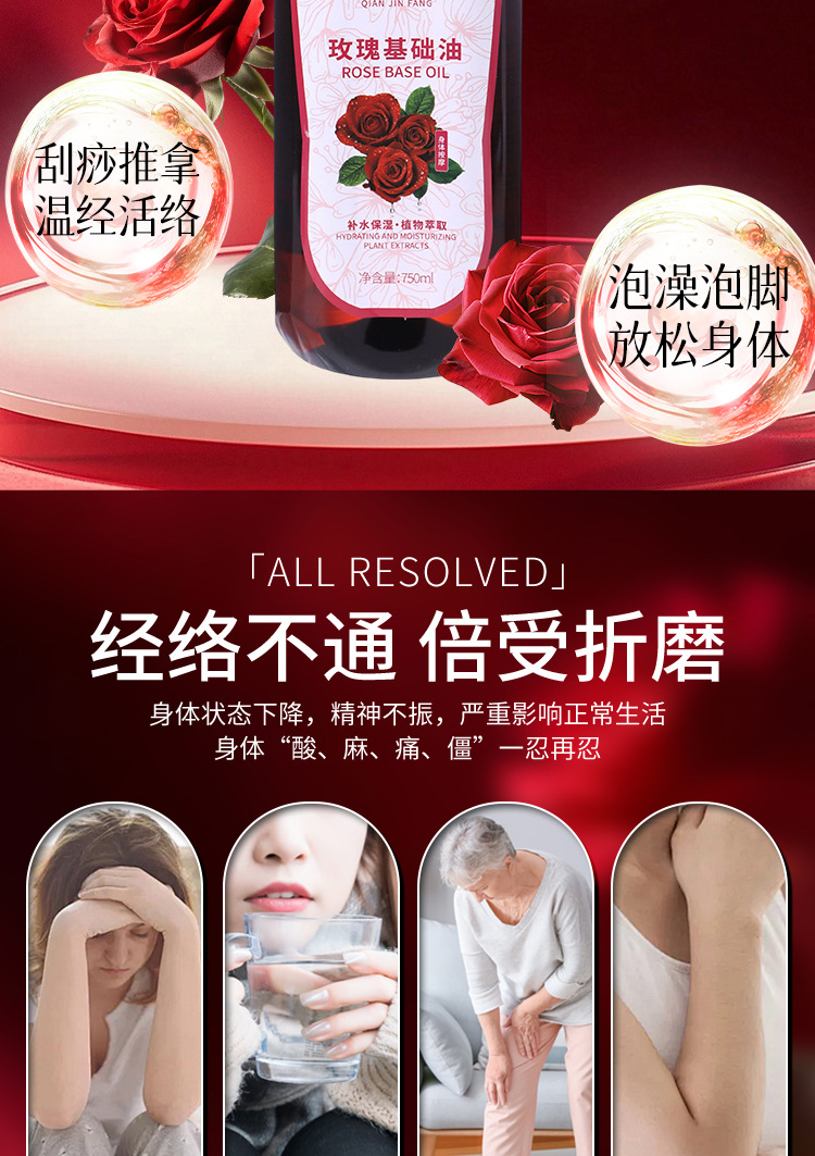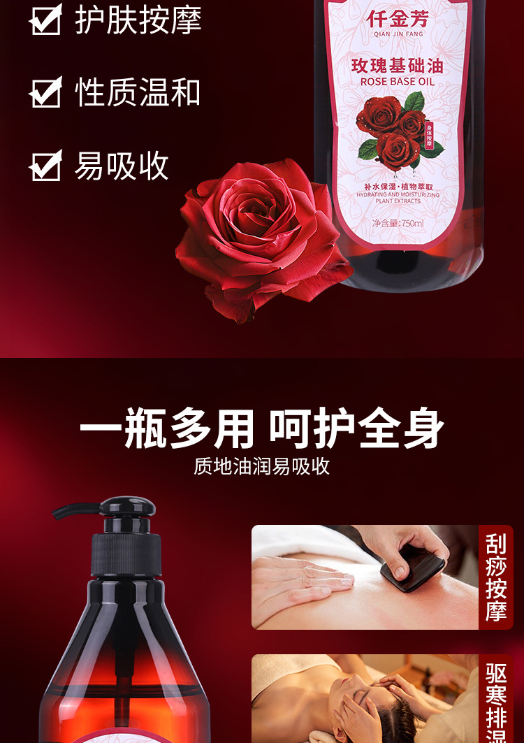玫瑰精油按摩全身体通经络大瓶美容院专用肩颈推拿开背spa刮痧油