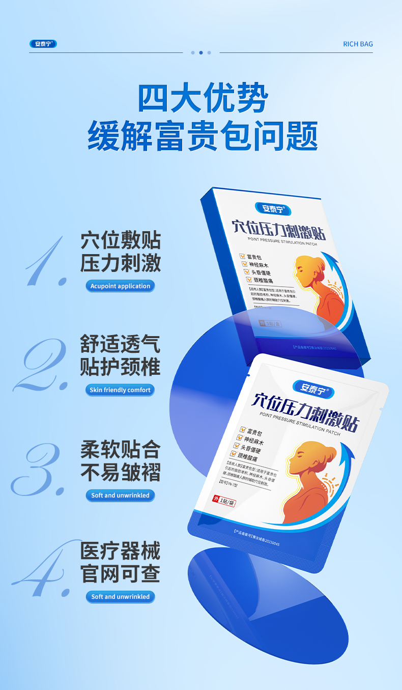 安泰宁穴位压力刺激贴适用于富贵包引起的神经麻木颈椎酸痛理疗贴