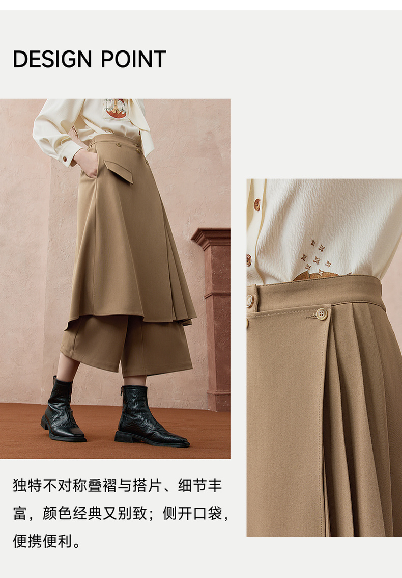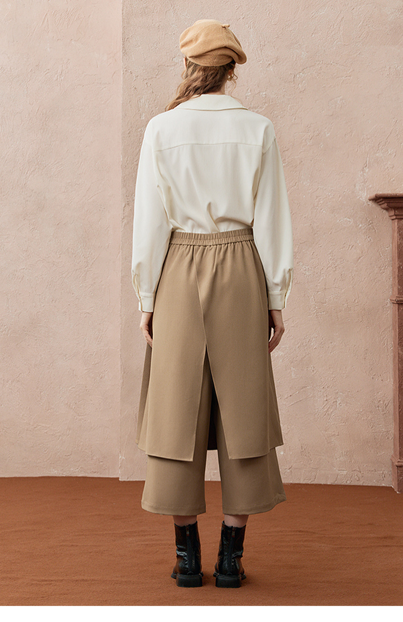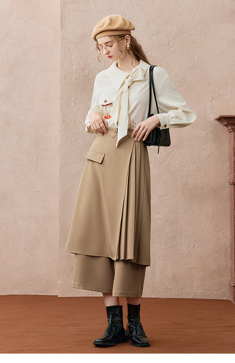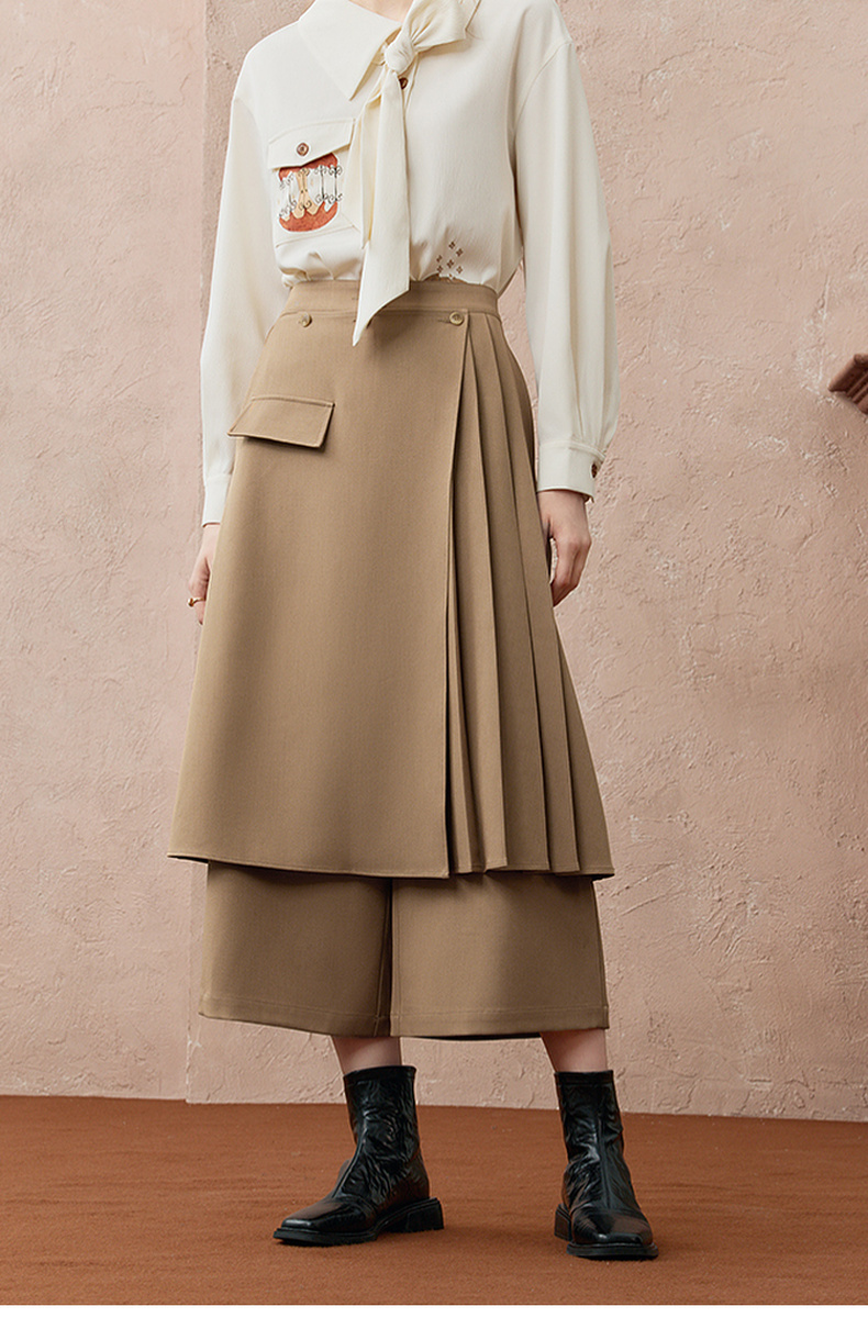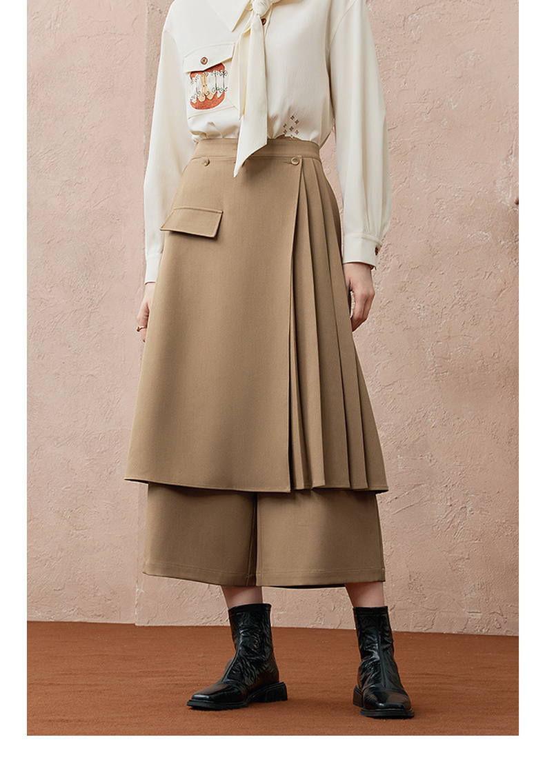 两三事暮廊旋诗2025秋新款时尚压褶布拼接假两件裙裤女阔腿休闲裤