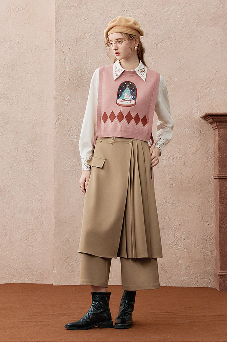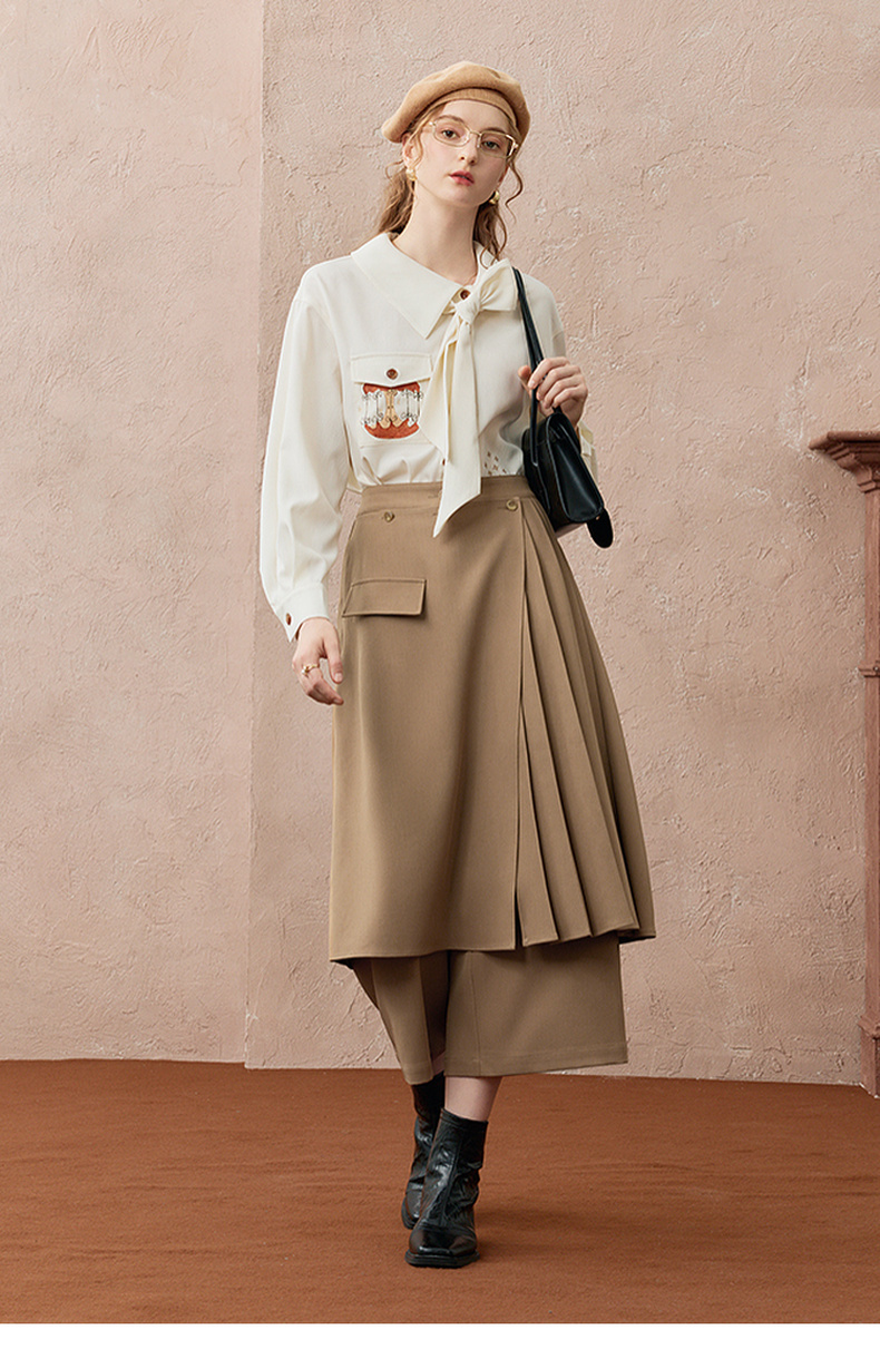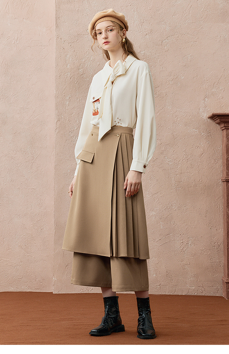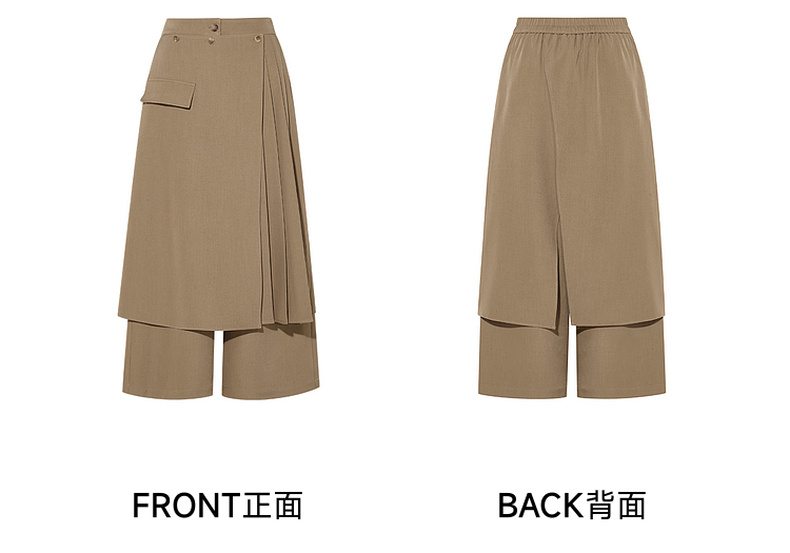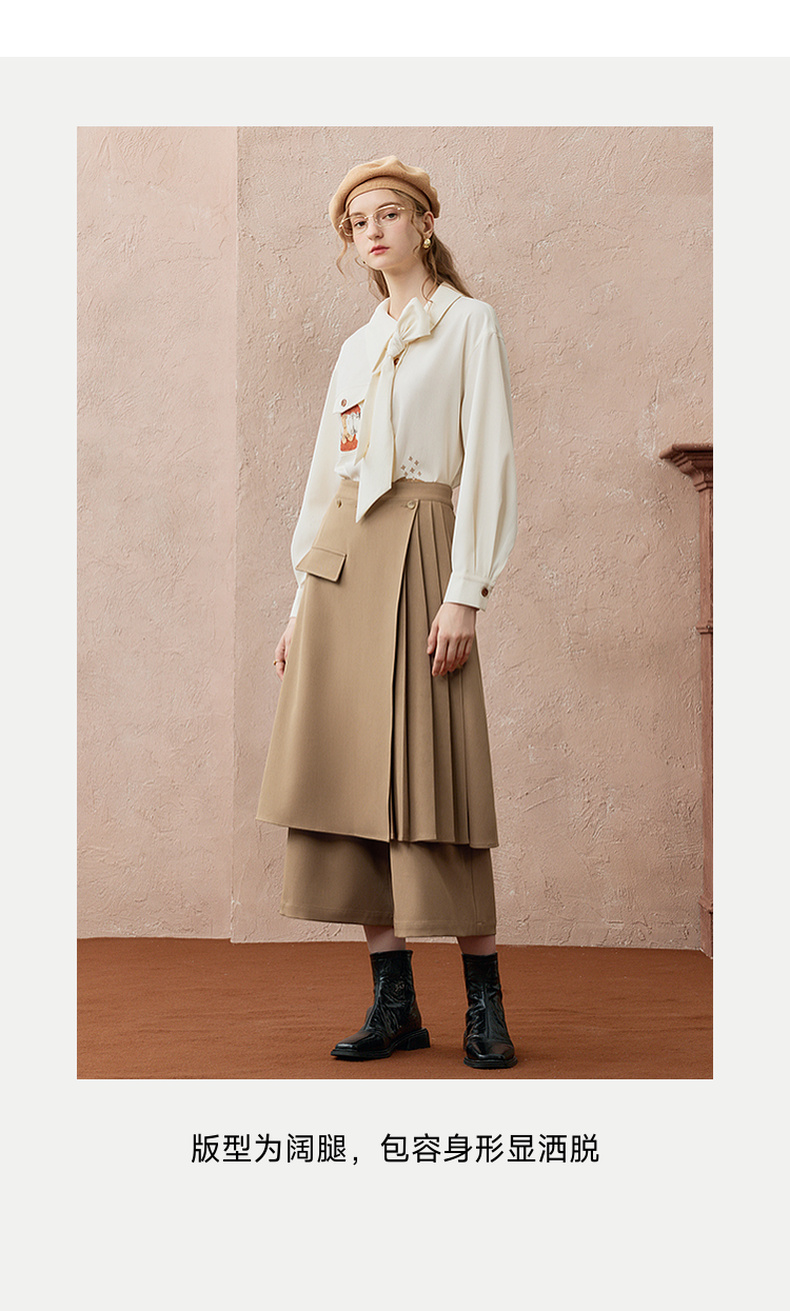 两三事暮廊旋诗2025秋新款时尚压褶布拼接假两件裙裤女阔腿休闲裤