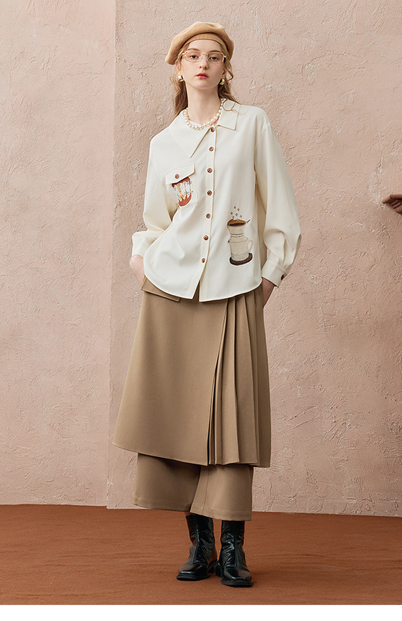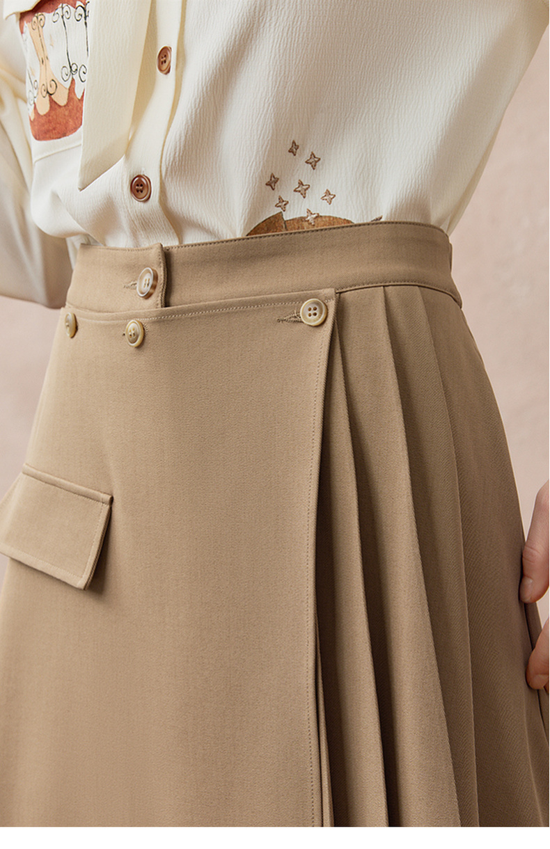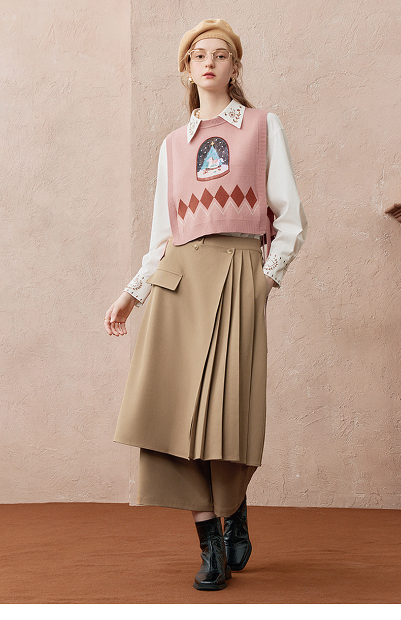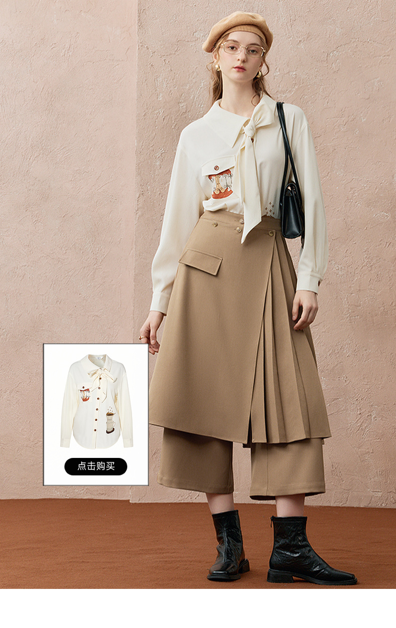 两三事暮廊旋诗2025秋新款时尚压褶布拼接假两件裙裤女阔腿休闲裤