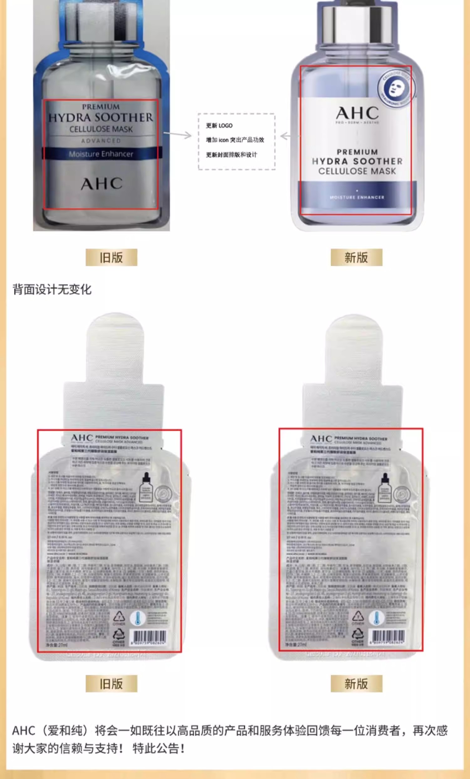 【保税仓】AHC第三代B5玻尿酸面膜 27ml*10片/盒