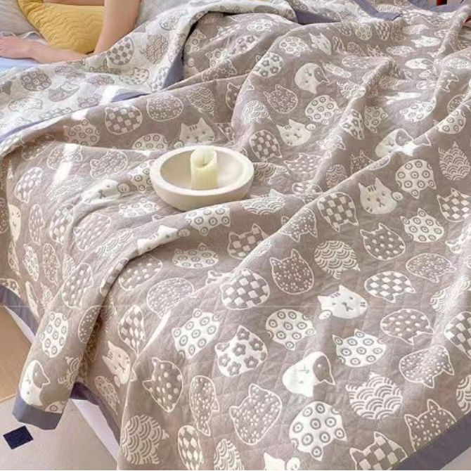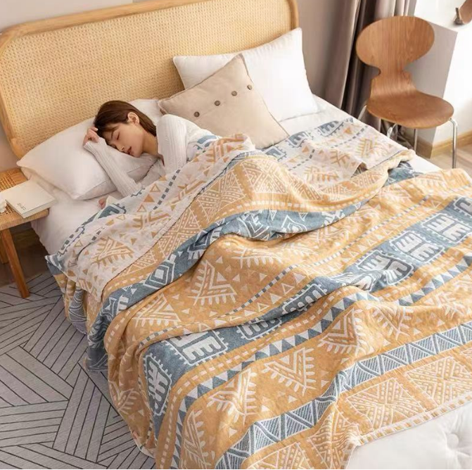 自然醒水洗棉色织提花盖毯全棉三层纱布毛巾被纯棉夏季毛毯办公室午睡毯WDF