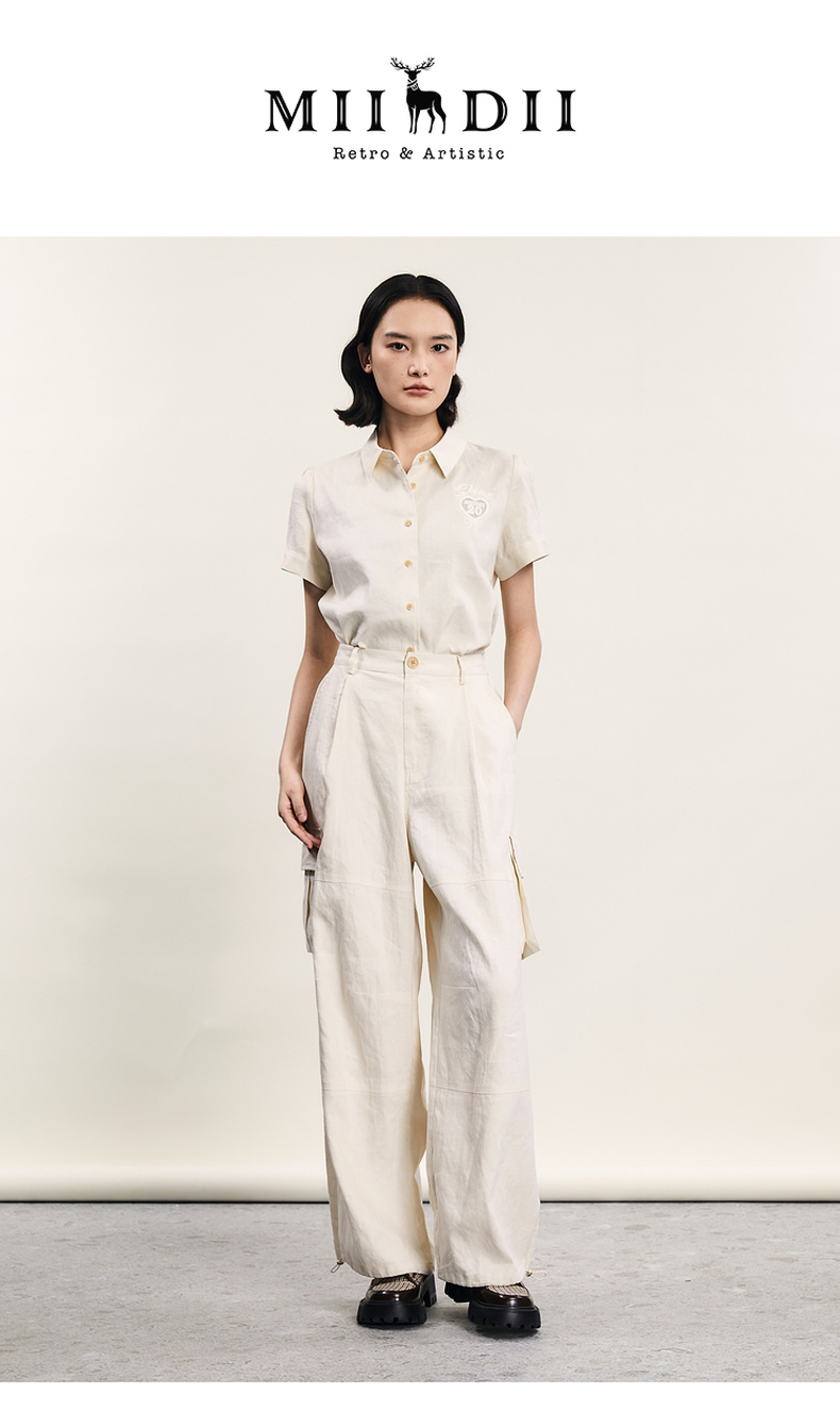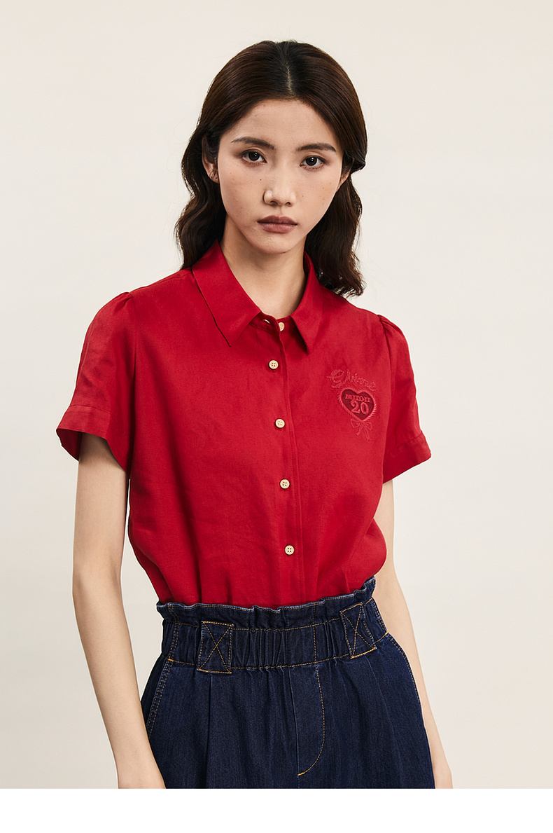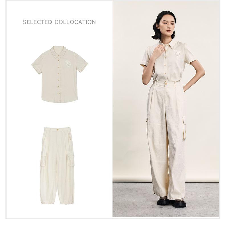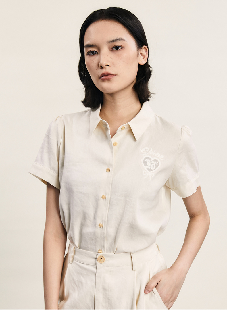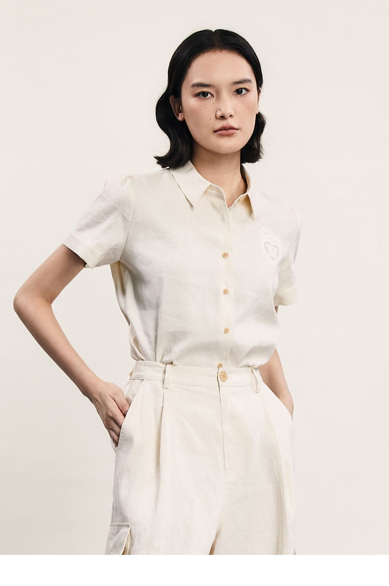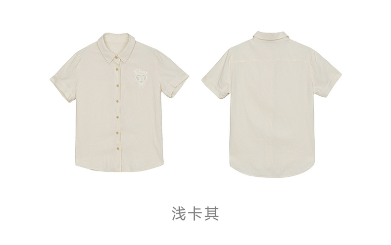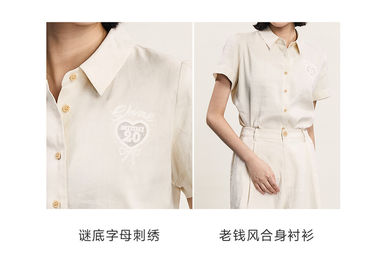 谜底衬衫短袖女士2024年夏季新品通勤风百搭H型刺绣衬衣242MC0626