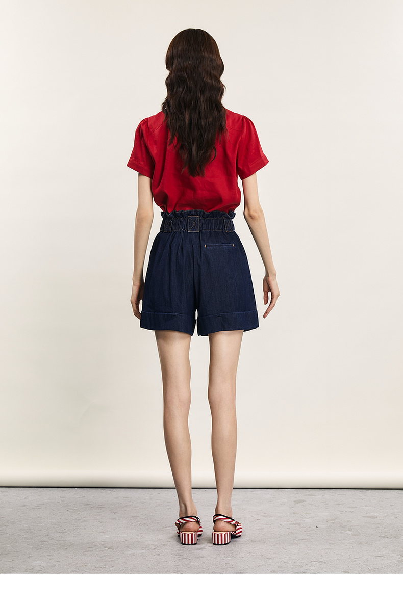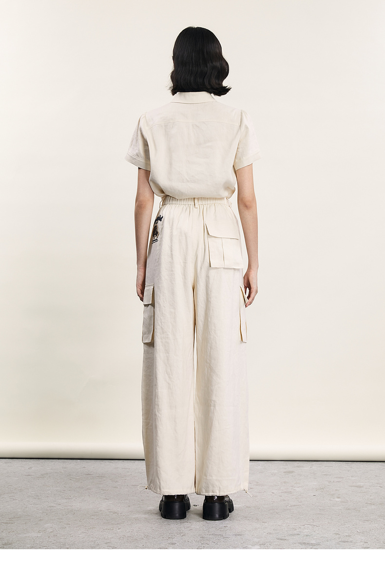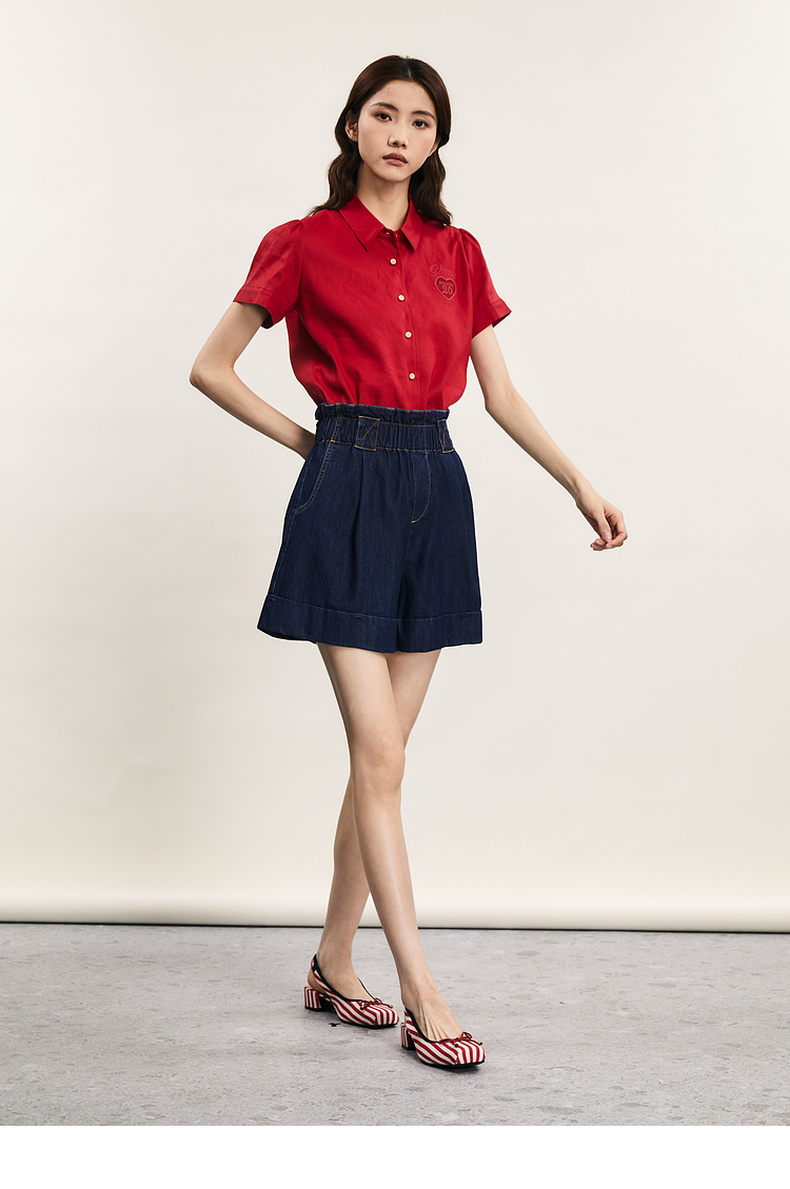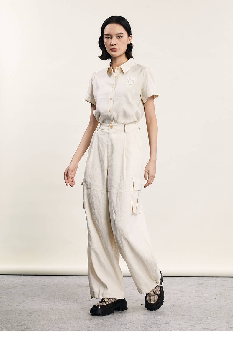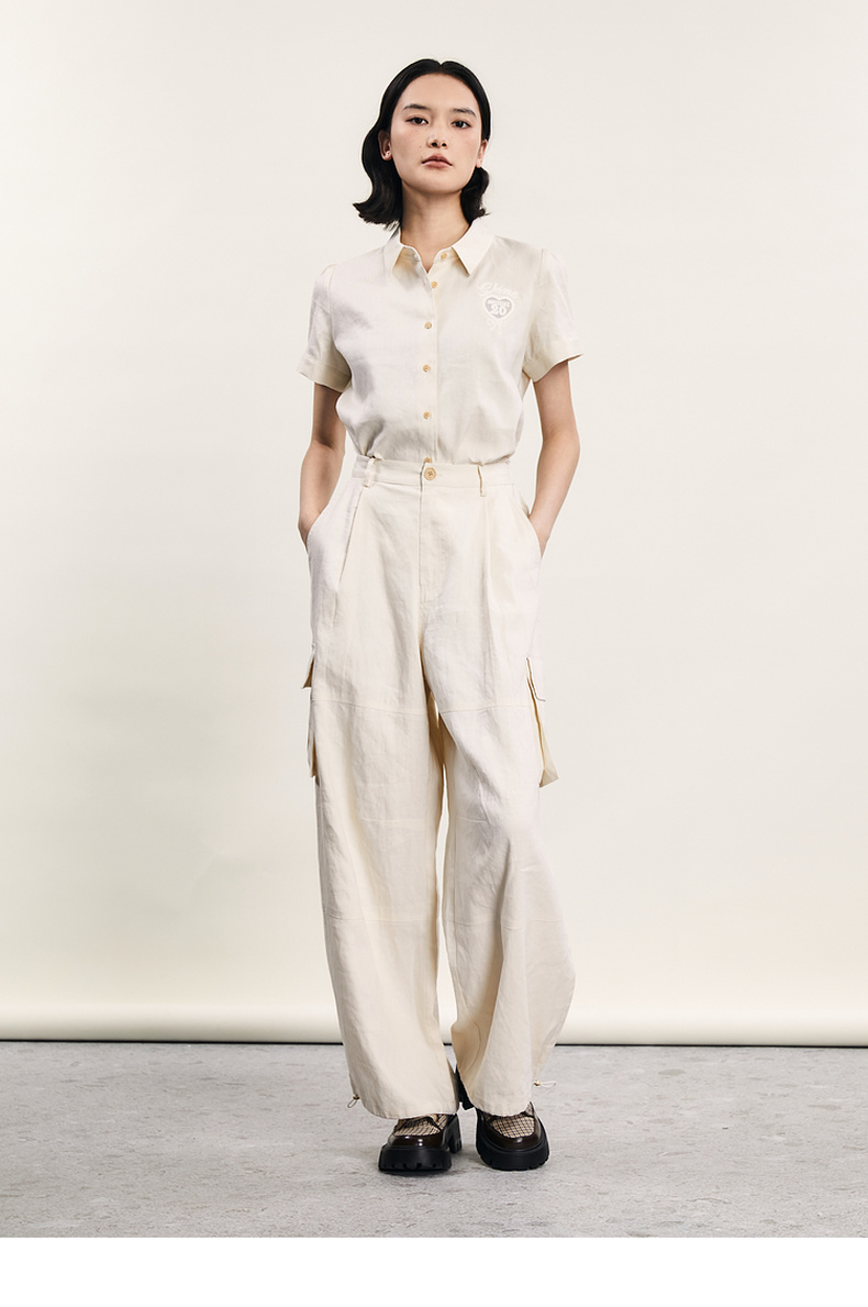 谜底衬衫短袖女士2024年夏季新品通勤风百搭H型刺绣衬衣242MC0626