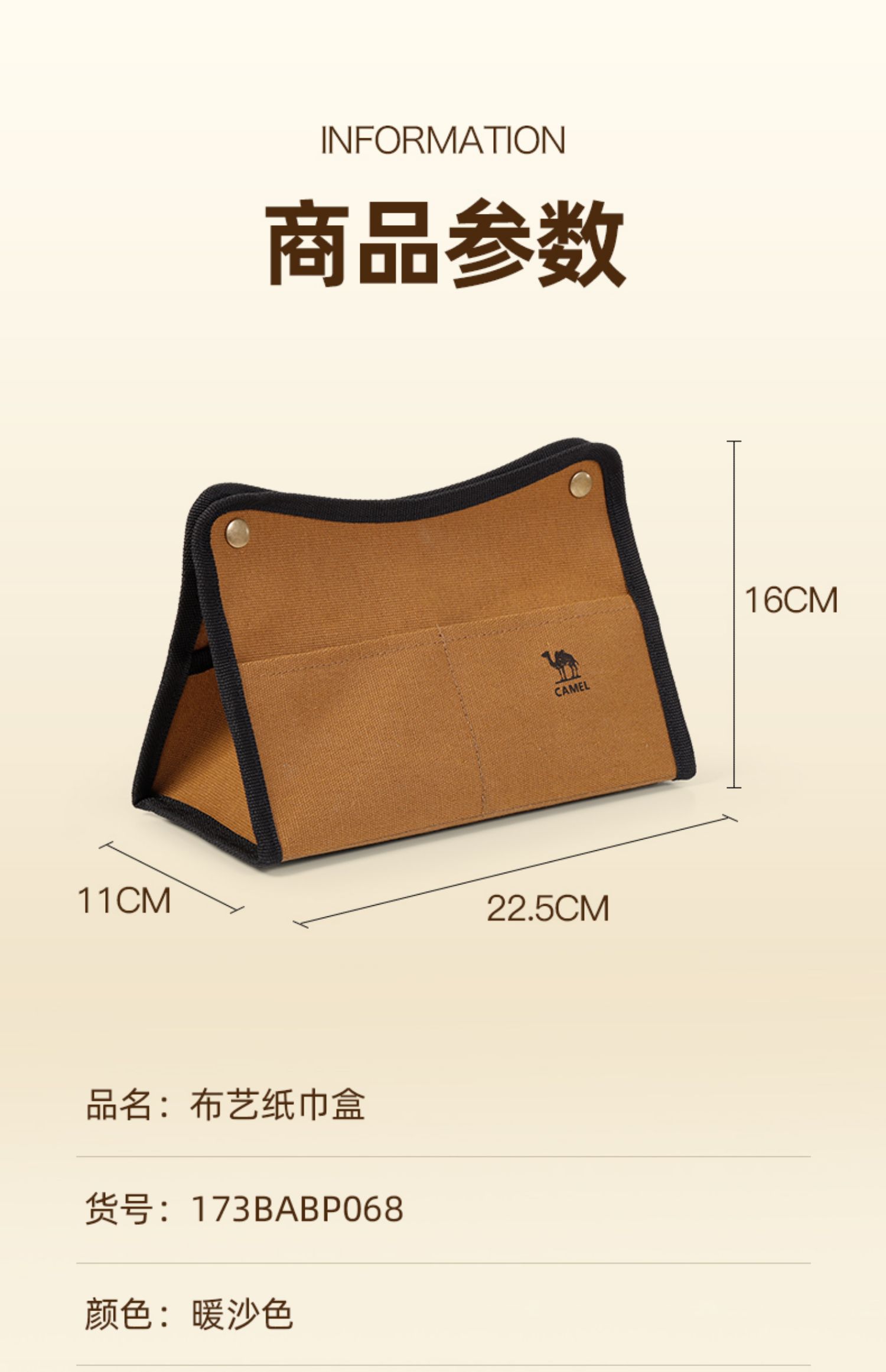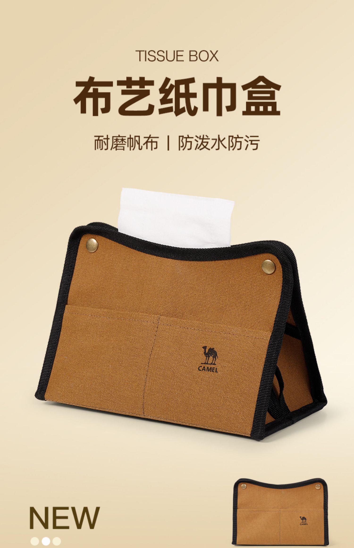 【会员日积分兑换】骆驼抽纸盒家用布艺茶几纸巾盒抽纸盒户外露营收纳便携防水纸盒卷 173BABP068