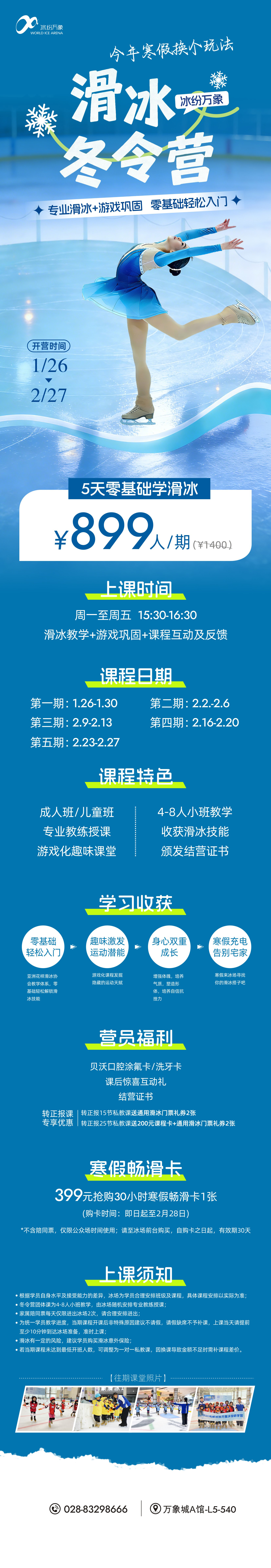 3. 为统一学员教学进度,当期课程开课后非特殊原因建议不请假,请假缺席不予补课,上课当天请提前至少10分钟到达冰场准备,准时上课;