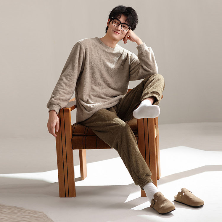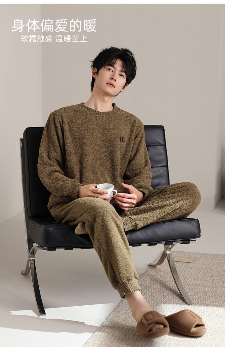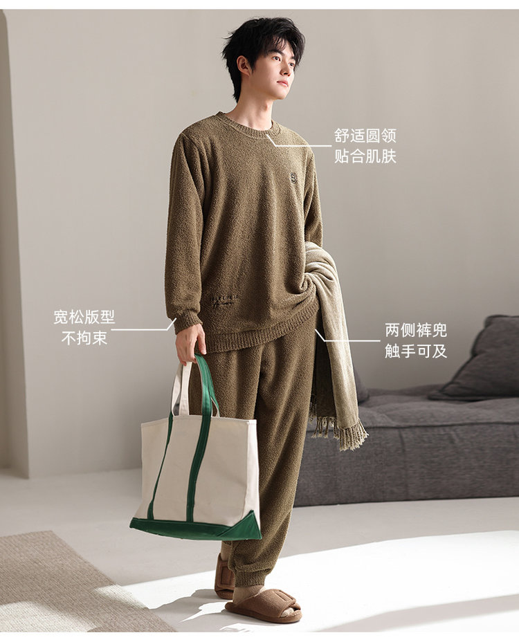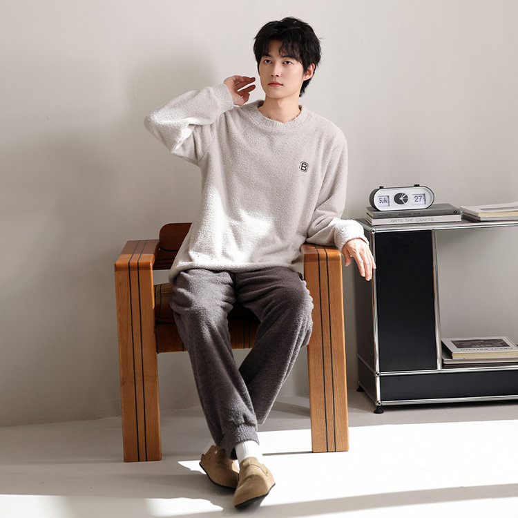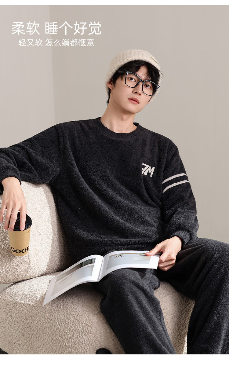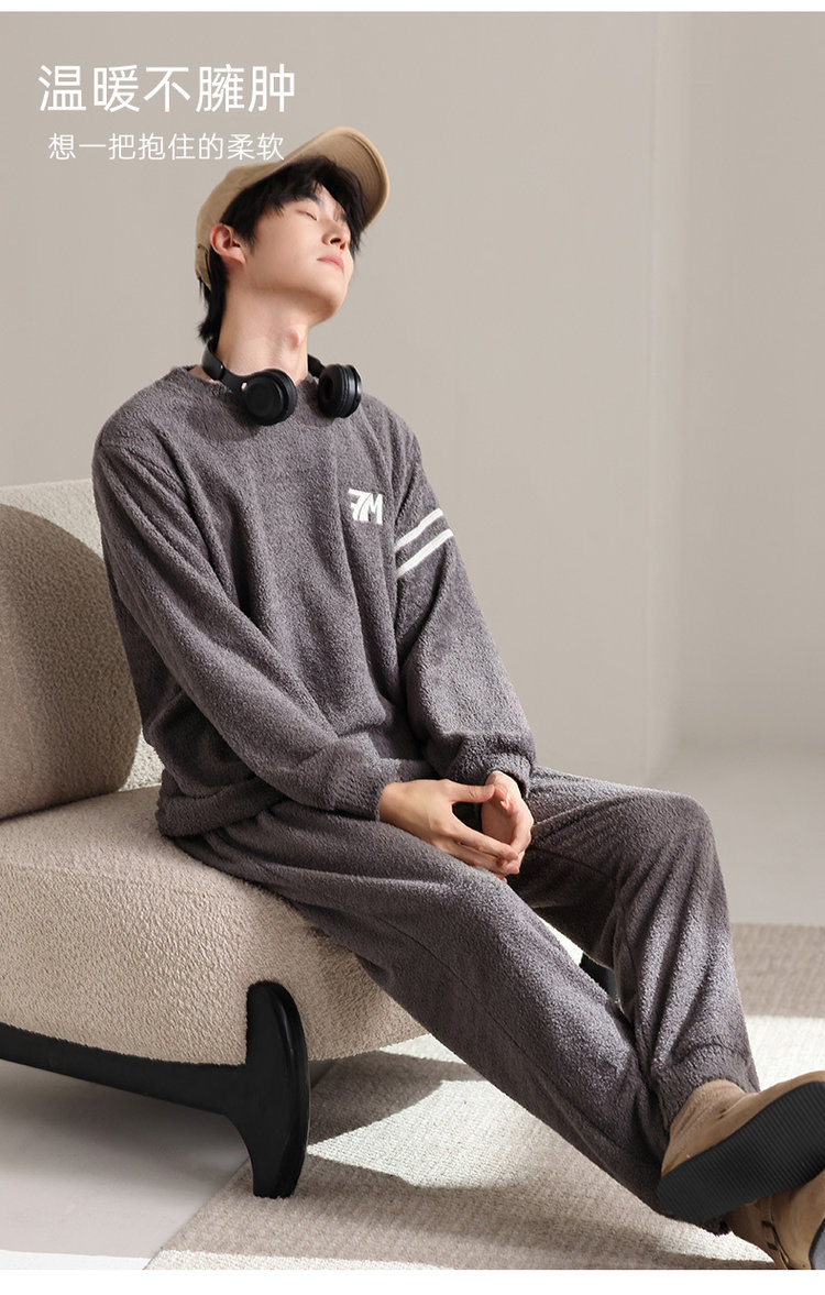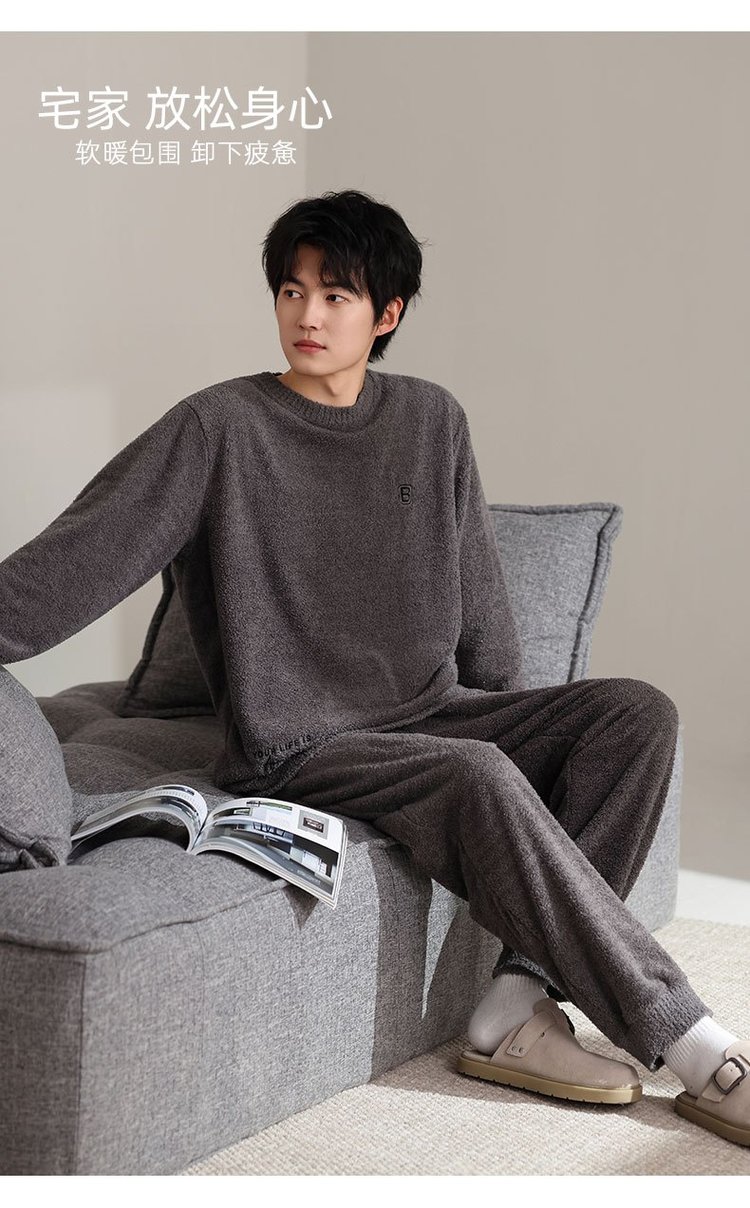 【品名】宅家半边绒男款家居服套装