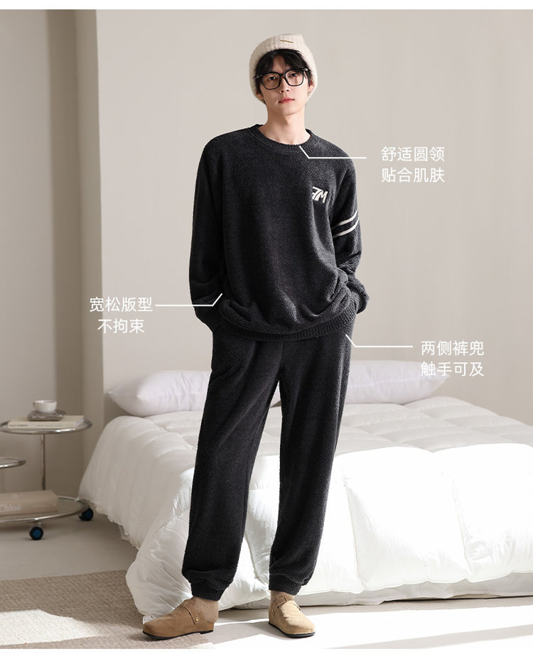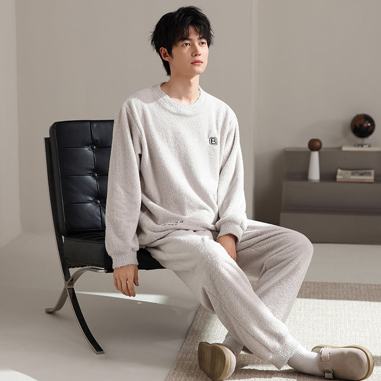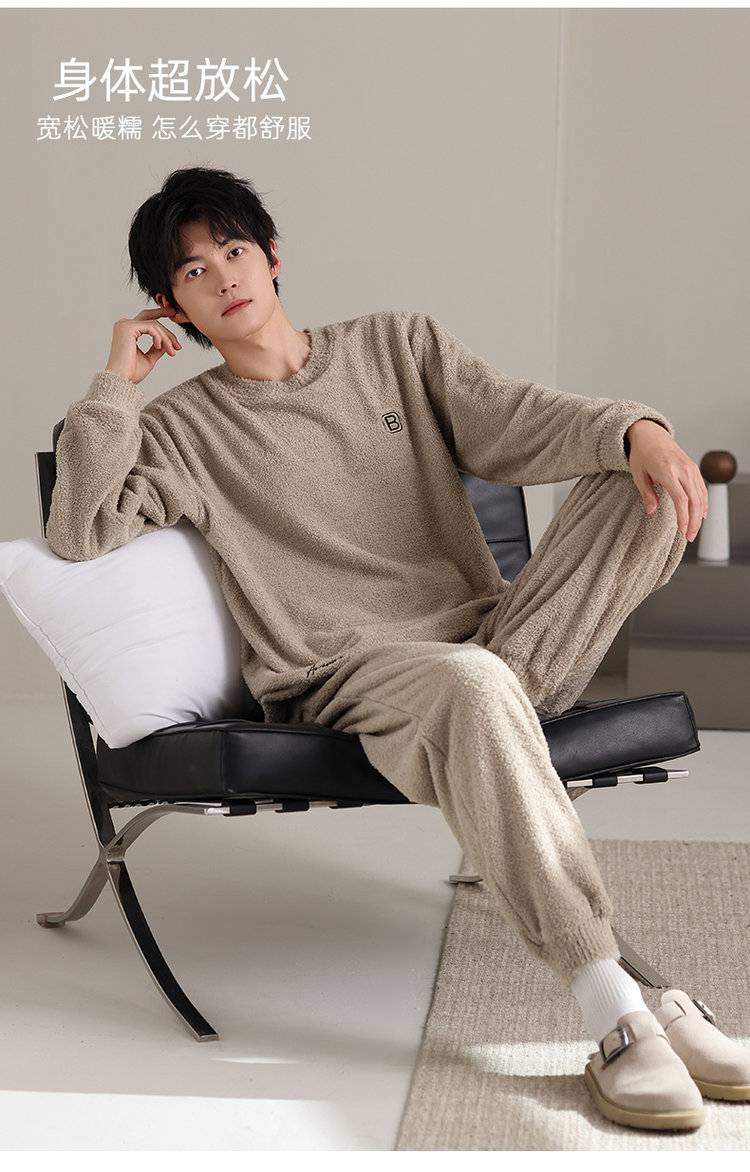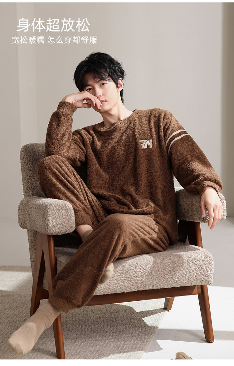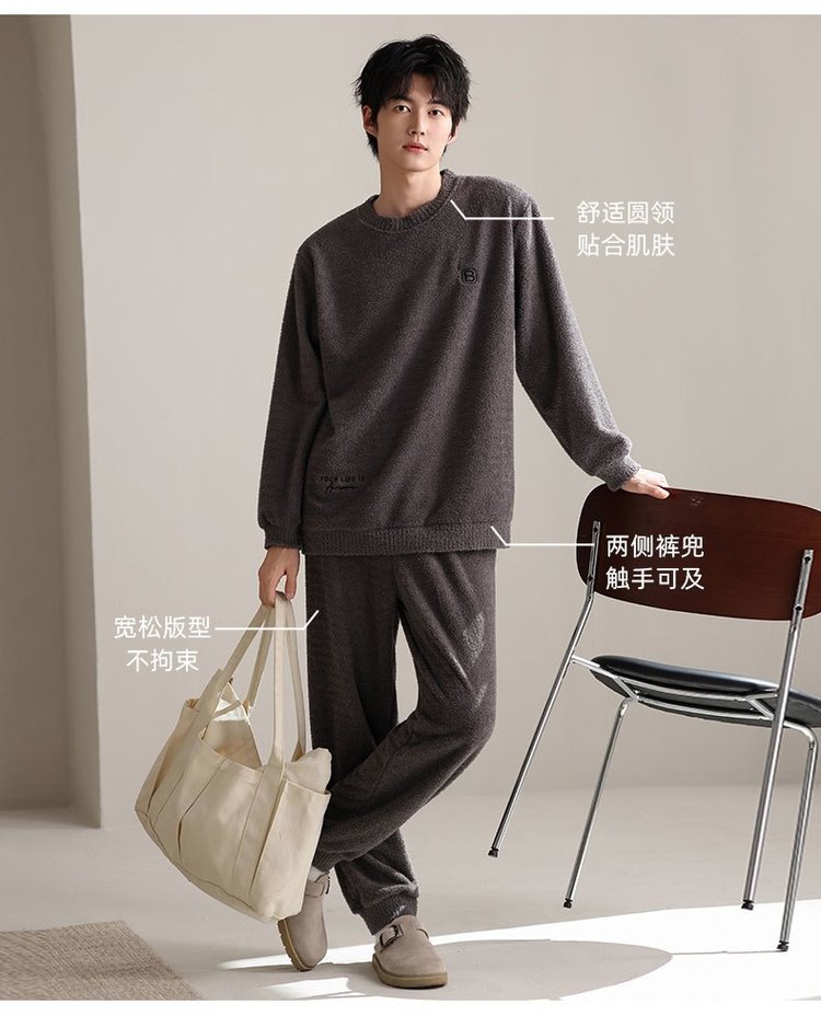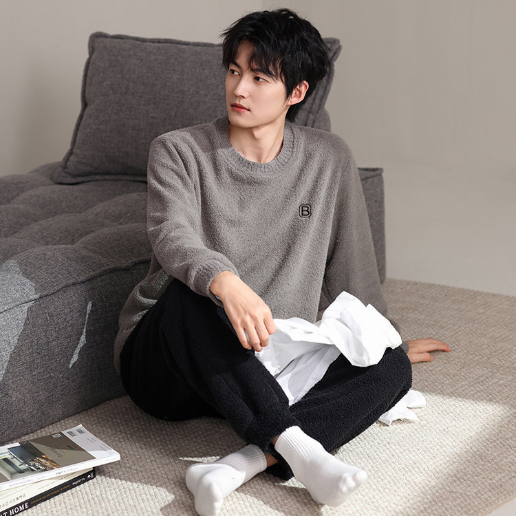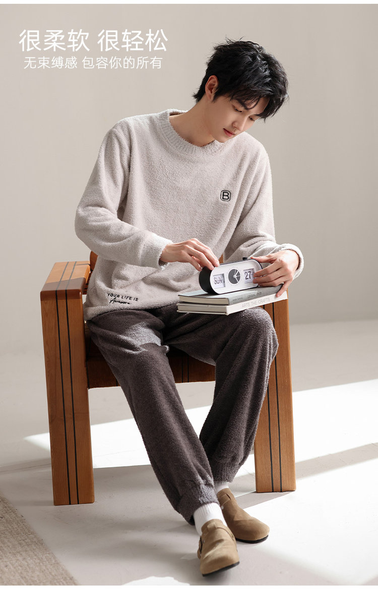 【品名】宅家半边绒男款家居服套装