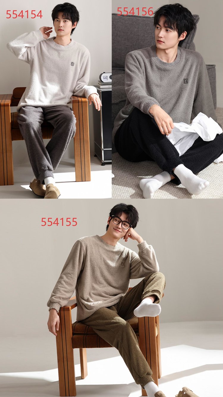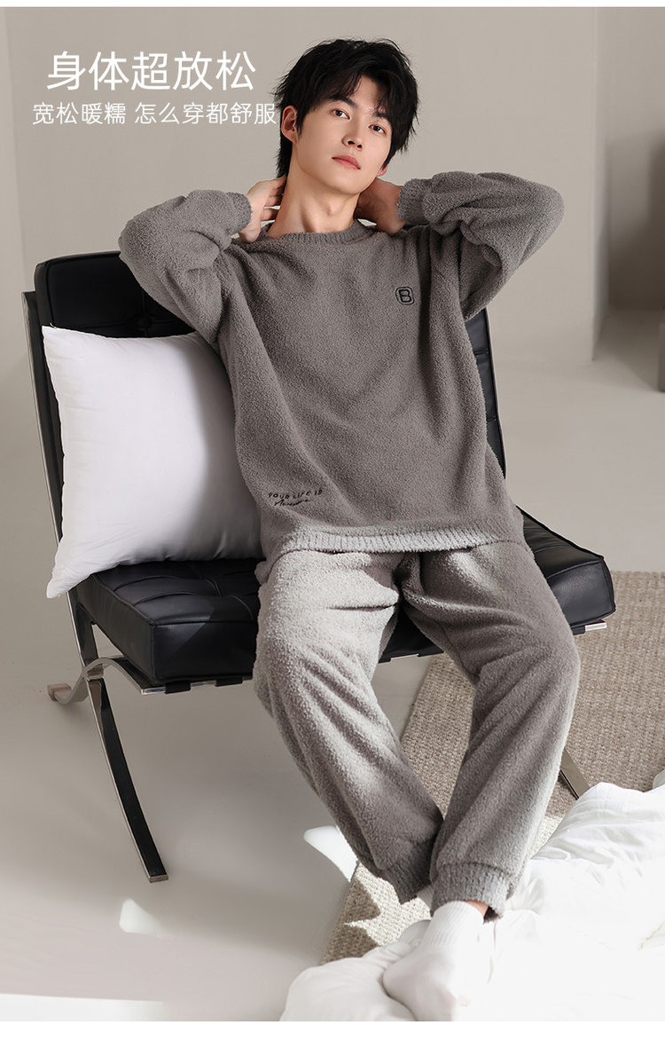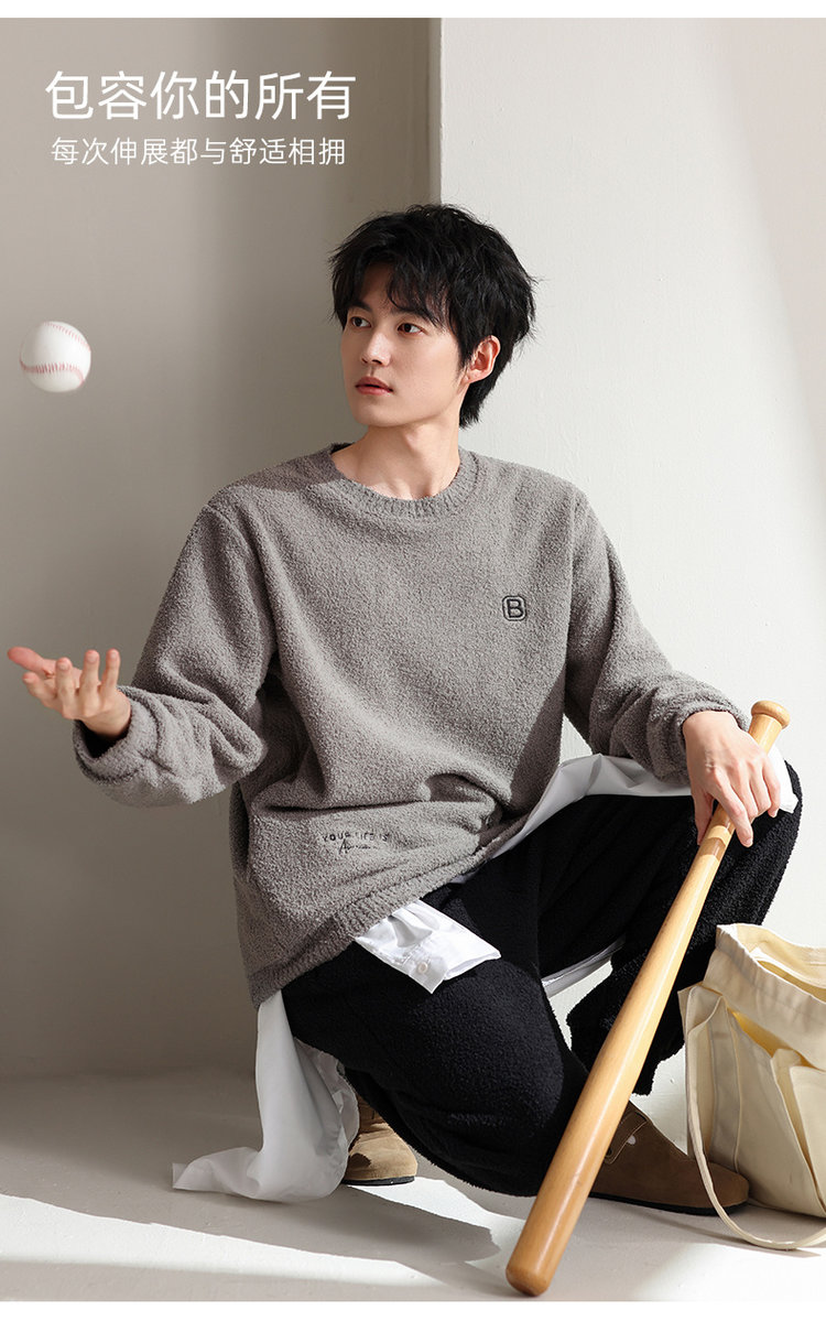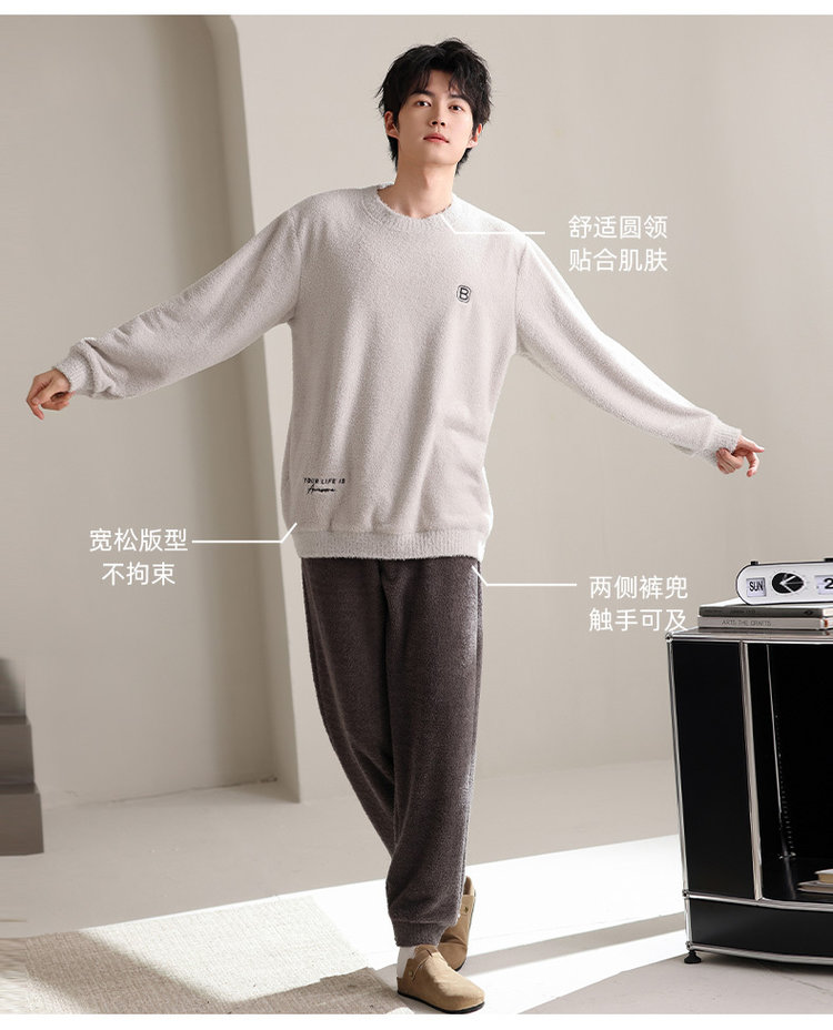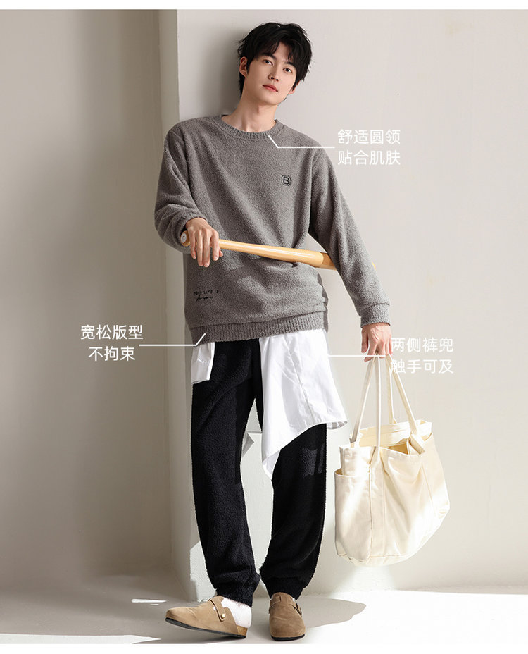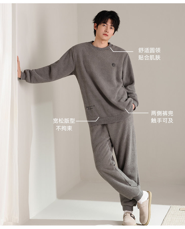【品名】宅家半边绒男款家居服套装