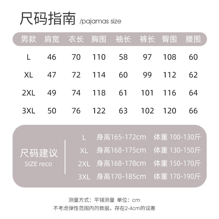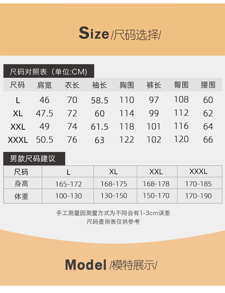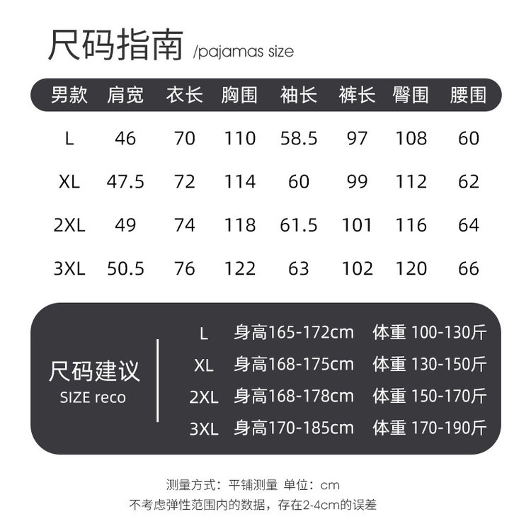 【尺码】L(100-130斤),XL(130-150斤),2XL(150-170斤),3XL(170-190斤)