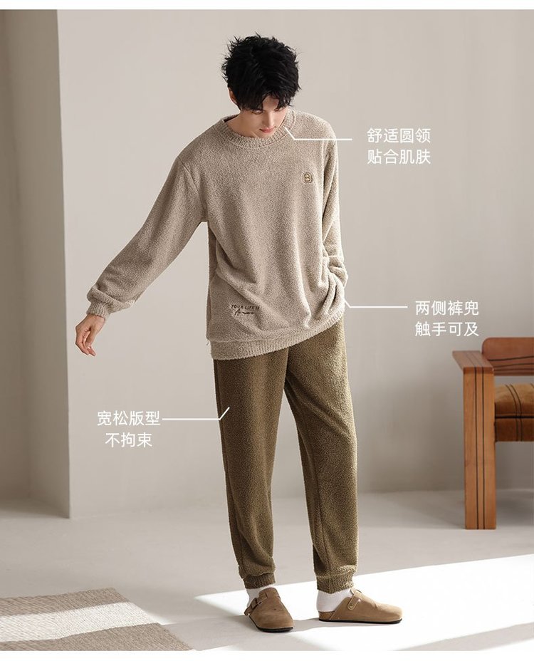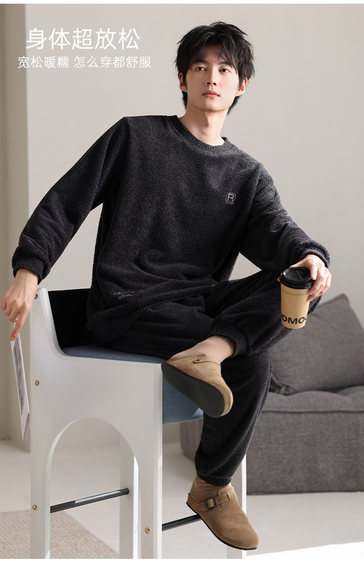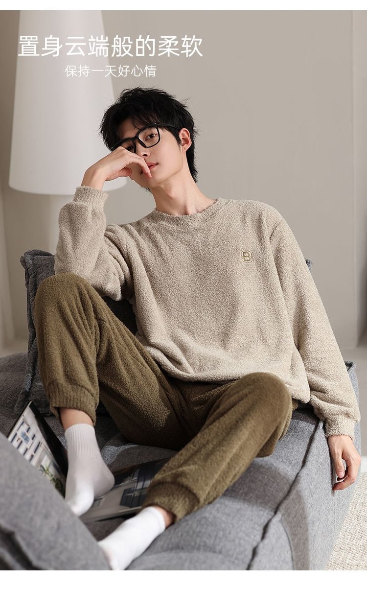 【宅家半边绒男款家居服套装】🛍️加厚奶舒绒睡衣套装,超级软糯如奶油一般柔软丝滑,质感惊人,毛茸茸软绵绵简直太舒服了-XJC
