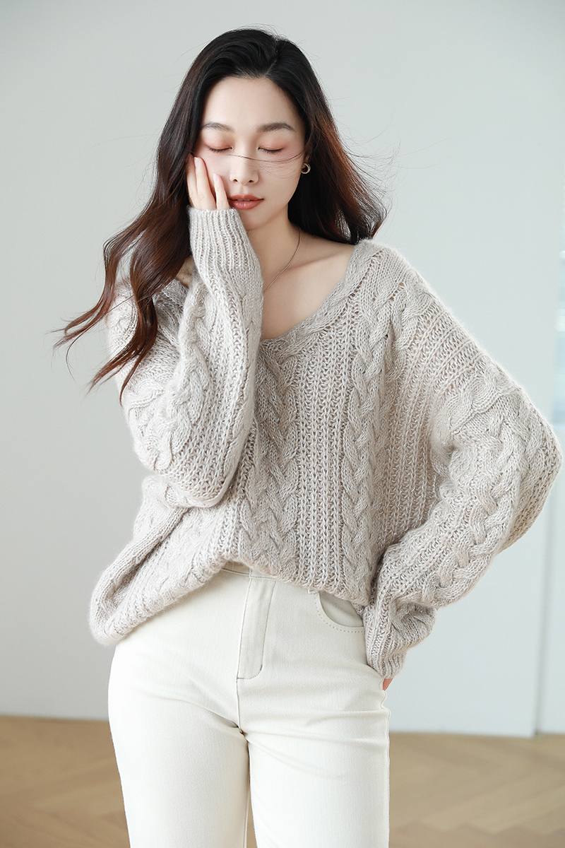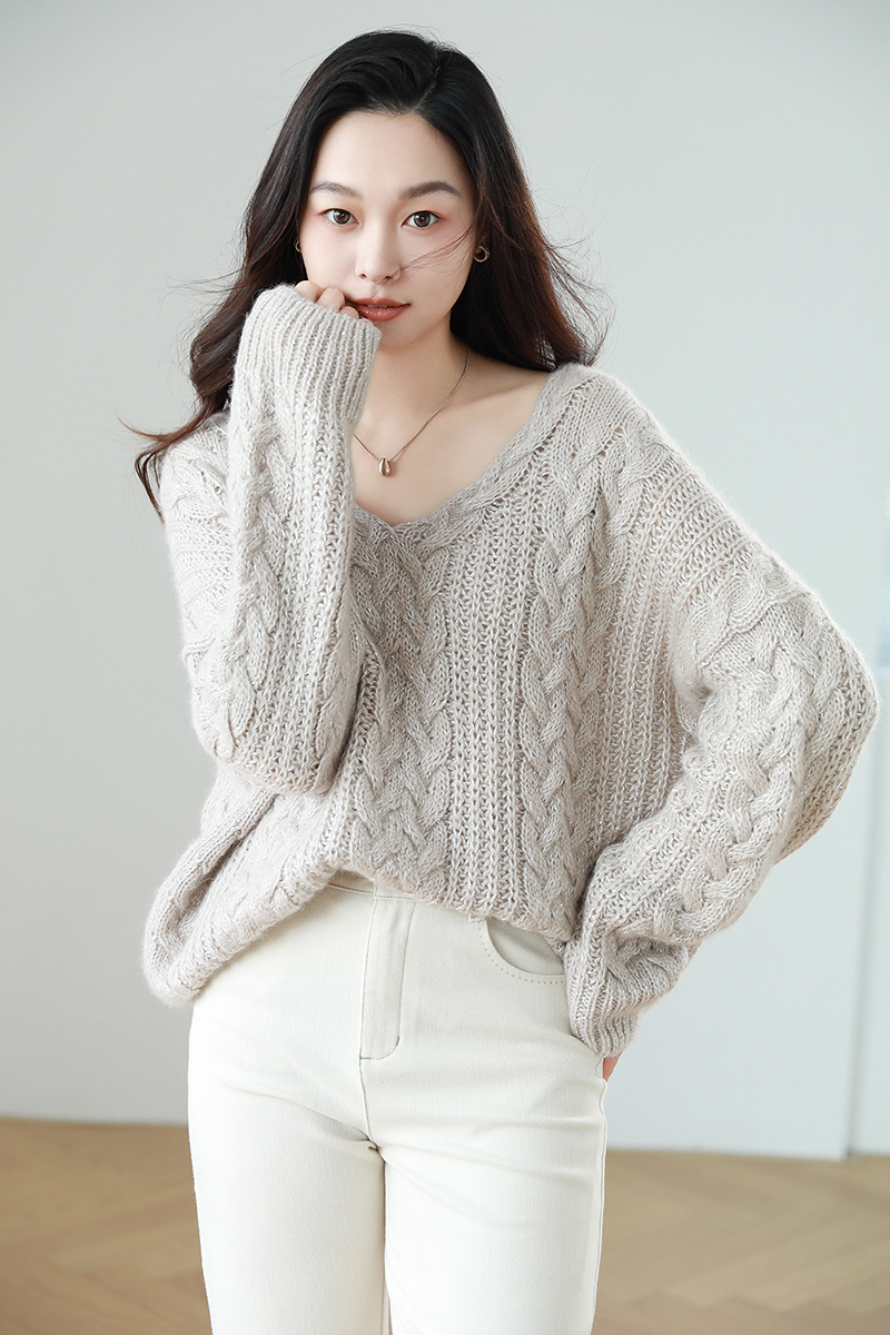 火桐hooton 冬日恋歌 羊绒蚕丝珠片V领套头衫8585