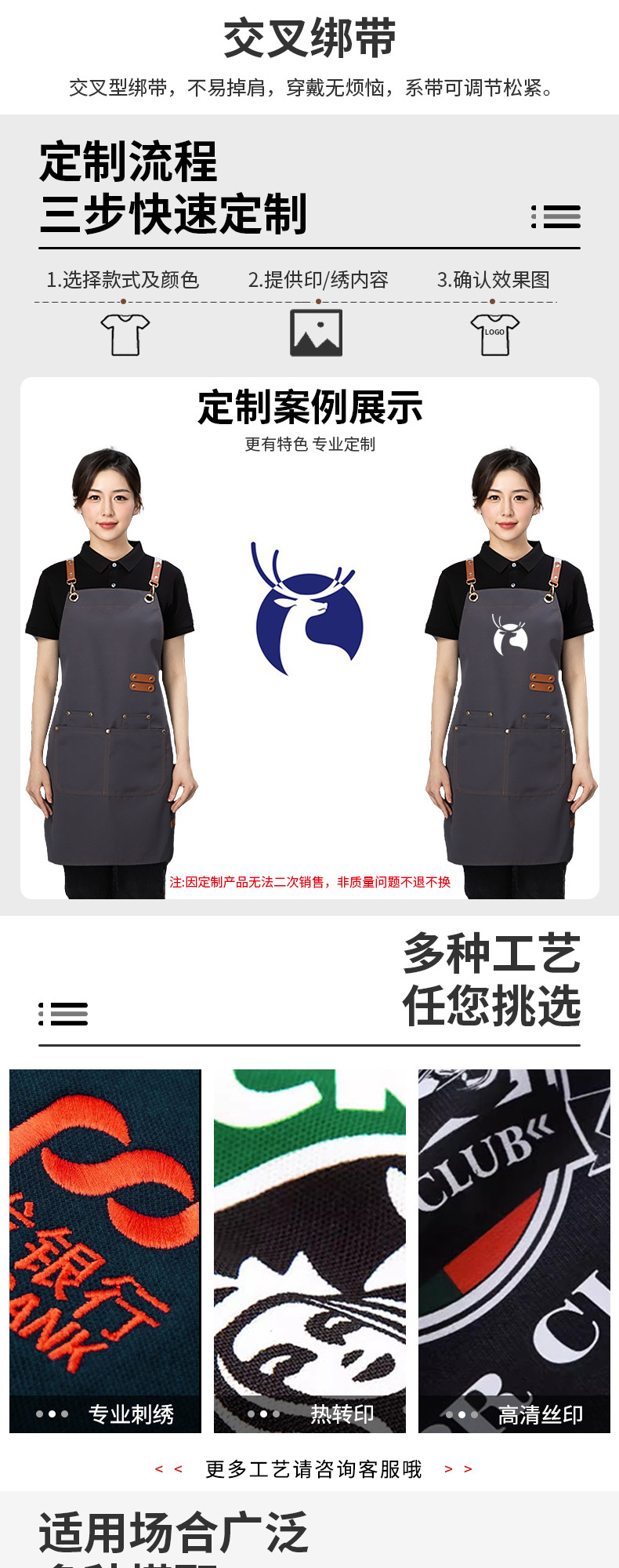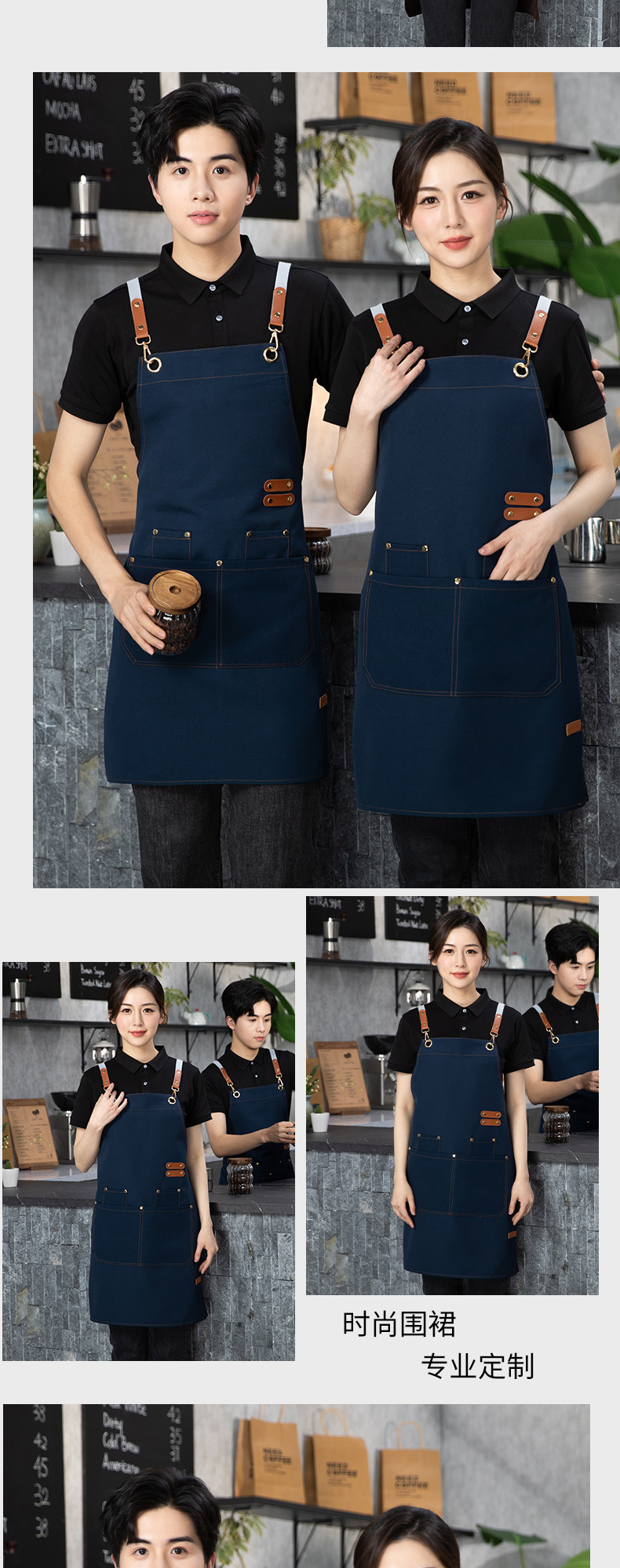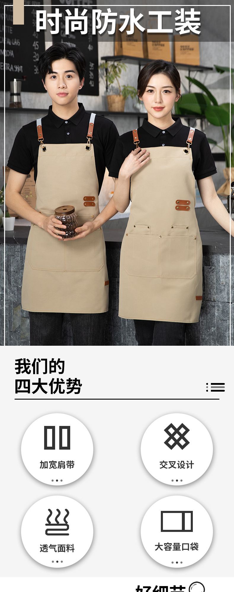 防水帆布围裙现货耐脏耐磨透气厨房餐饮服务员印字logo可定 制
