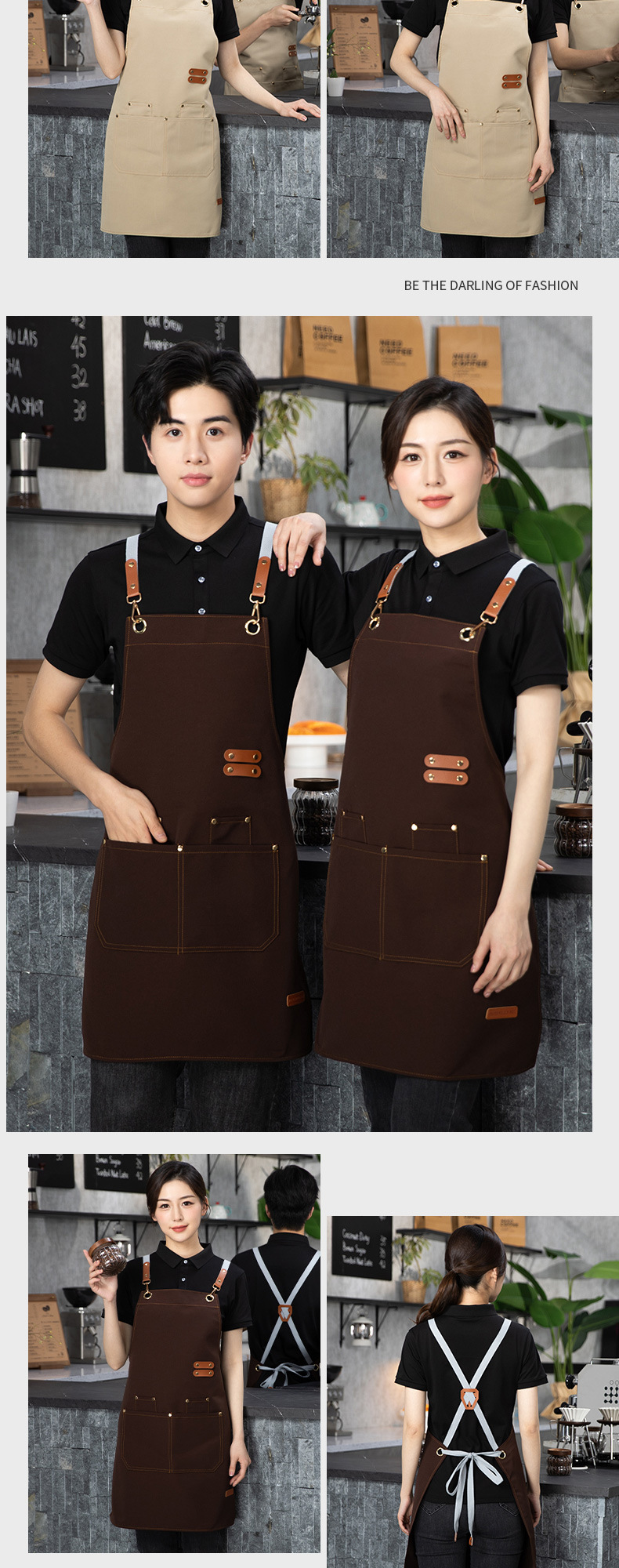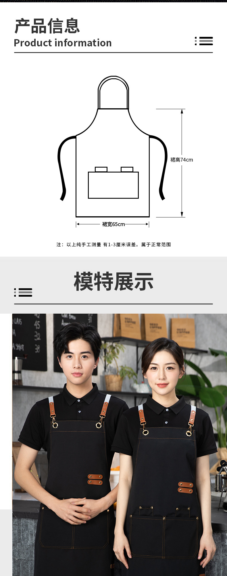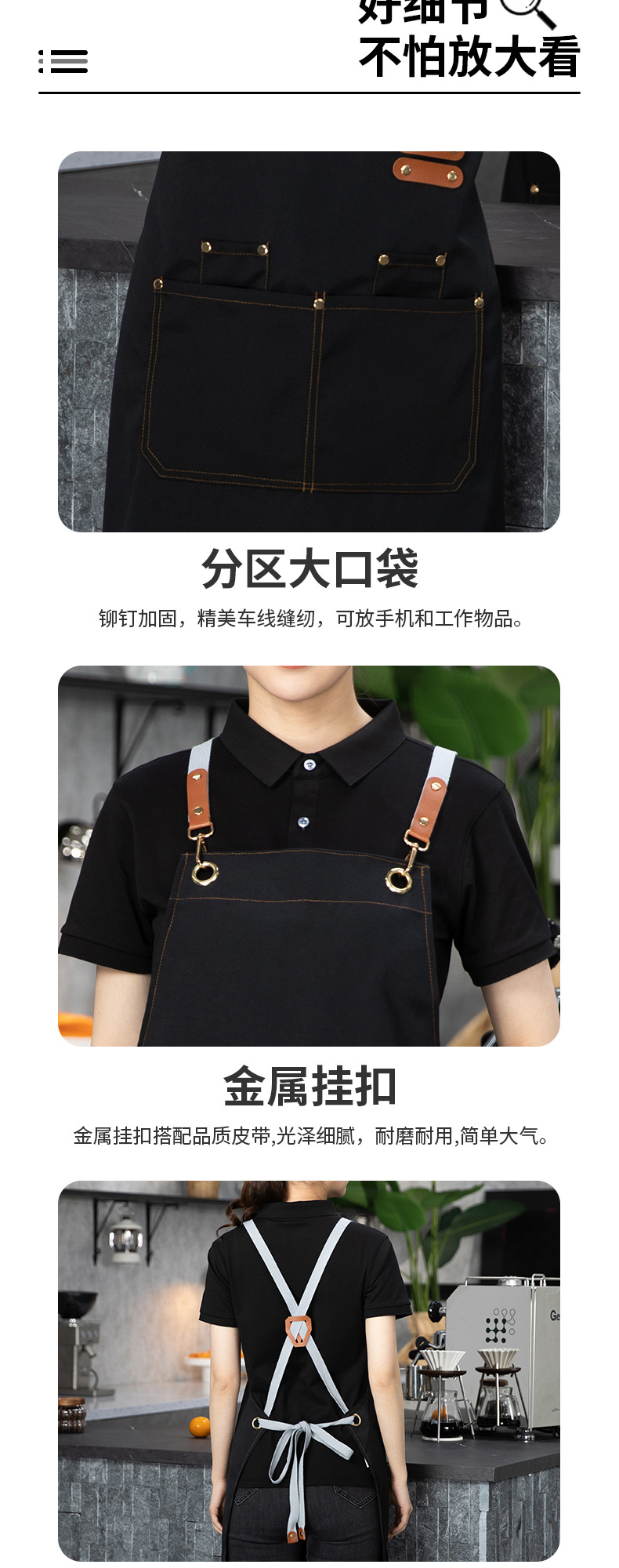 防水帆布围裙现货耐脏耐磨透气厨房餐饮服务员印字logo可定 制