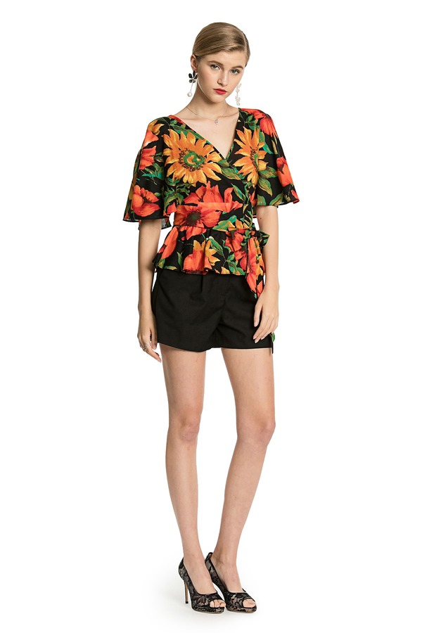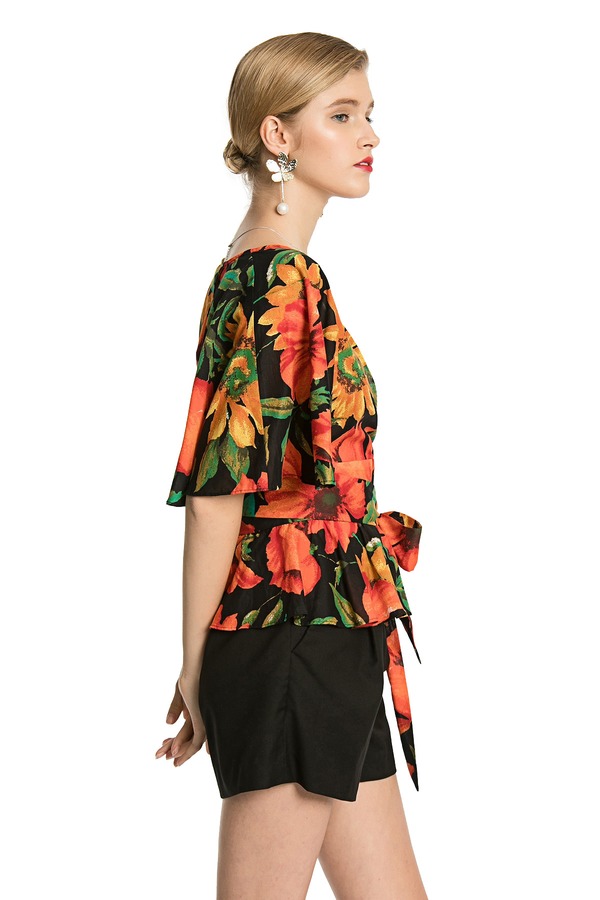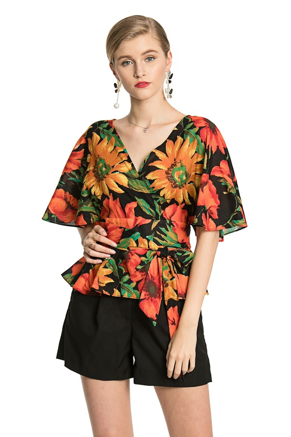MIGAINO曼娅奴 热带印花束腰上衣 2986