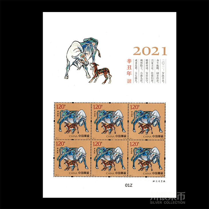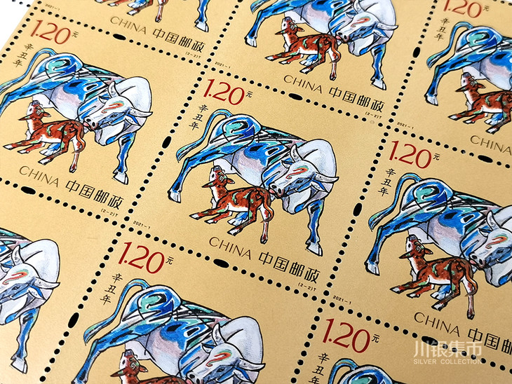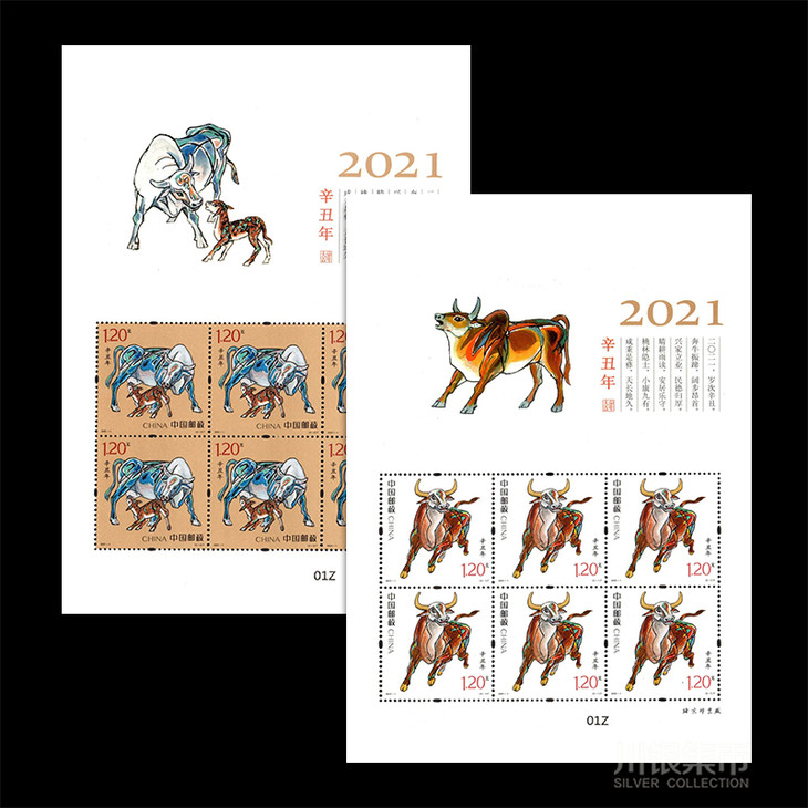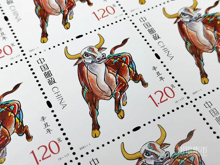 中国邮政定于2021年1月5日发行《辛丑年》特种邮票1套2枚。小版套票,一套2张,每张内含6枚邮票,共计12枚。总发行量250万。