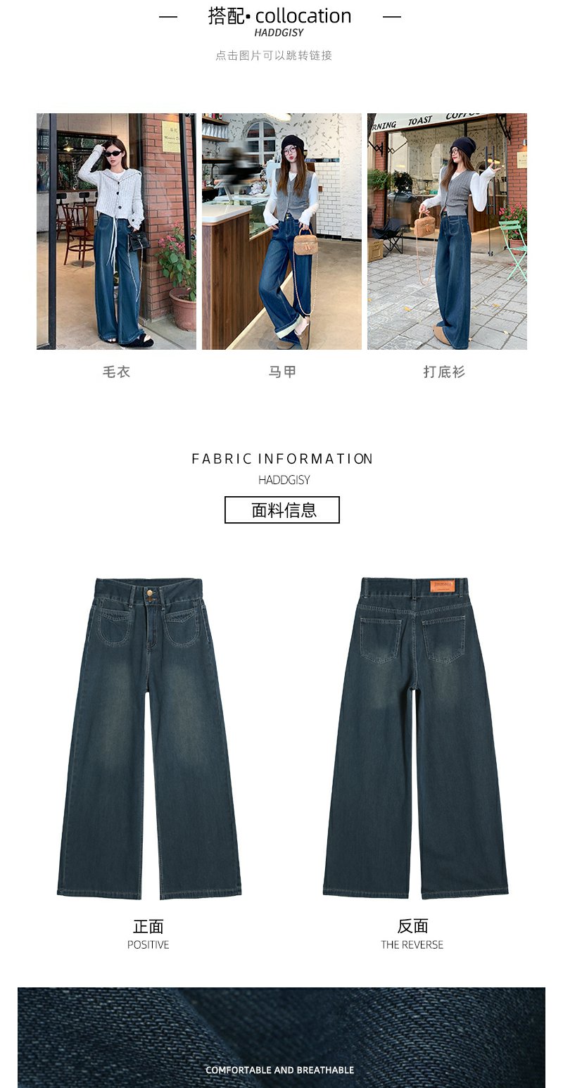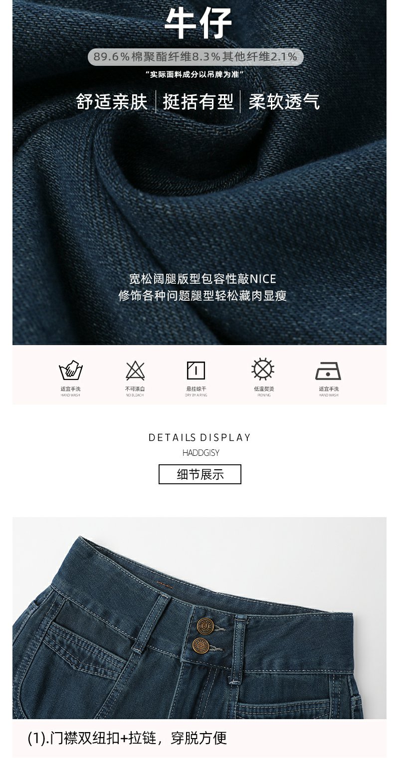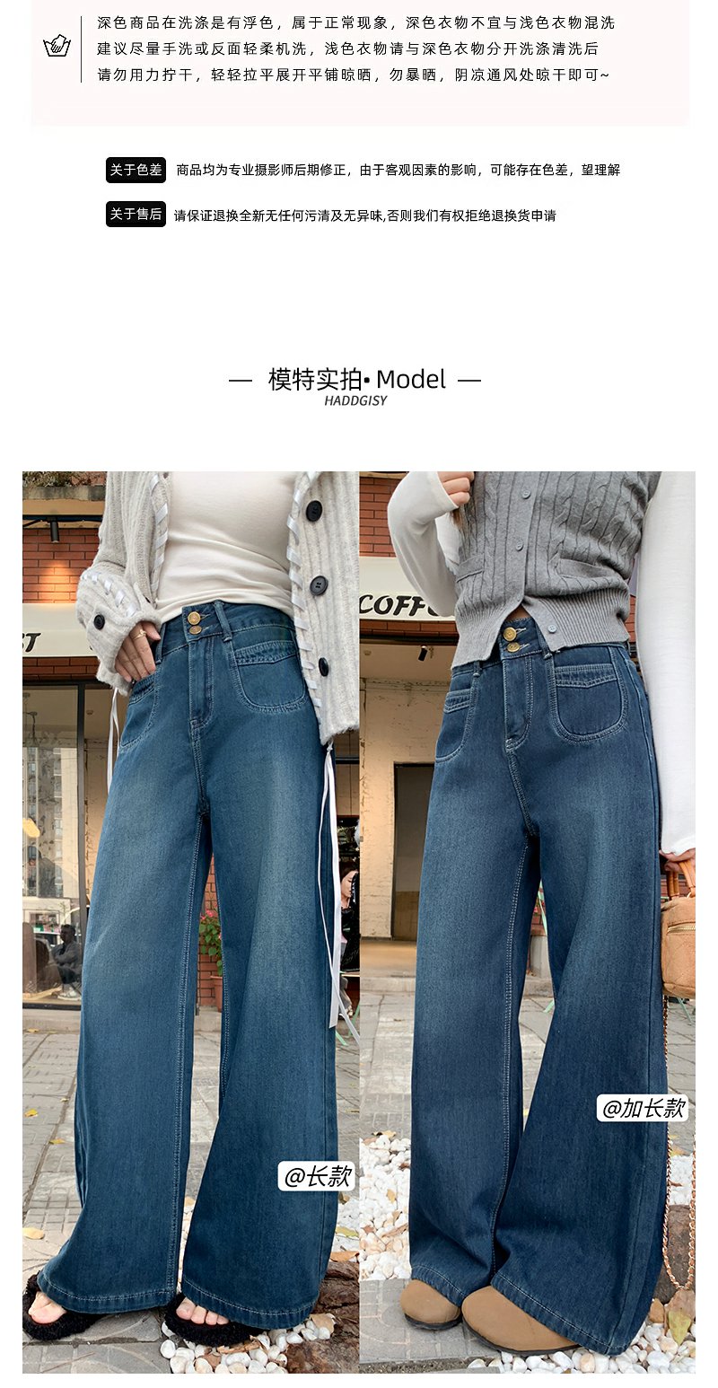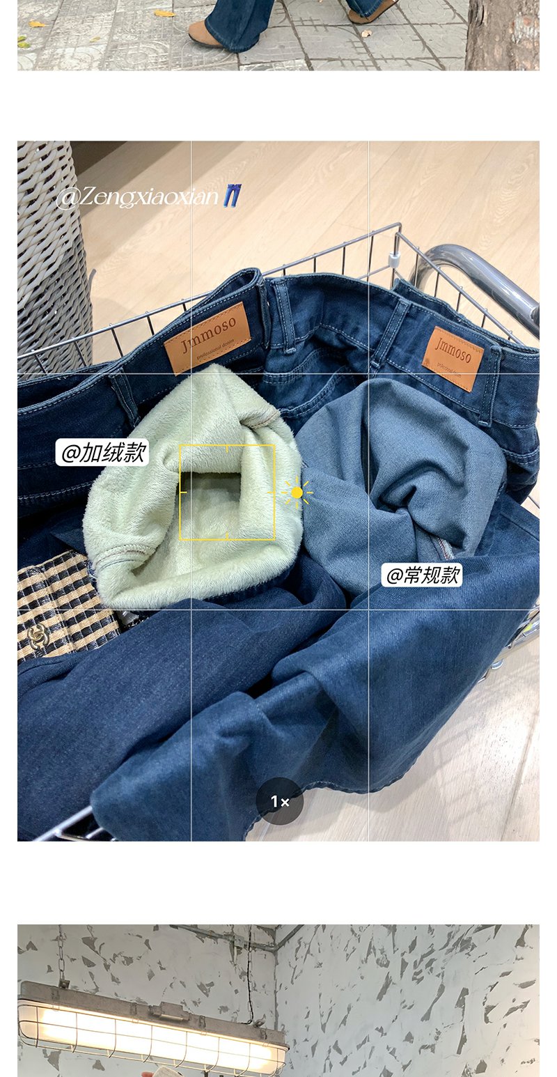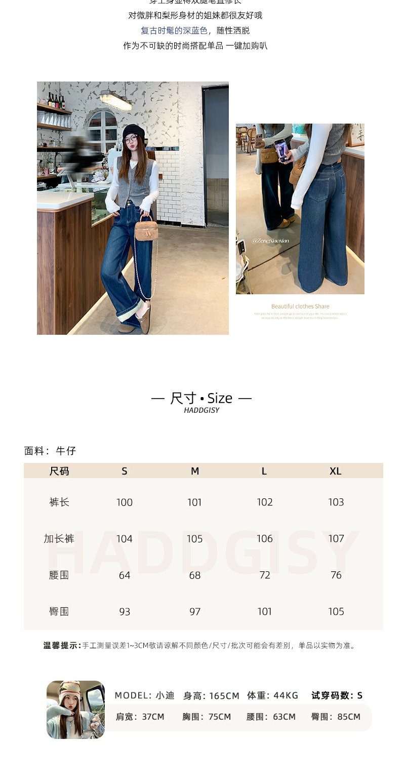 <曾小咸推荐>显瘦深蓝色加绒阔腿牛仔裤