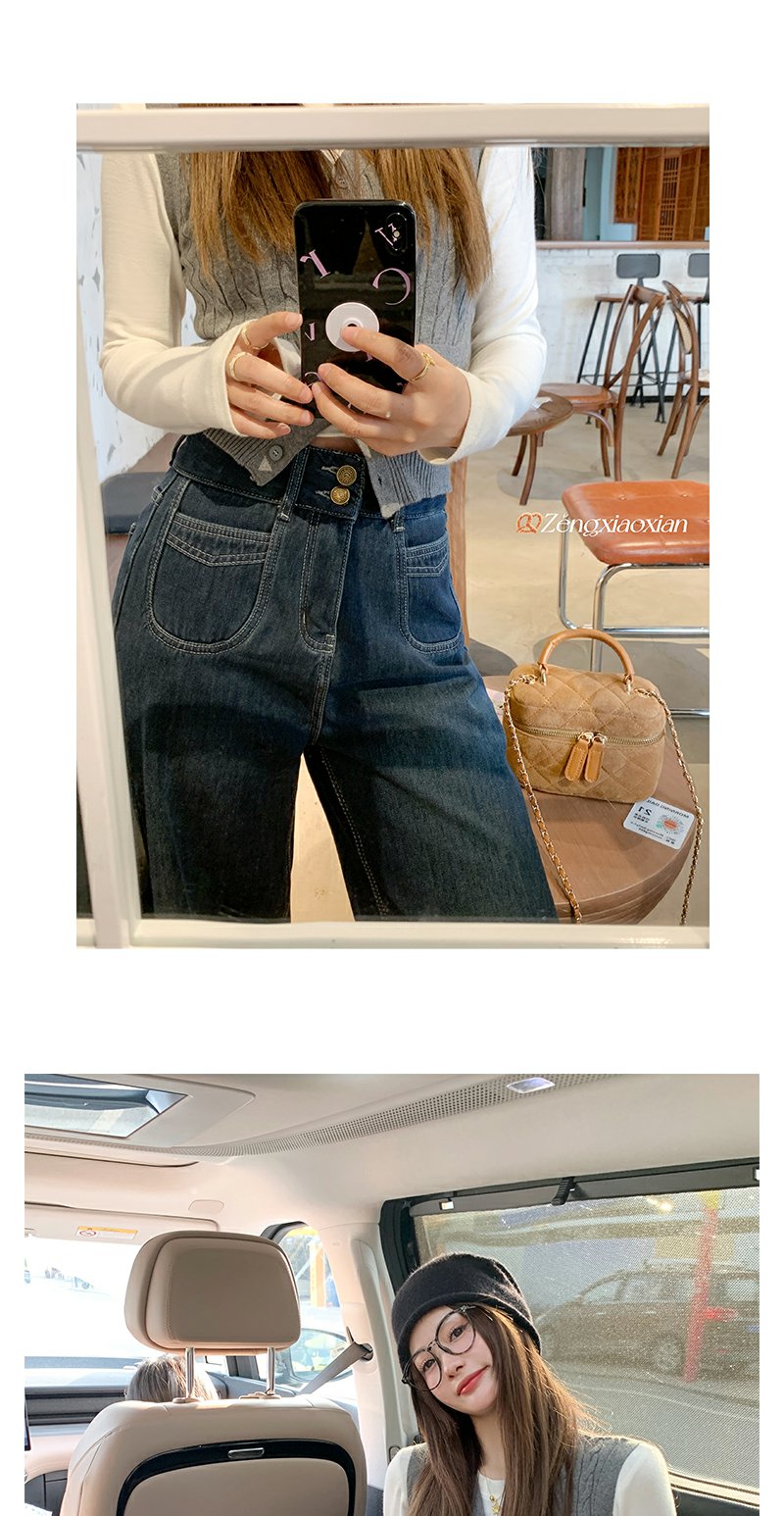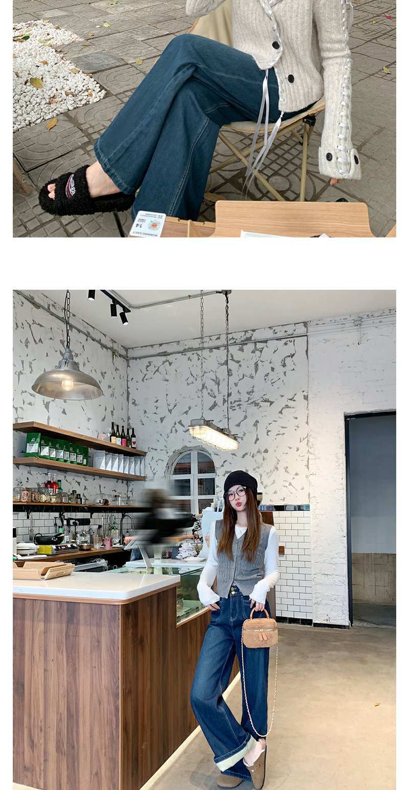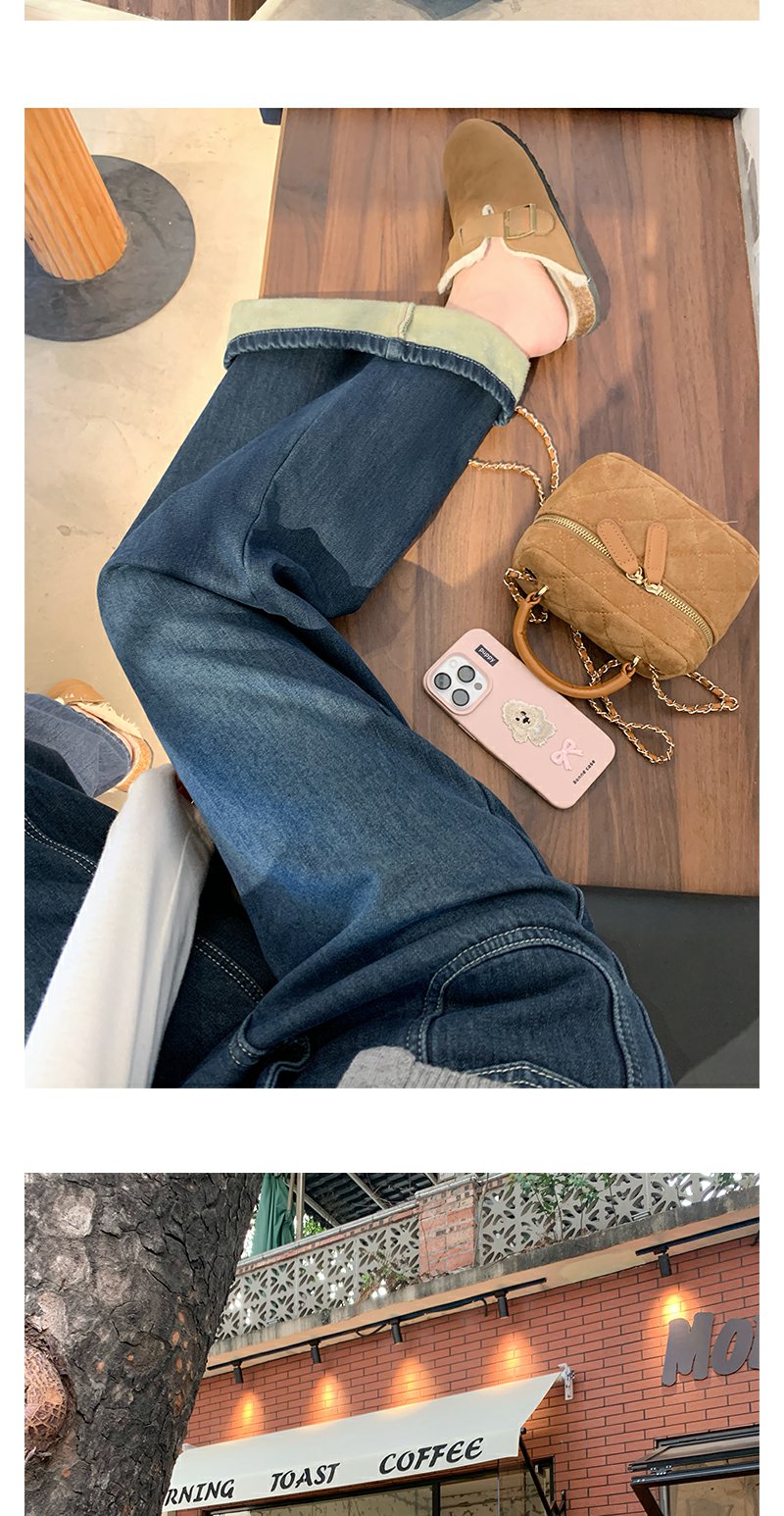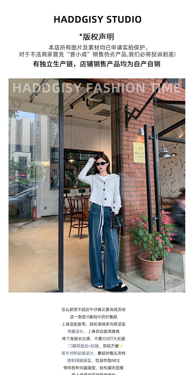 <曾小咸推荐>显瘦深蓝色加绒阔腿牛仔裤