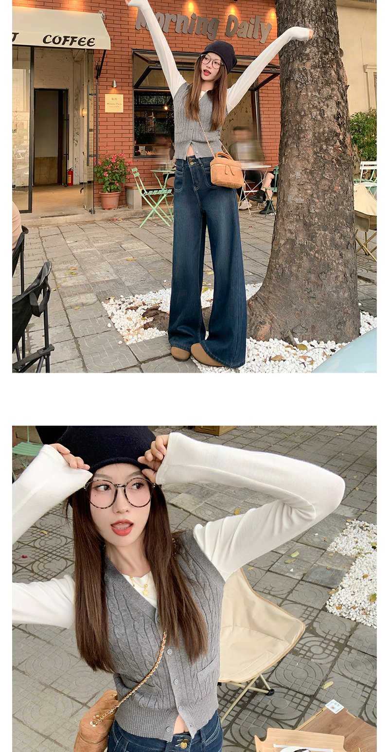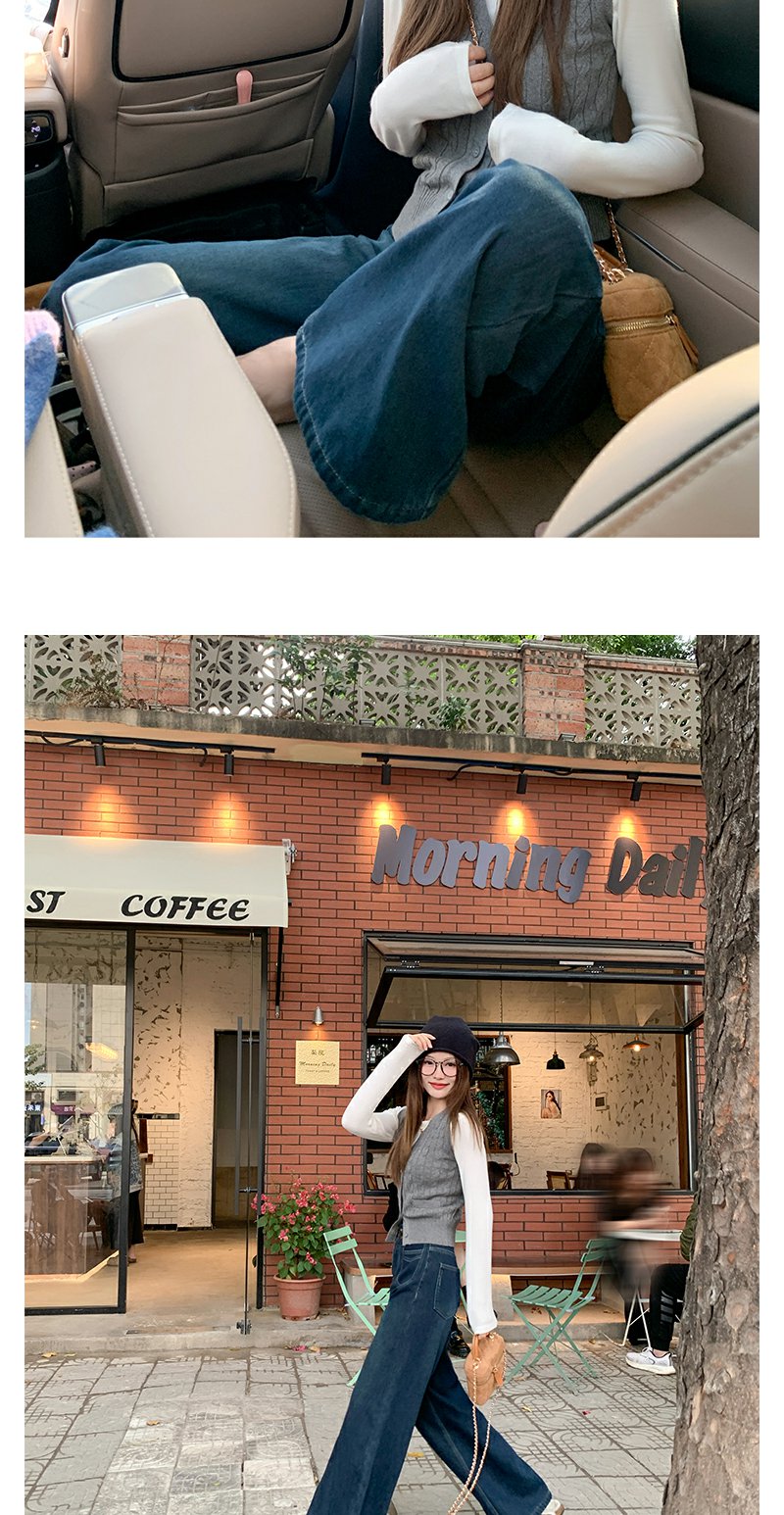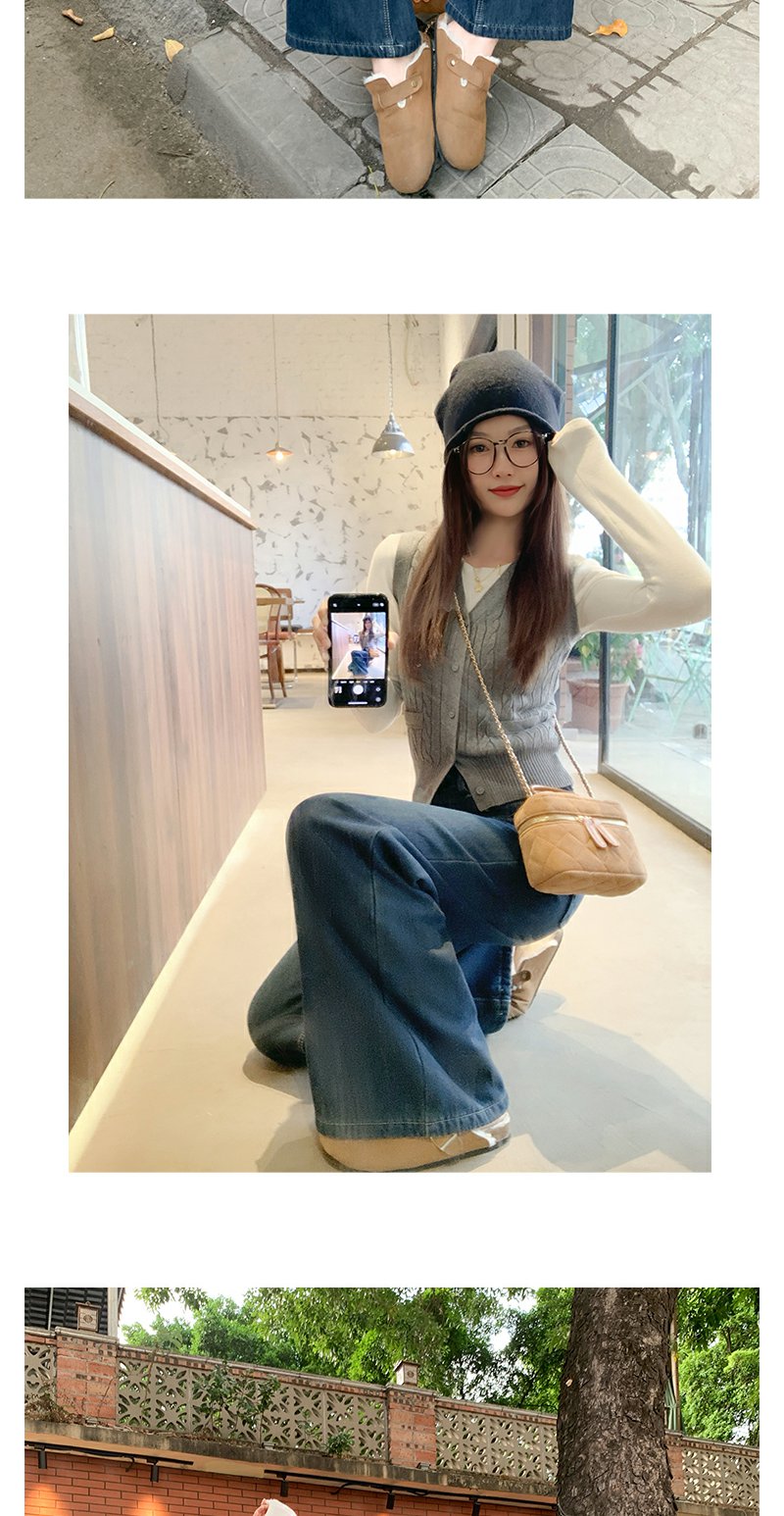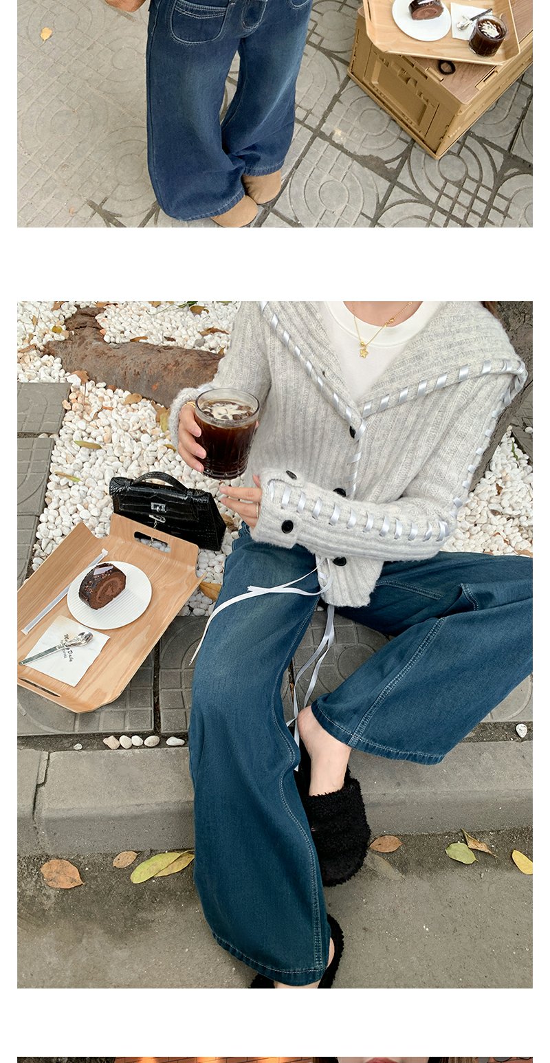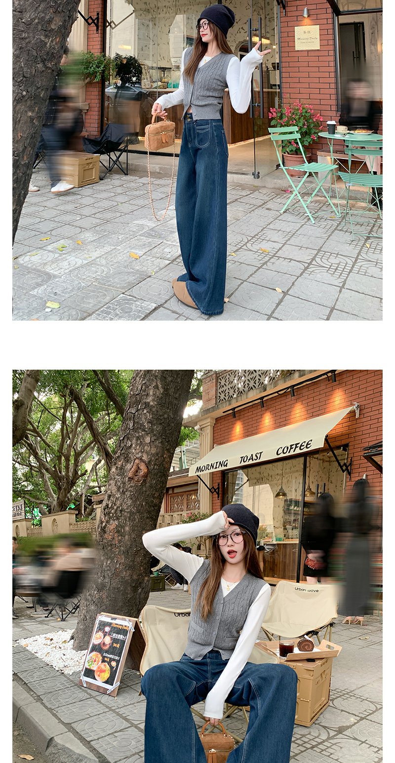 <曾小咸推荐>显瘦深蓝色加绒阔腿牛仔裤