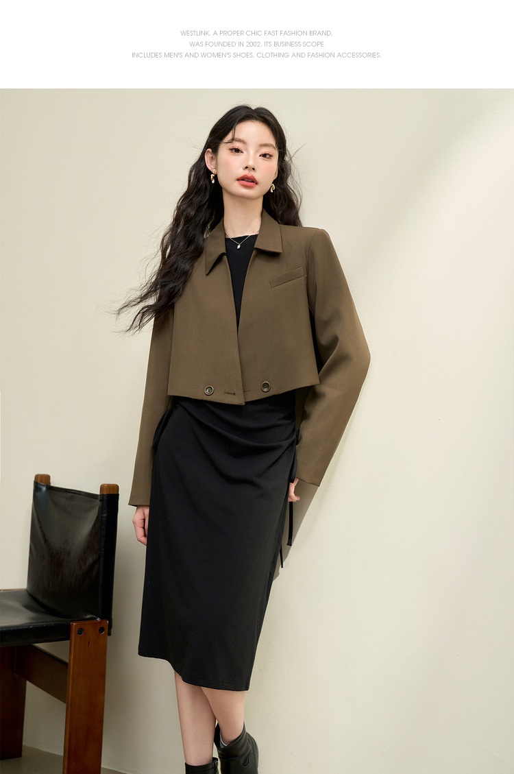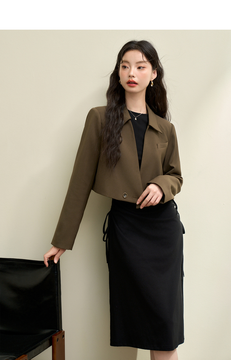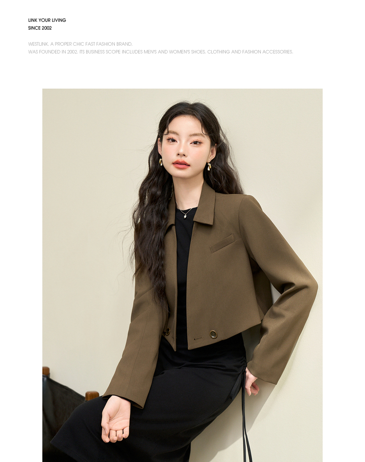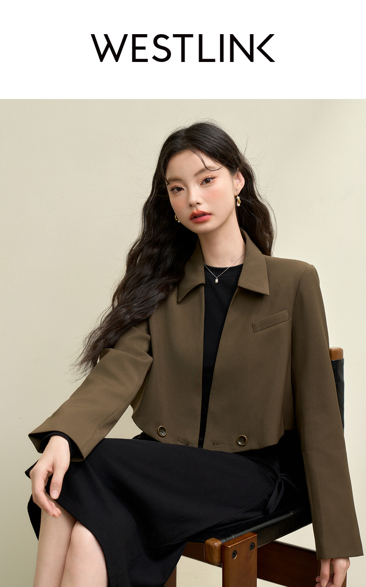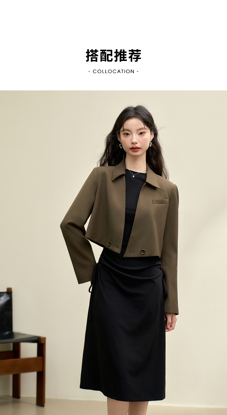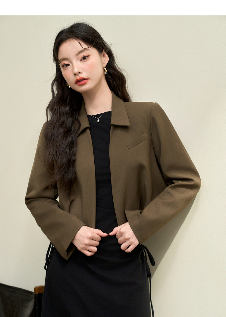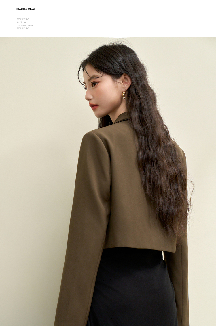 高级感通勤风翻领搭片截短款西装女秋季气质西服外套