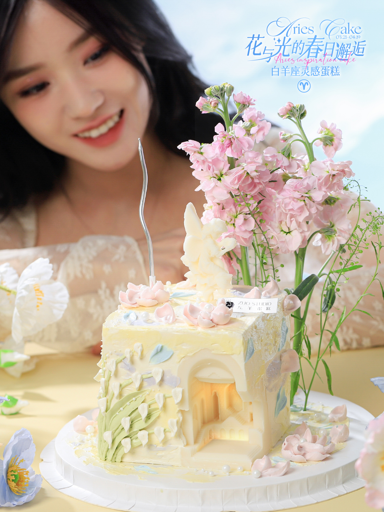 白羊座蛋糕【花与光的春日邂逅】1.5磅 香草奶油芒果夹心口味