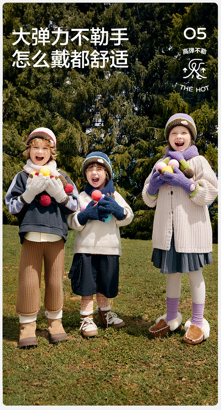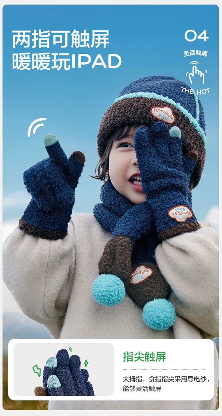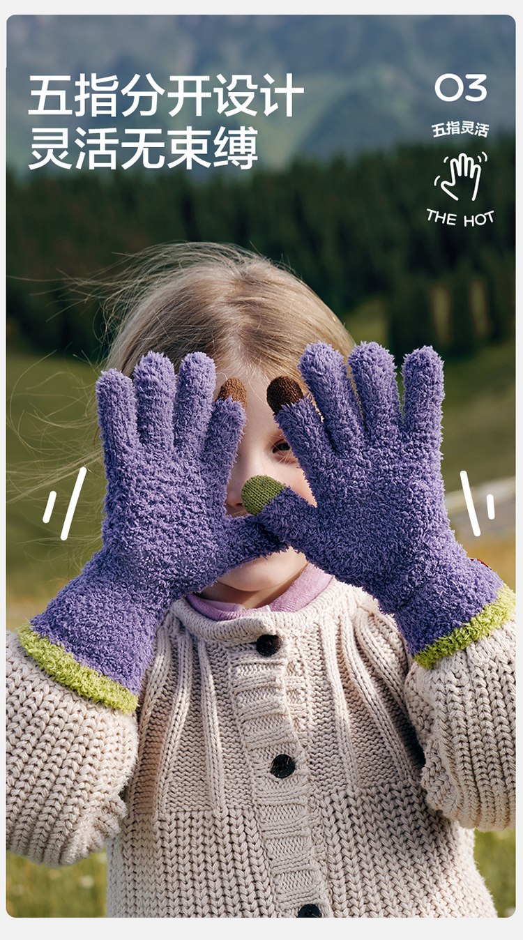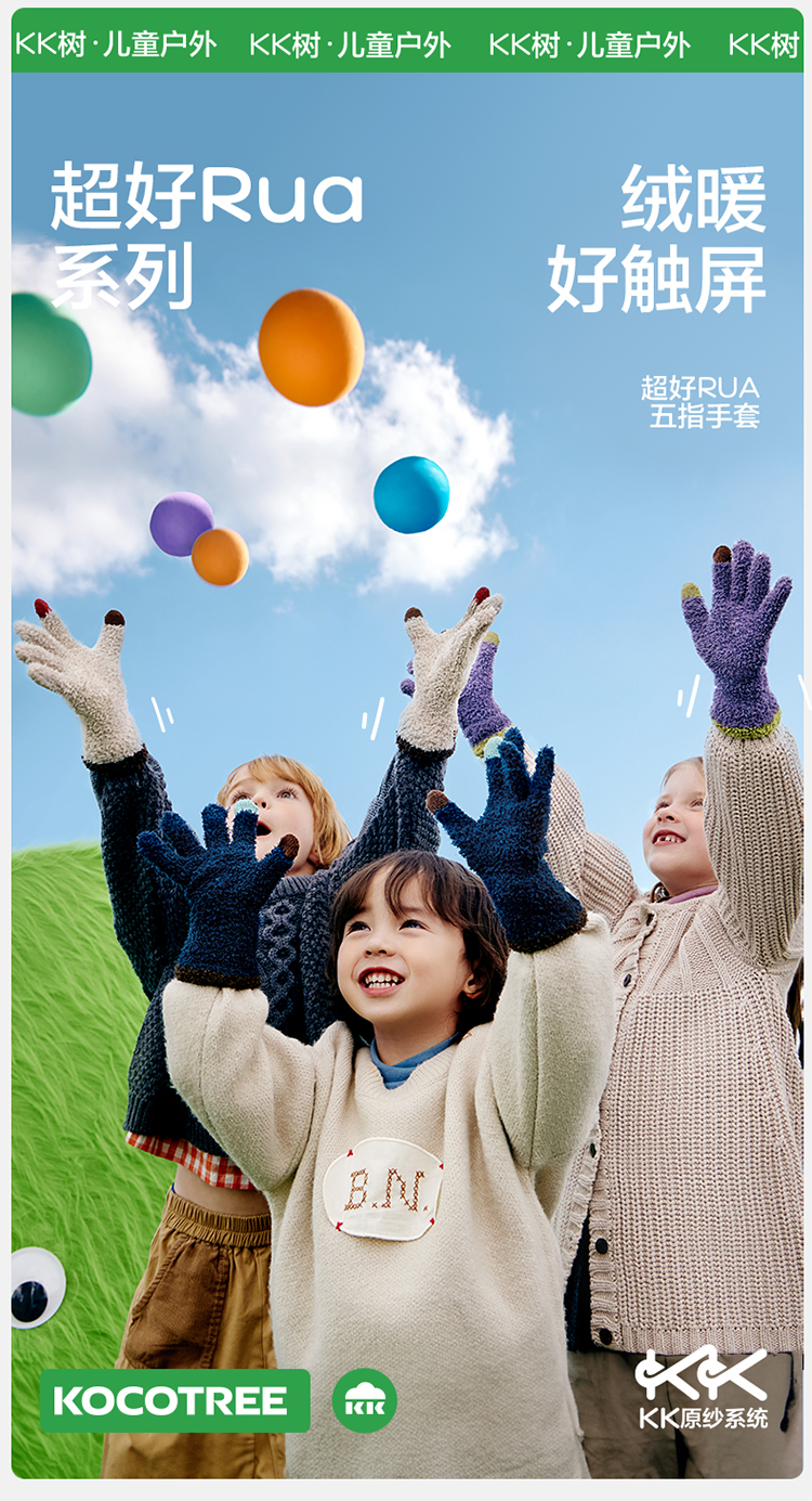 KK树可触屏儿童手套冬天保暖男童女童宝宝防寒五指分指A类抗静电超好rua五指手套