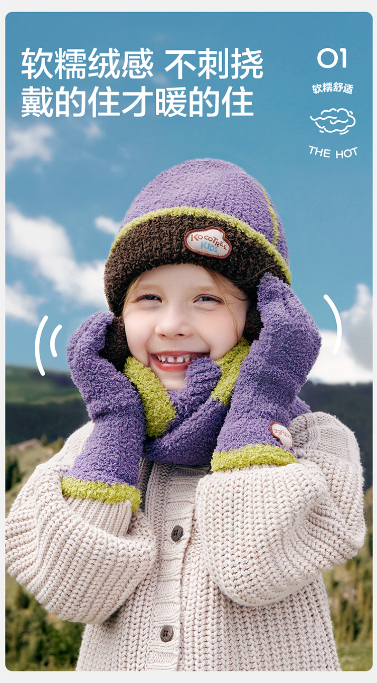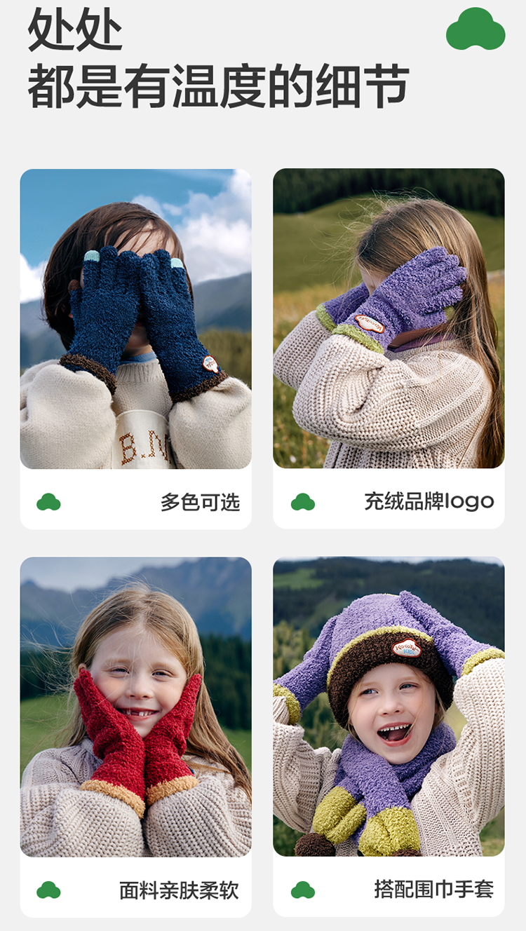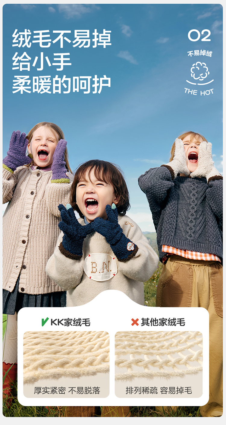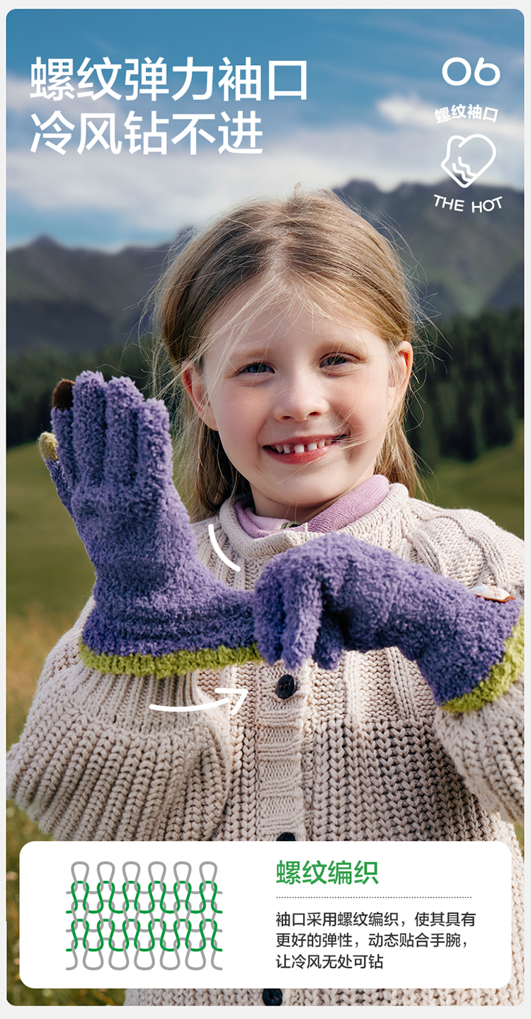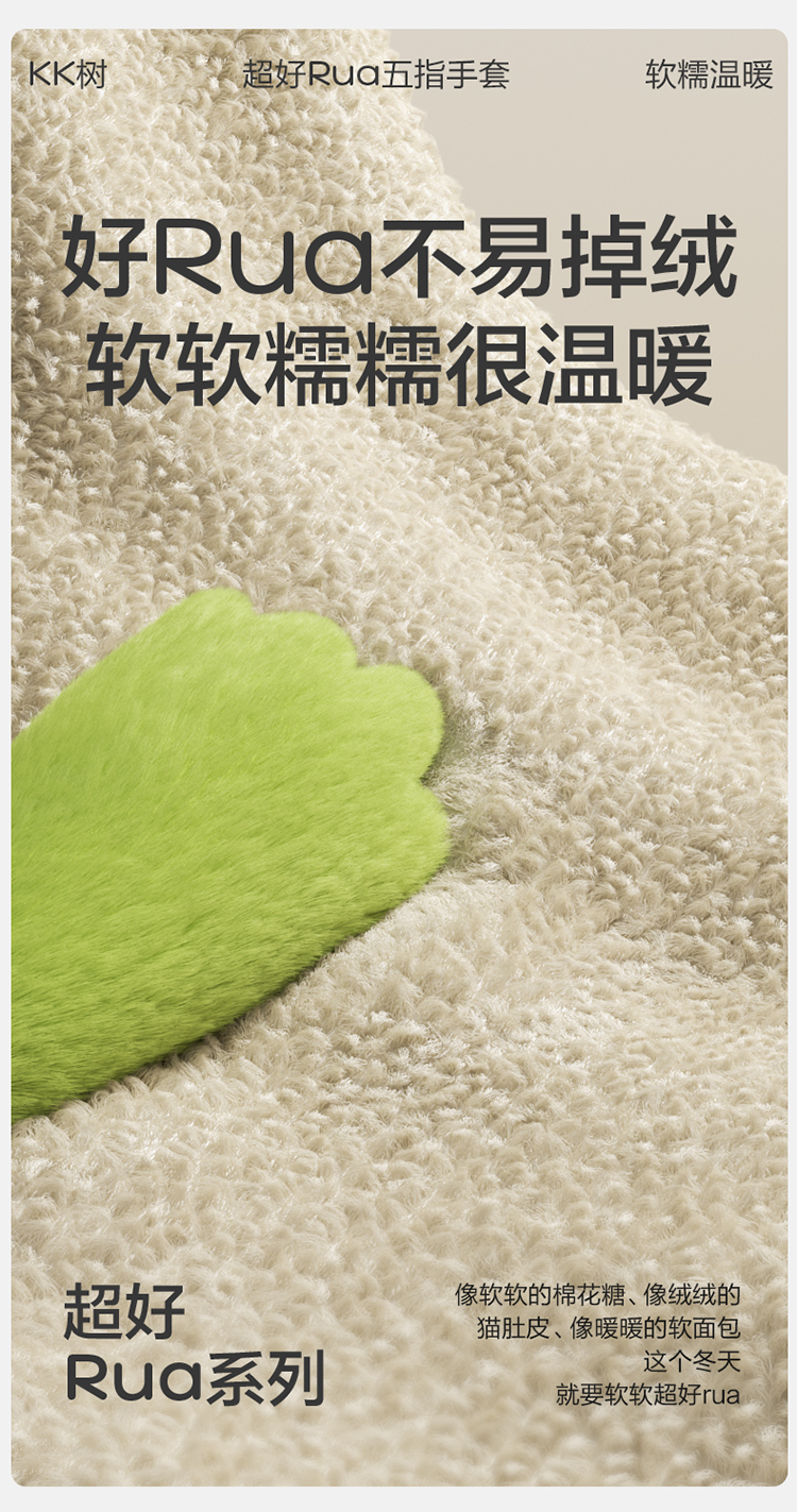 KK树可触屏儿童手套冬天保暖男童女童宝宝防寒五指分指A类抗静电超好rua五指手套