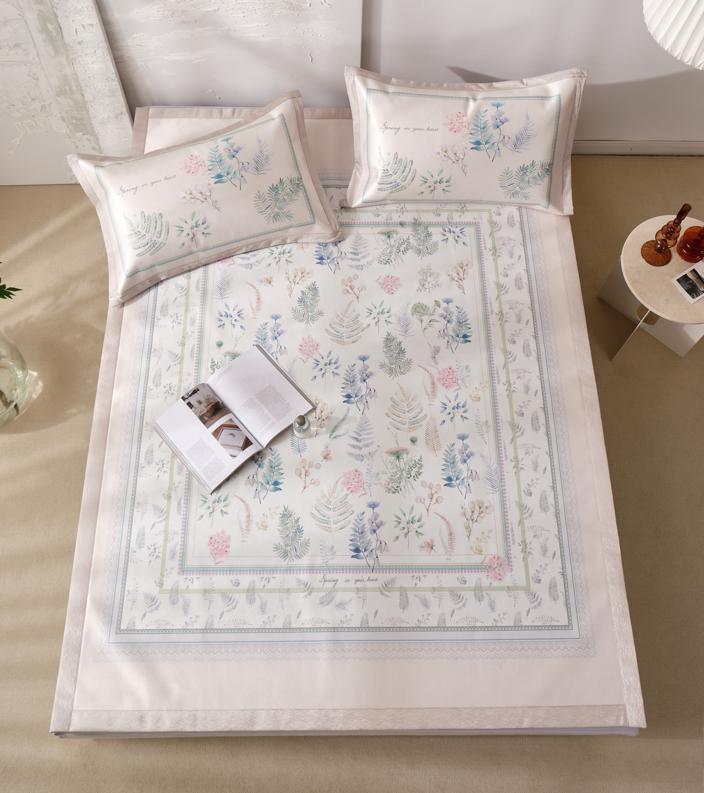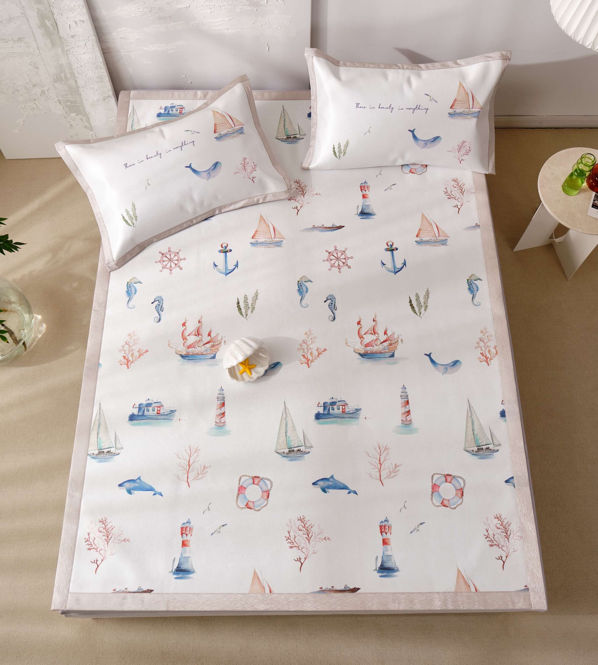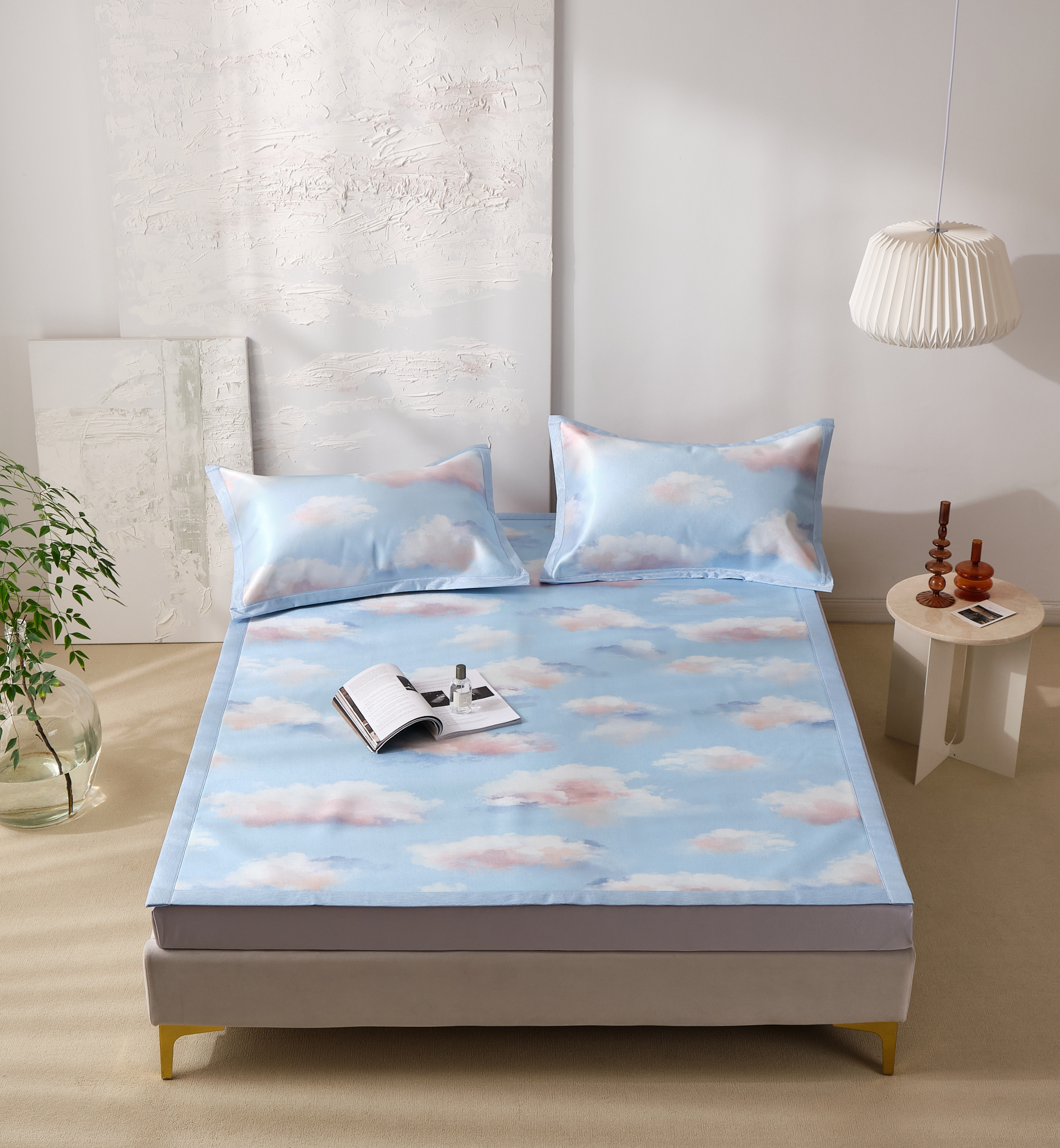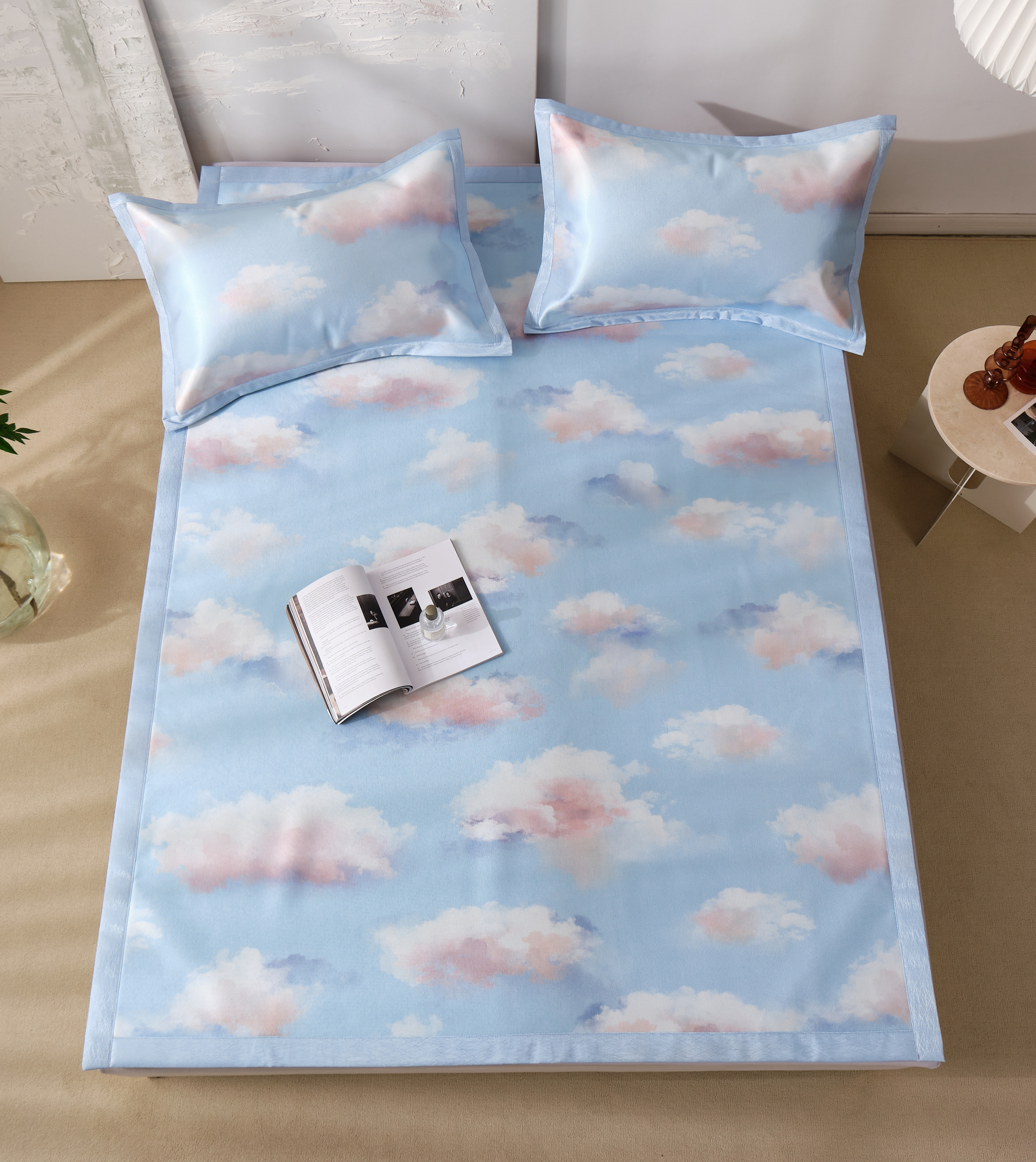 【下架】自然醒数码冰丝凉席夏季可水洗可卷曲双人席子家用三件套LB