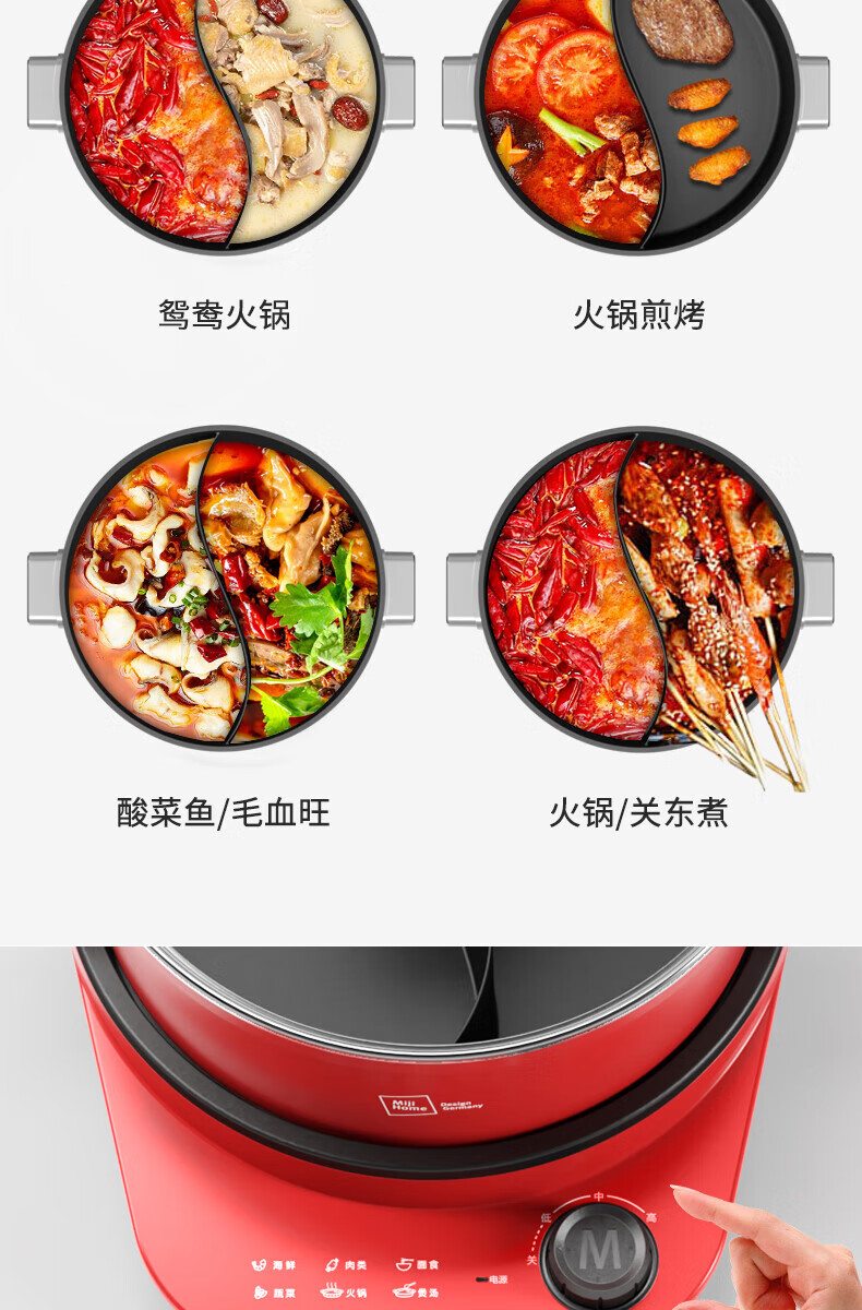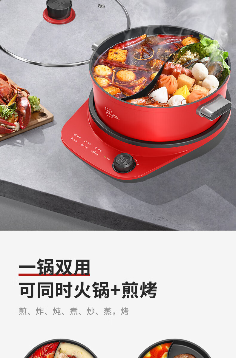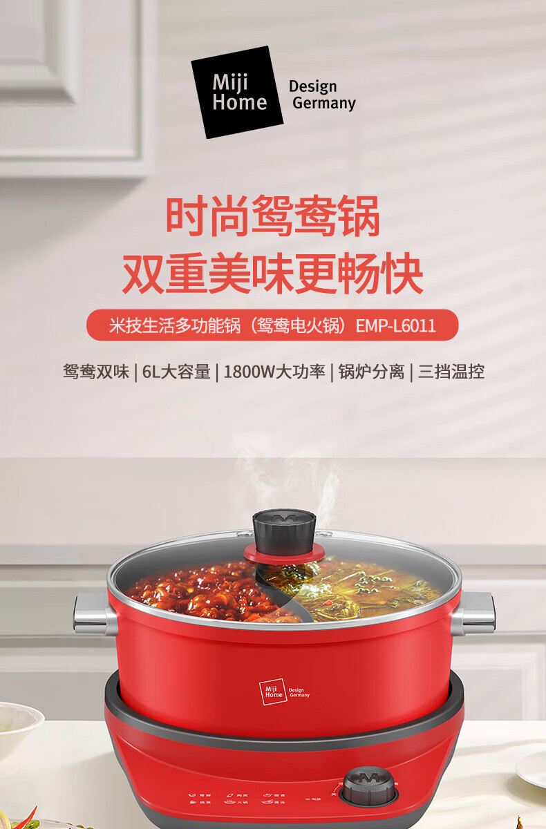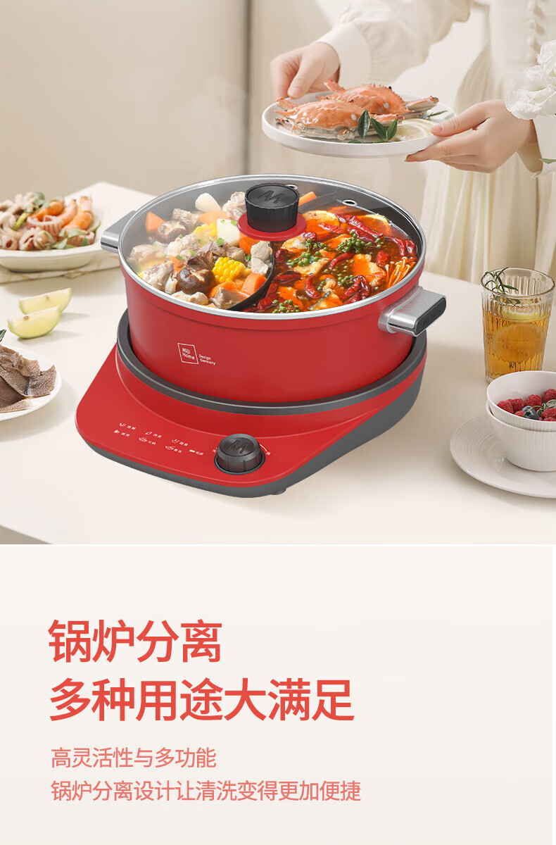 【小家电】米技(MIJI)米技(Miji Home)米技生活多功能锅家用鸳鸯电火锅 EMP-L6011 红色 HF