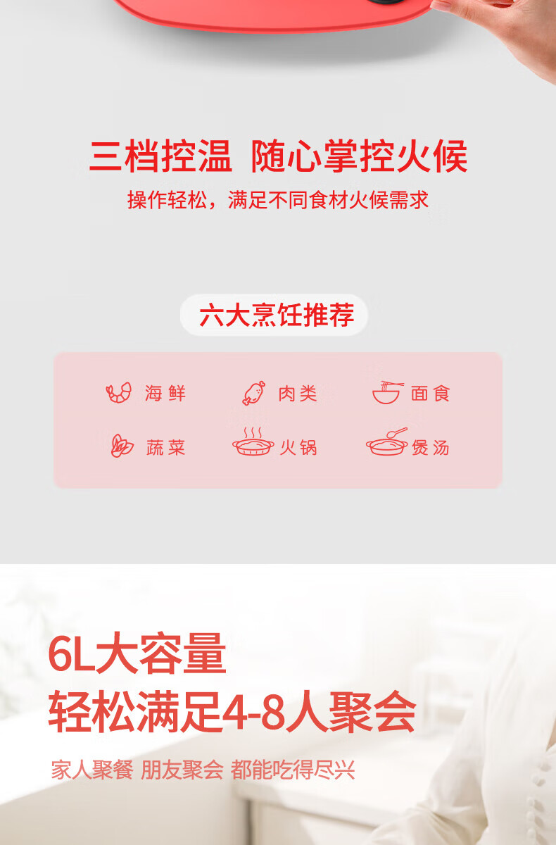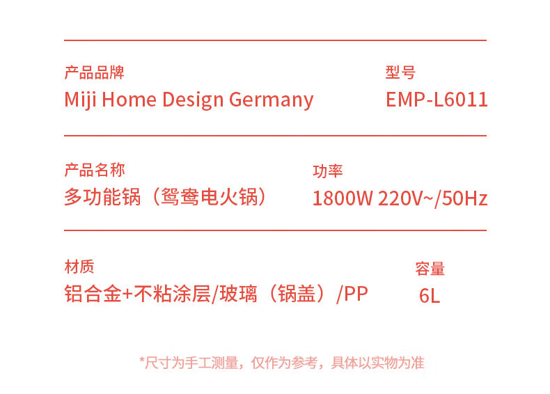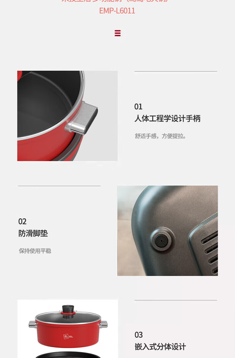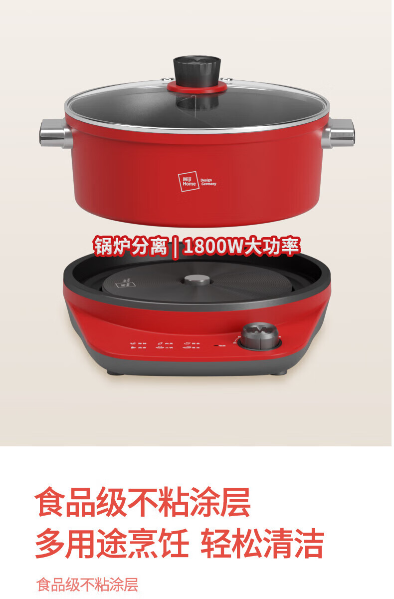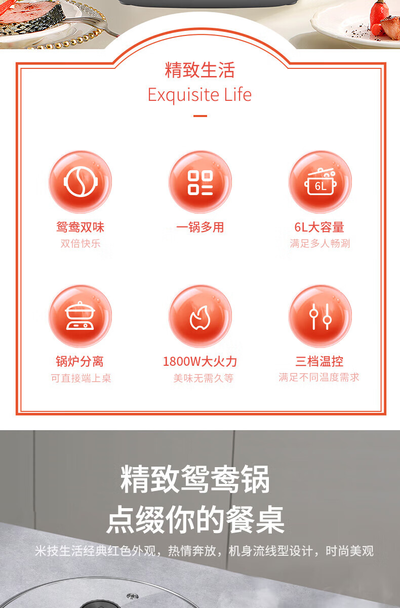 【小家电】米技(MIJI)米技(Miji Home)米技生活多功能锅家用鸳鸯电火锅 EMP-L6011 红色 HF