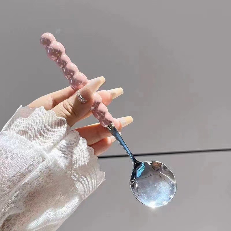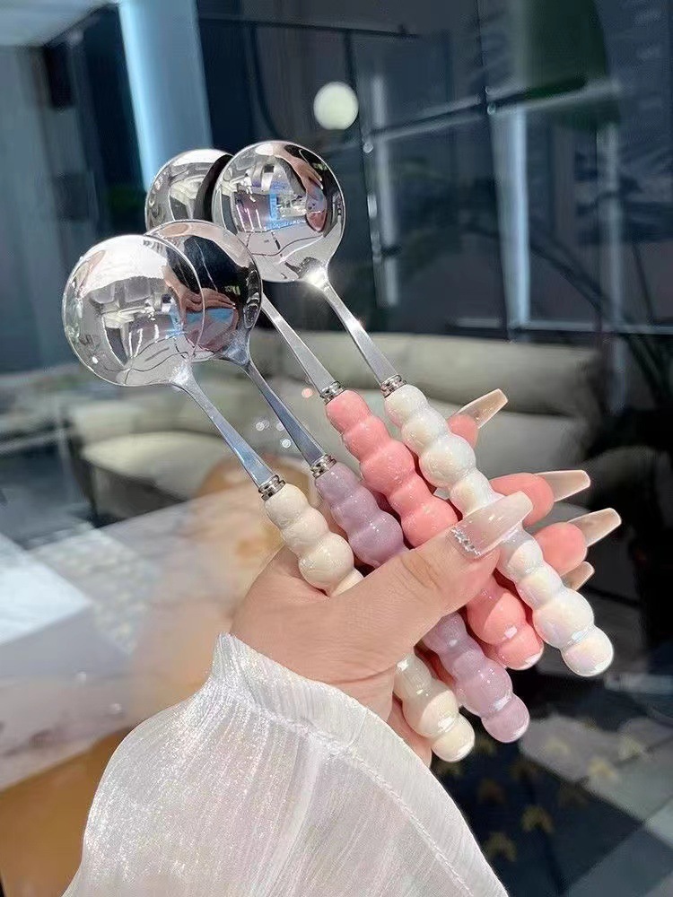 「9.9到手3支!颜值派」彩色不锈钢勺子塑料手柄餐勺少女心家用调羹小汤勺长柄圆勺餐饮用具
