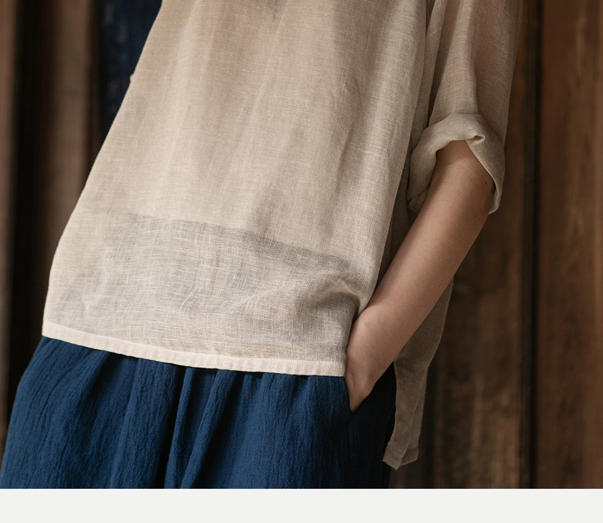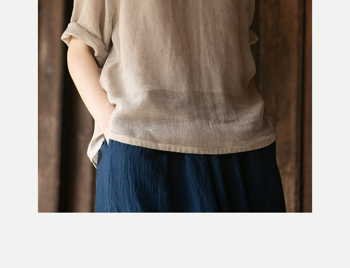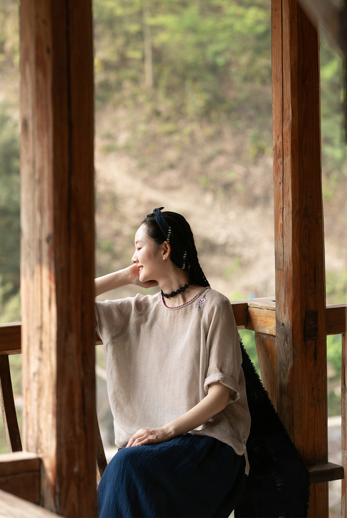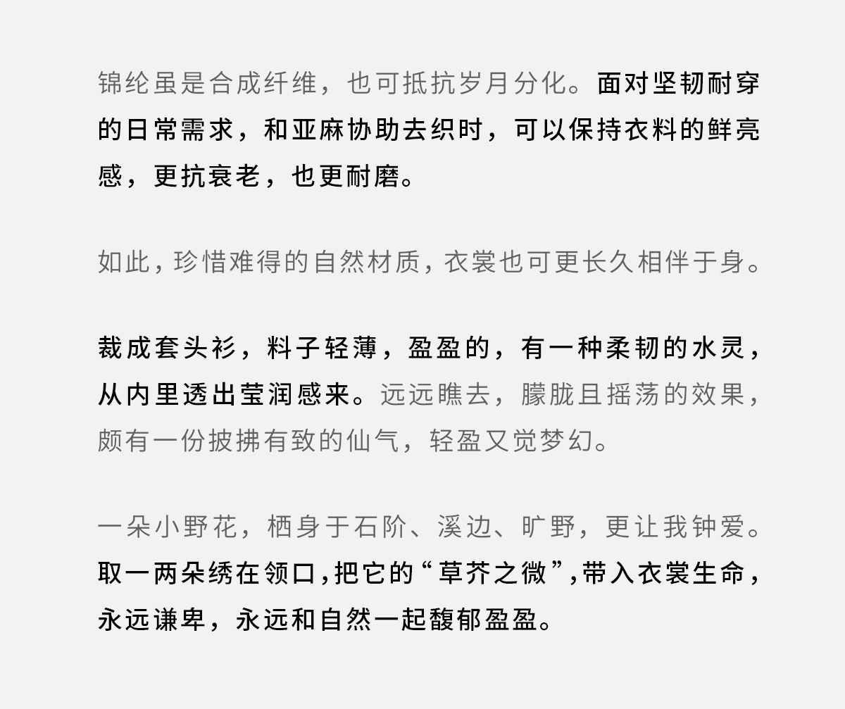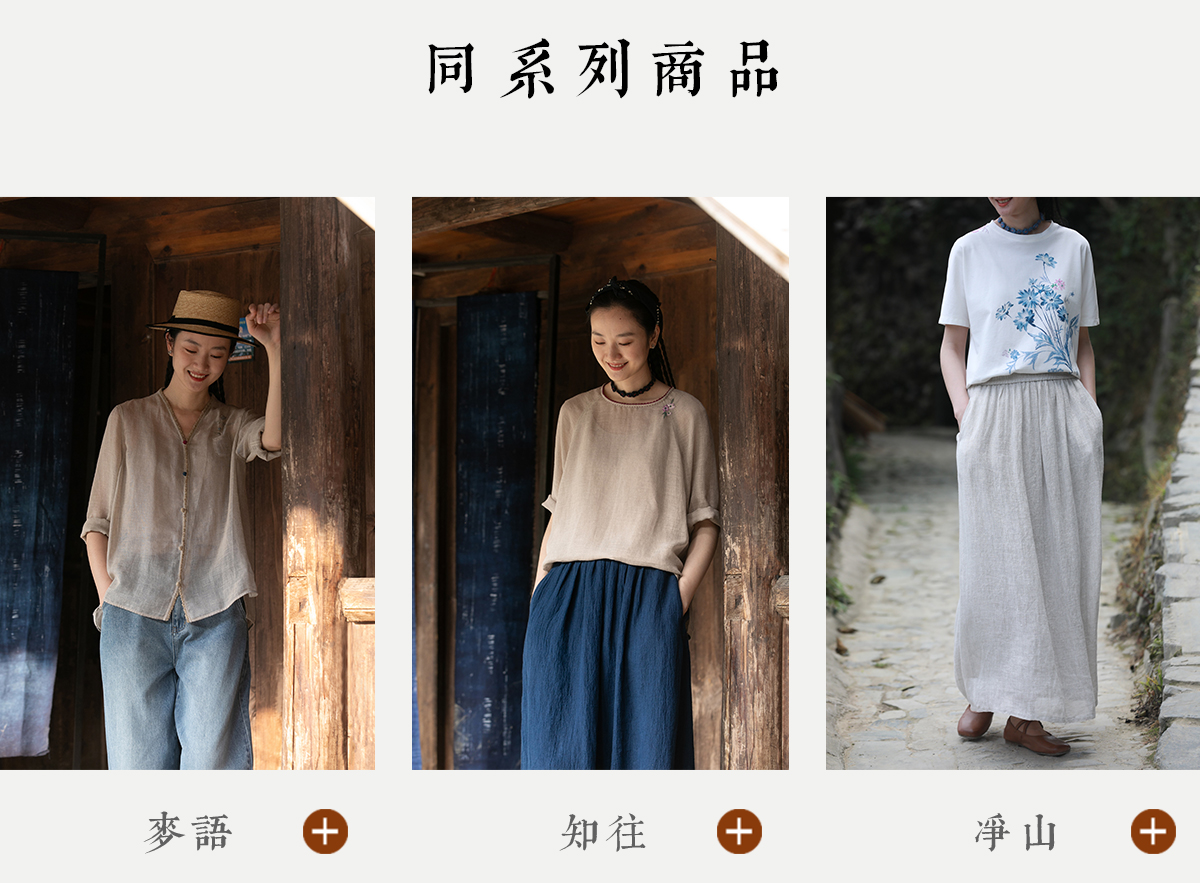 牧衣游原创 进口亚麻刺绣混纺套头衫轻薄柔软质朴圆领上衣 知往