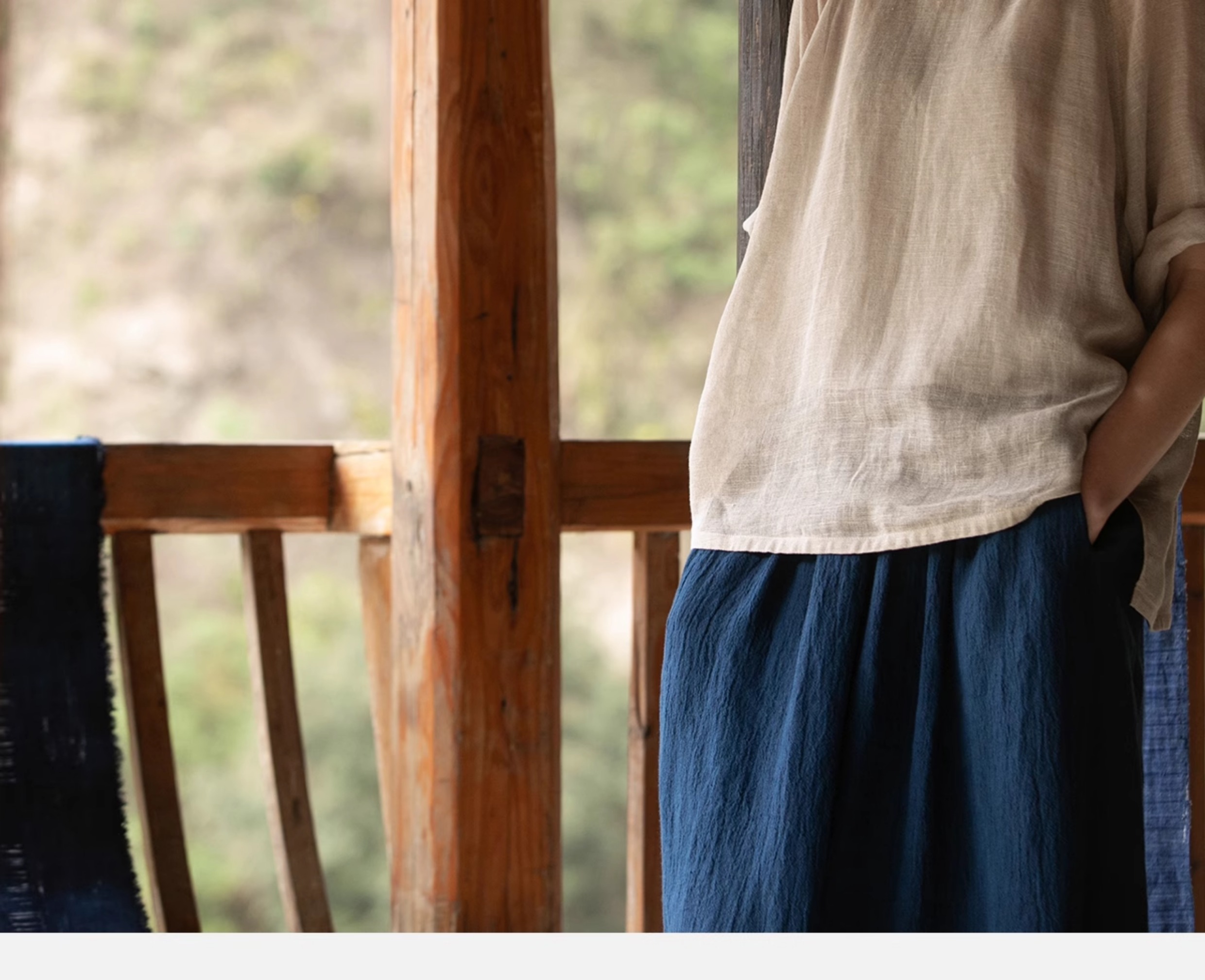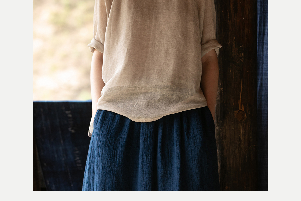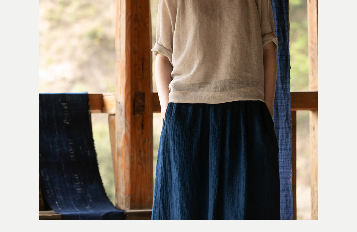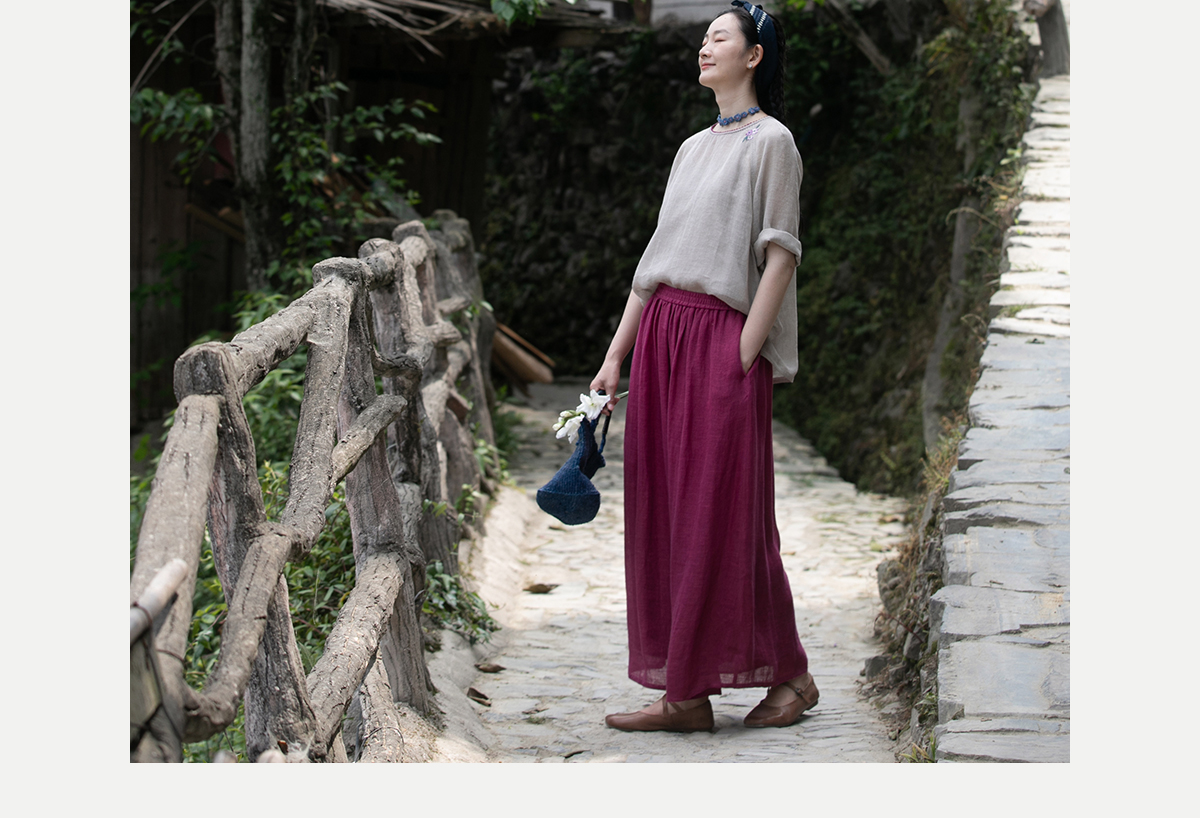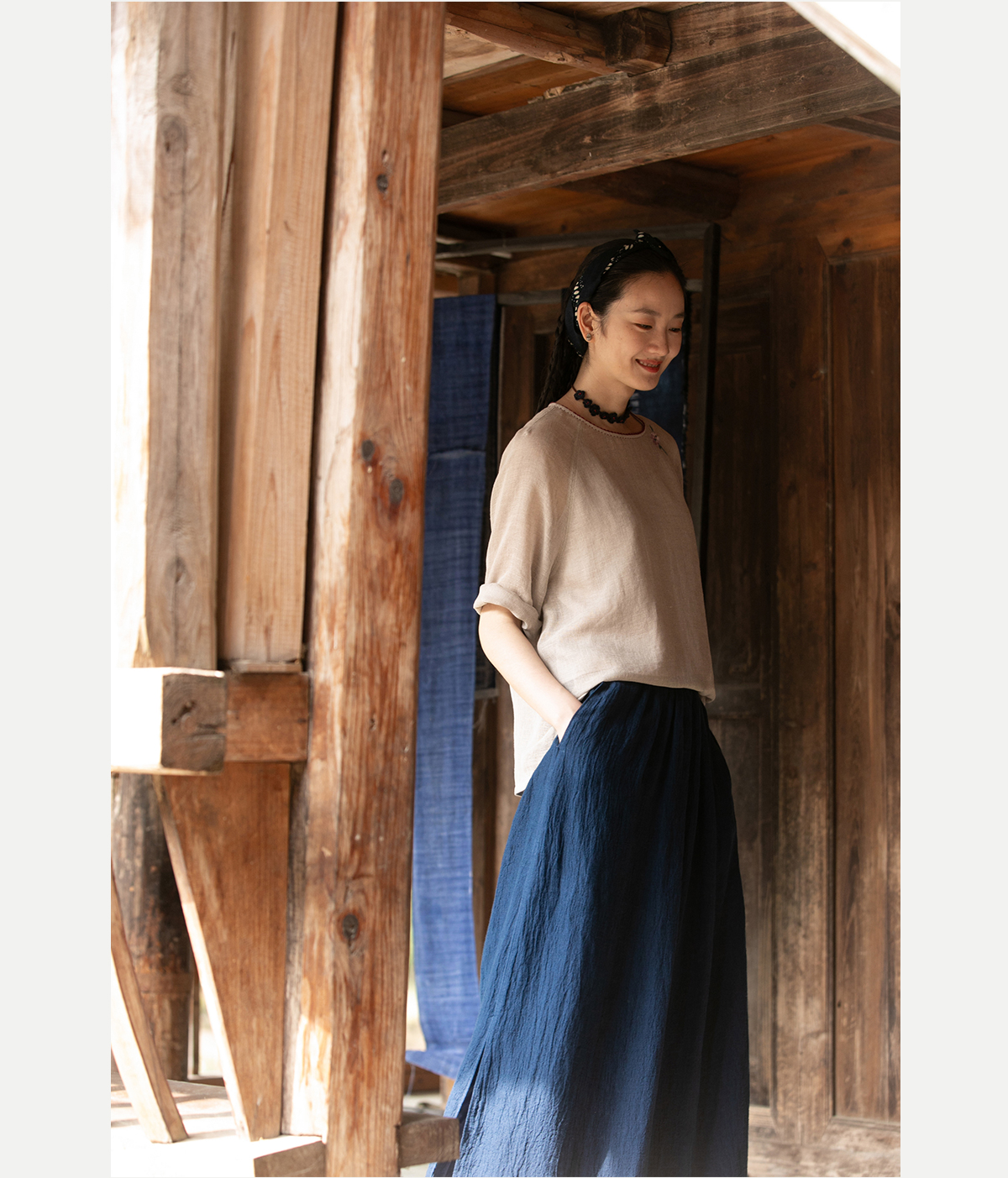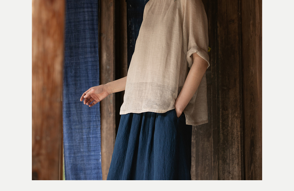 牧衣游原创 进口亚麻刺绣混纺套头衫轻薄柔软质朴圆领上衣 知往