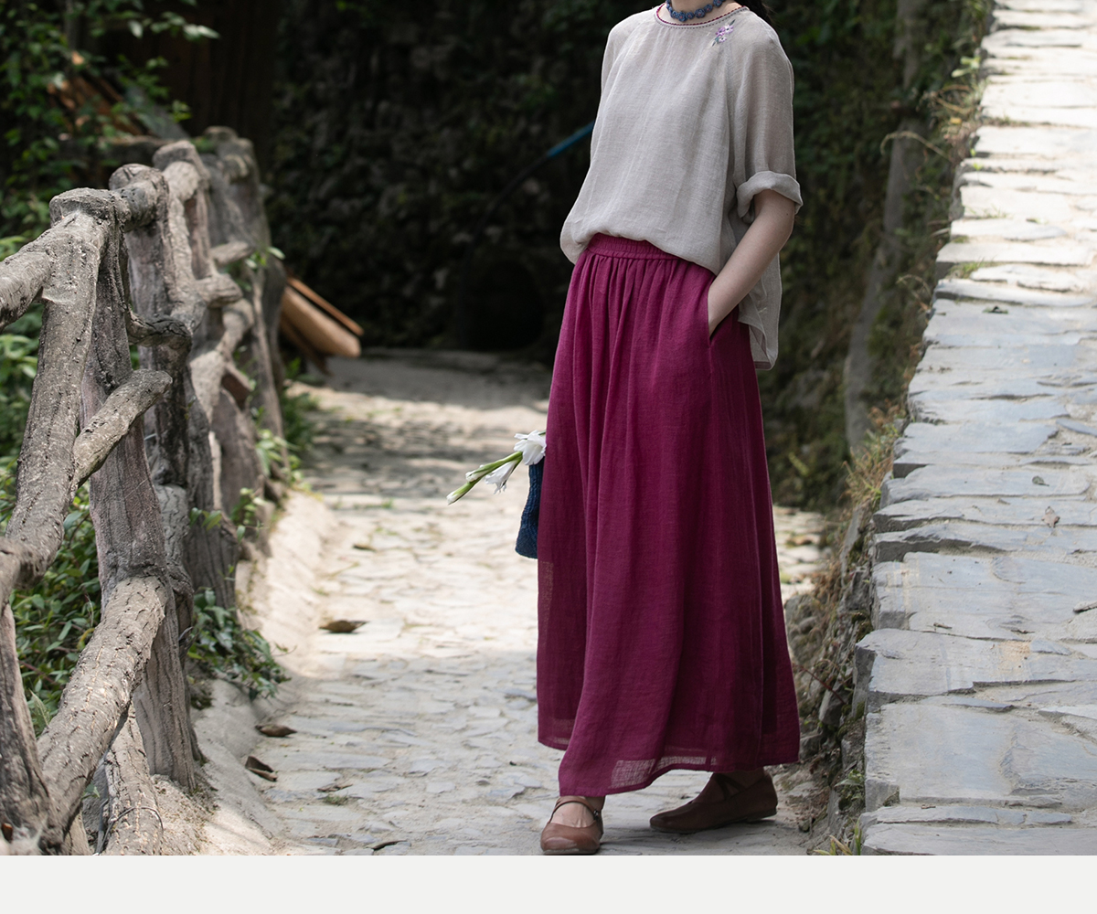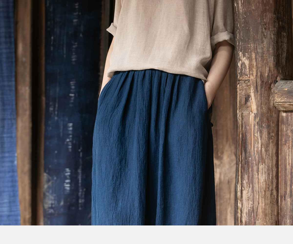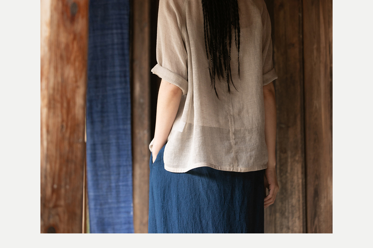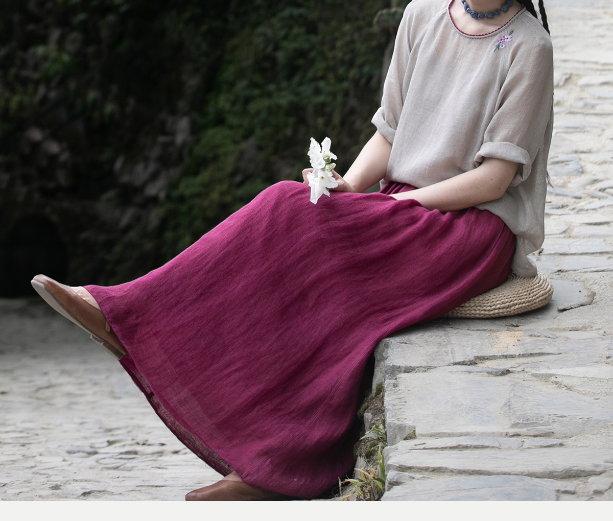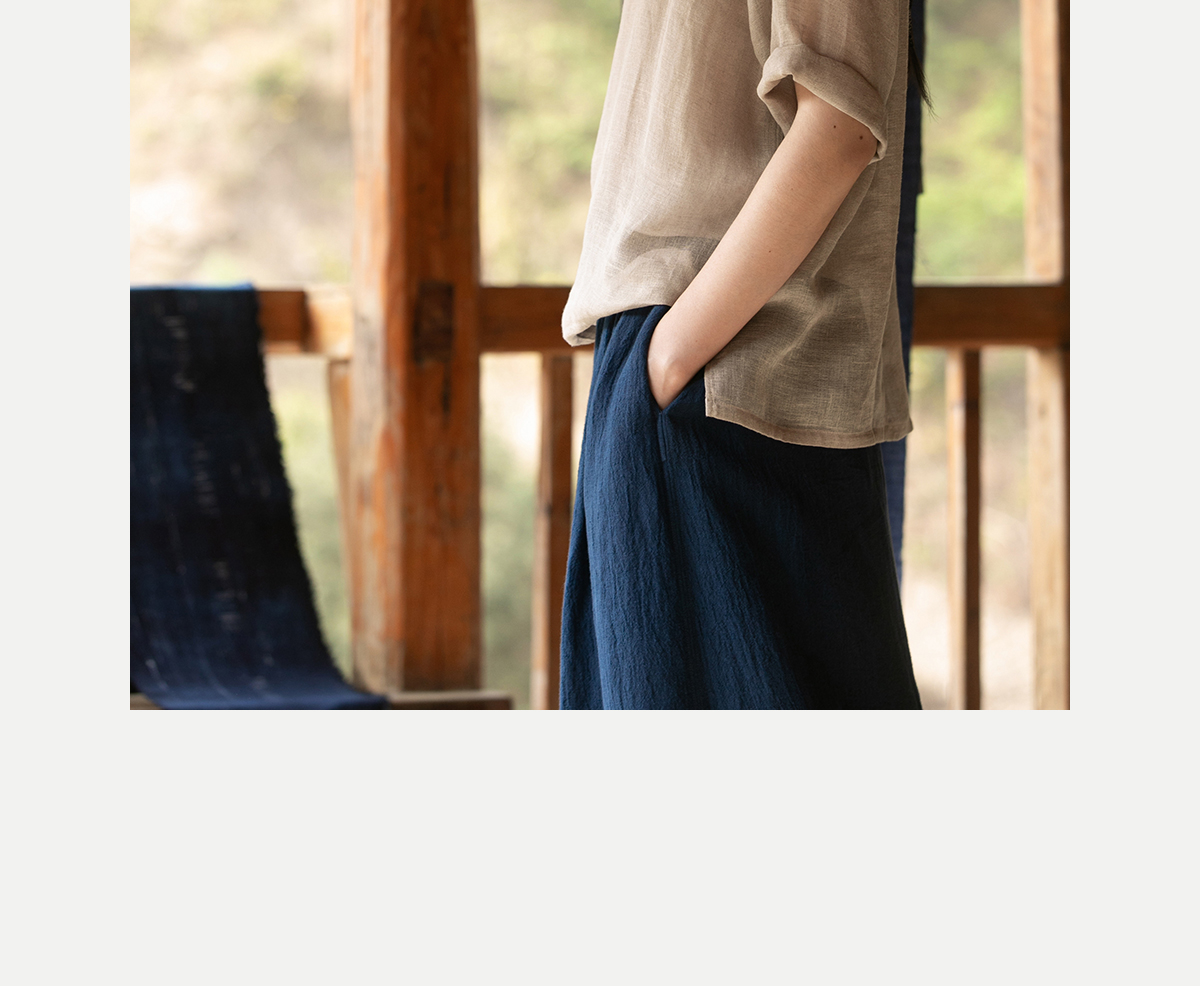 牧衣游原创 进口亚麻刺绣混纺套头衫轻薄柔软质朴圆领上衣 知往