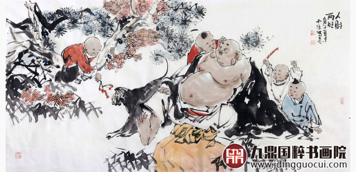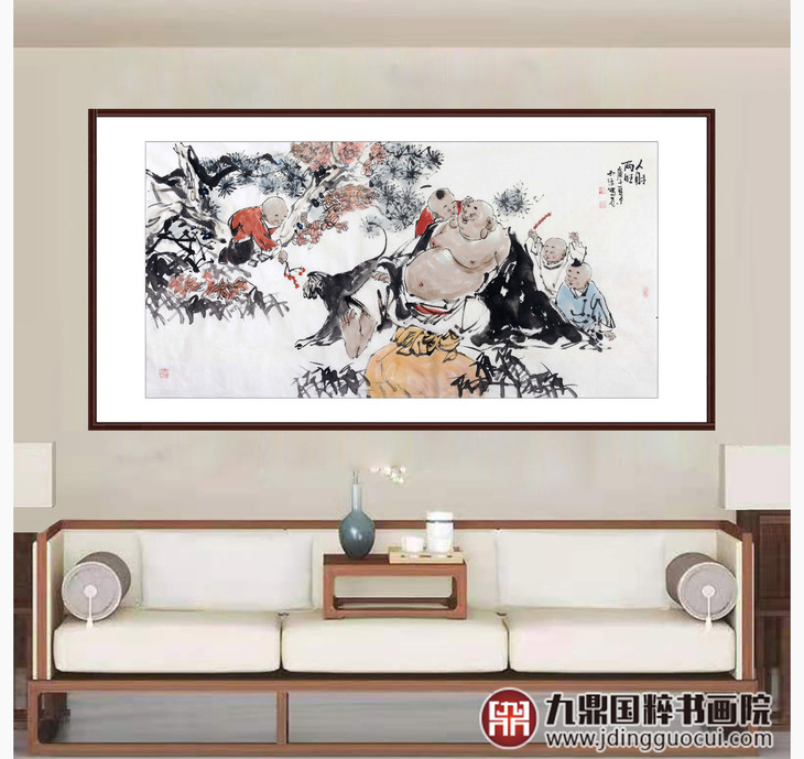 杨西沐《人财两旺》68*138cm 人物横幅作品 茶室/客厅挂画
