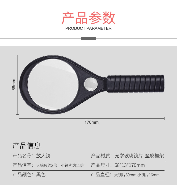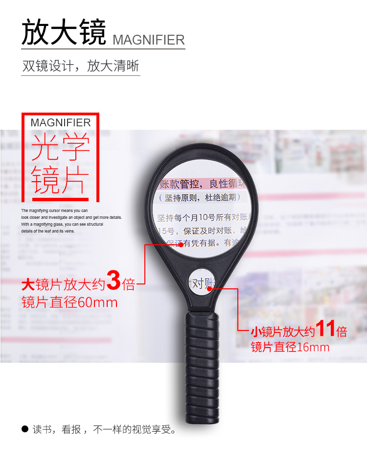 晨光放大镜3.5倍高清高倍数阅读放大镜手持式便携式老人眼镜老人阅读看报高清塑料柄儿童