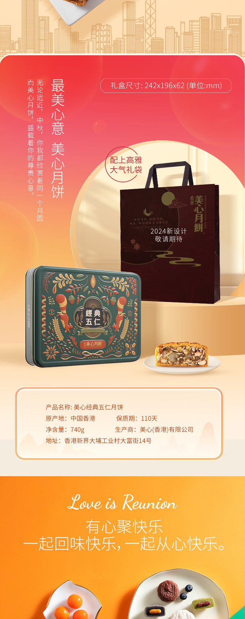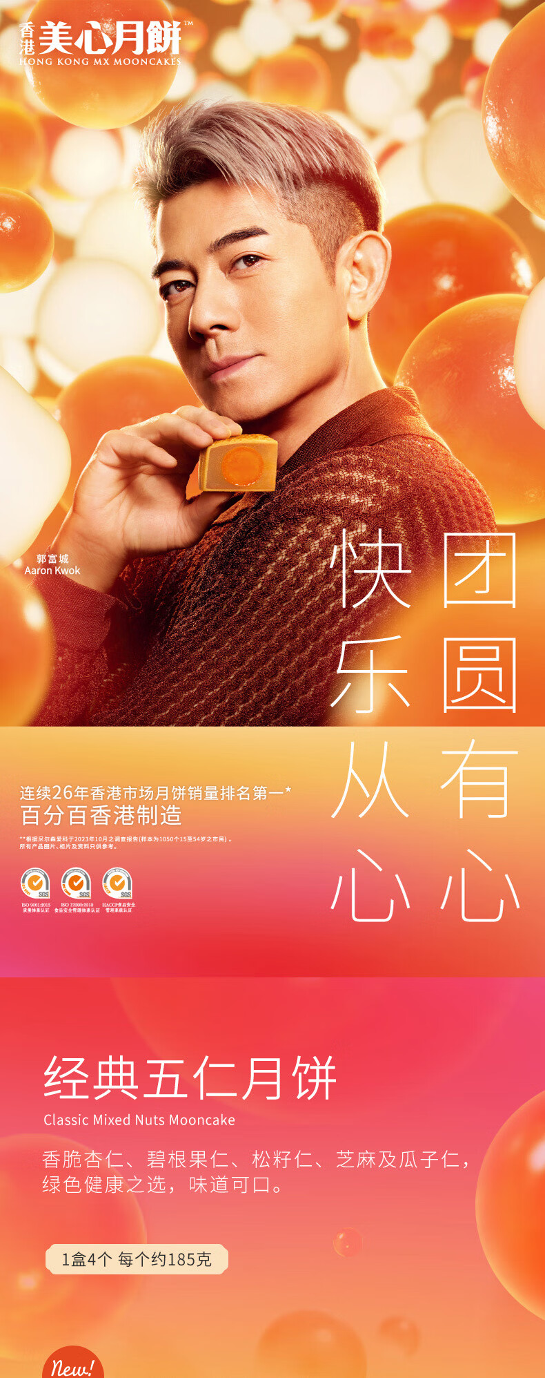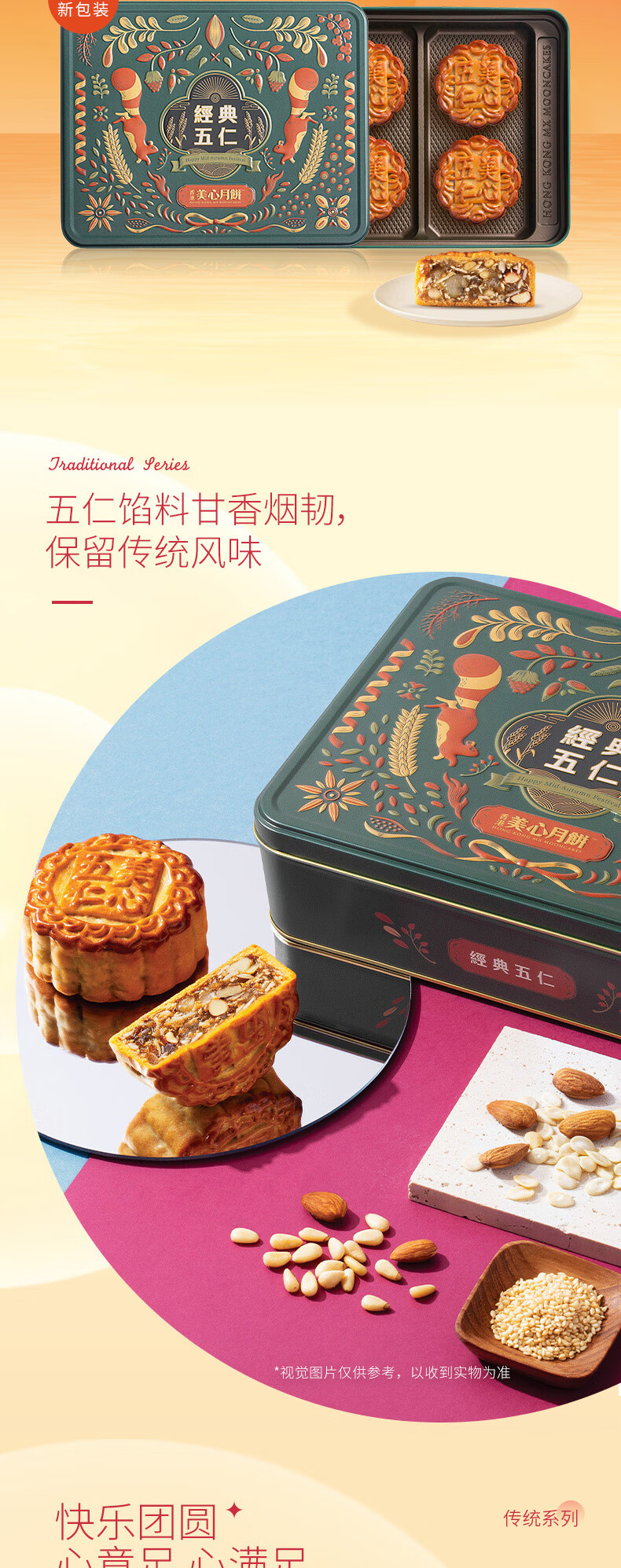 【港版】香港美心 | 经典五仁中秋月饼礼盒185g*4粒铁盒装