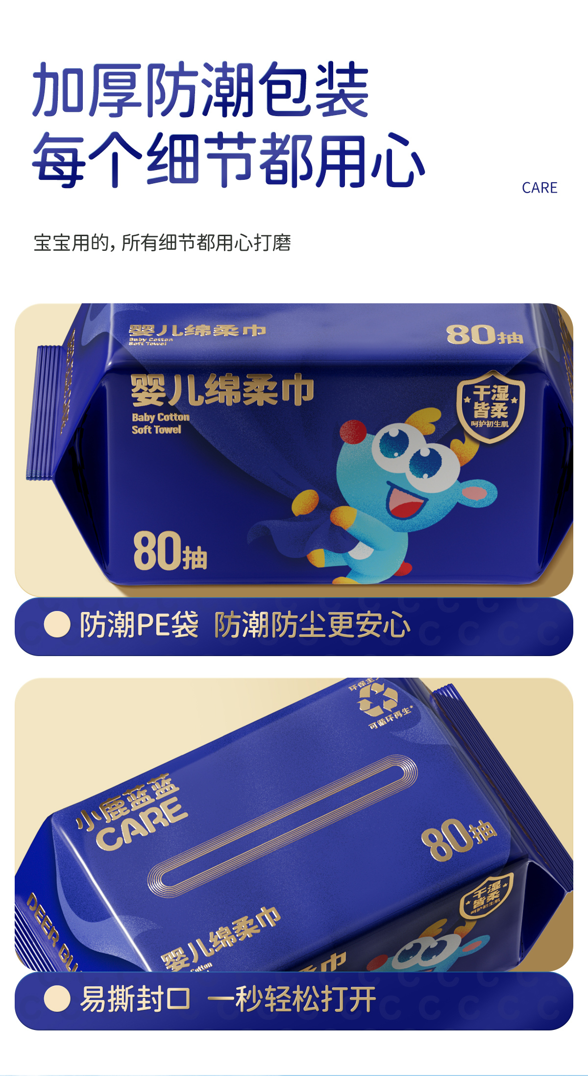 【婴儿绵柔巾】干湿两用加厚新生儿专用洁面洗脸巾80抽