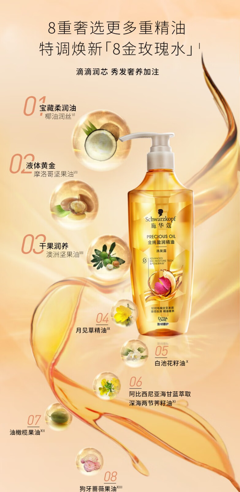 施华蔻金纯盈润精油洗发露600ml