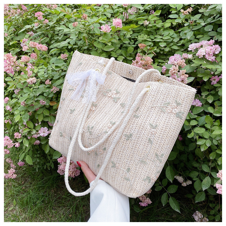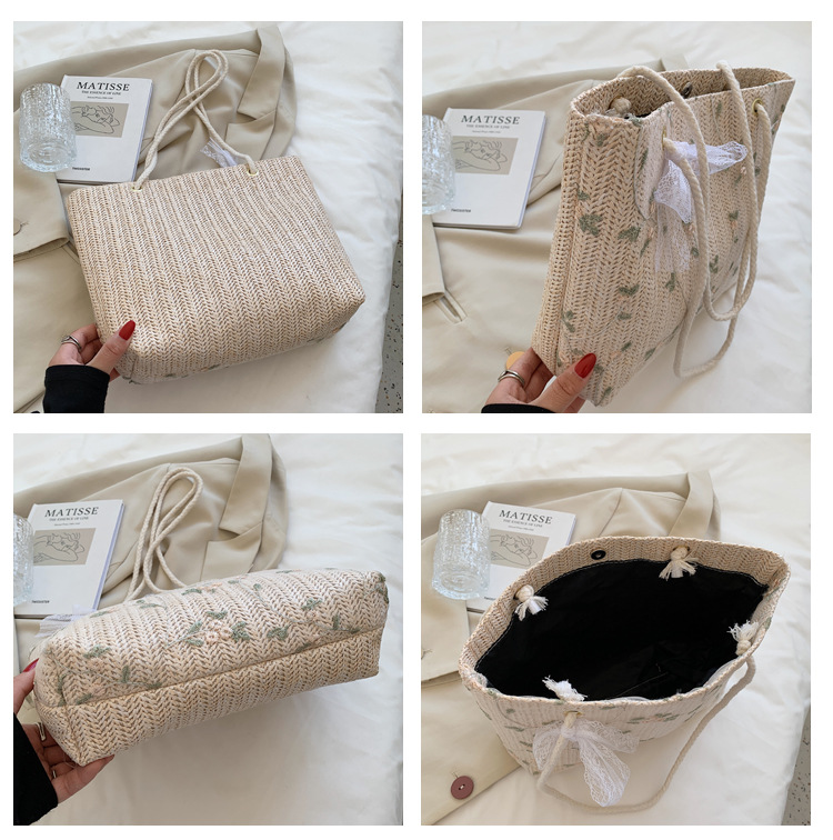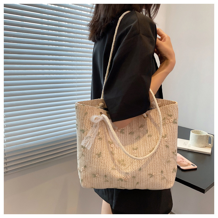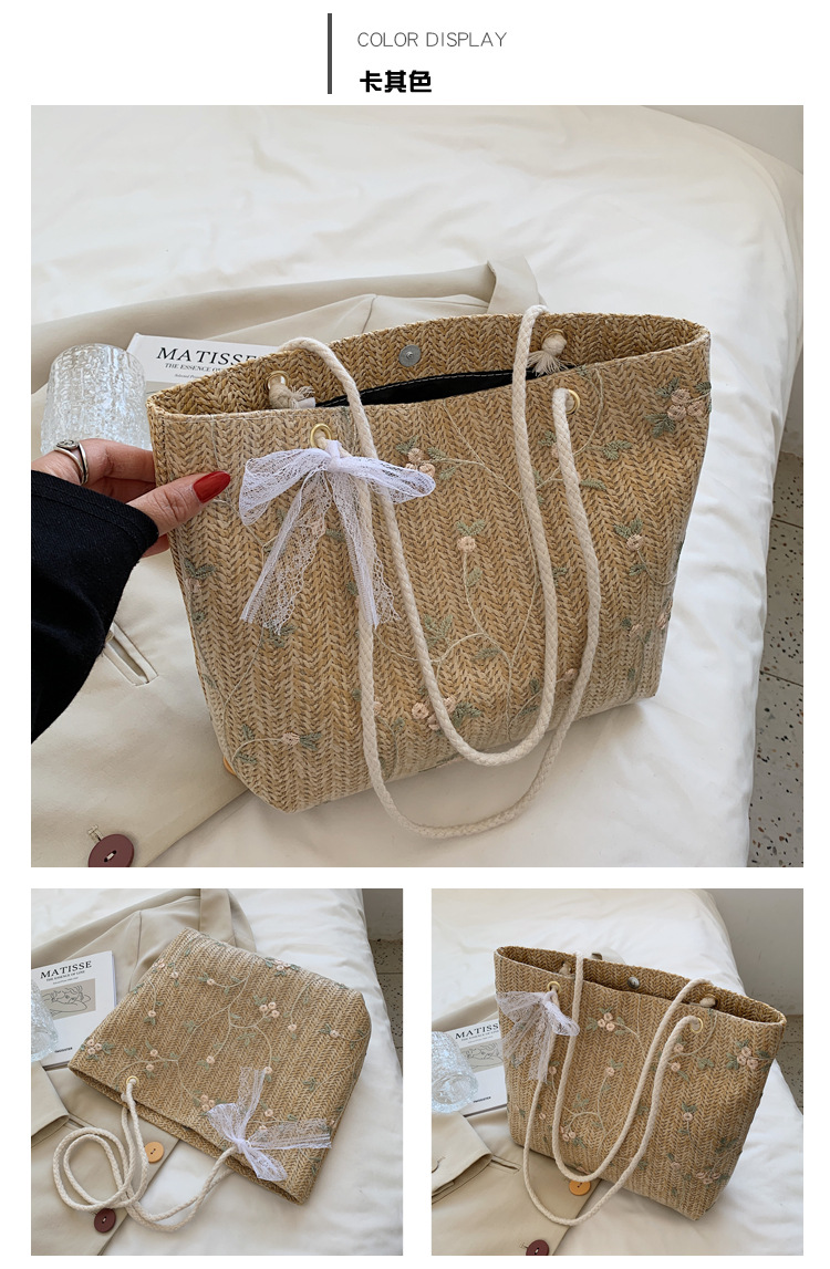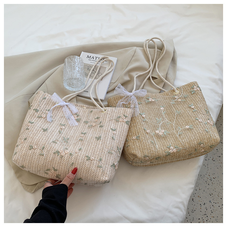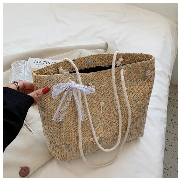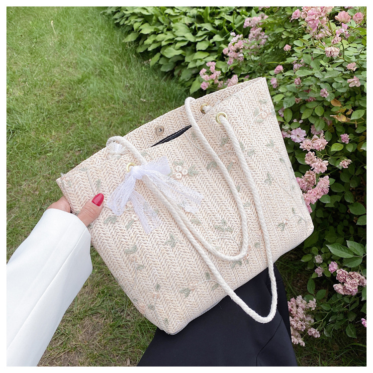 【YOOE】简约草编洋气单肩托特包 蝴蝶结小清新编织手提包 新款户外沙滩大容量包