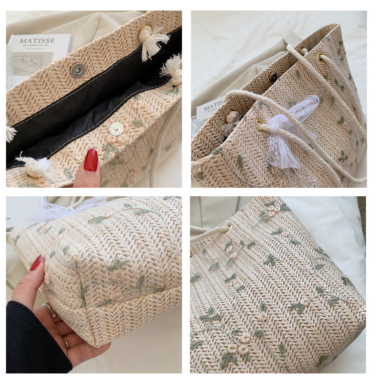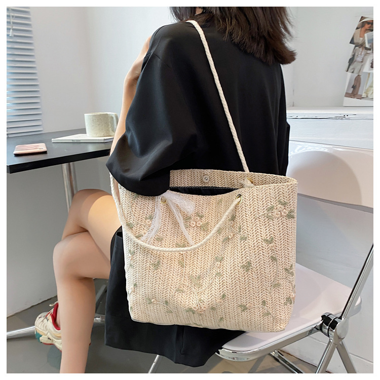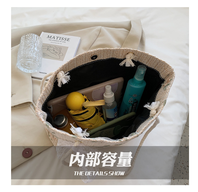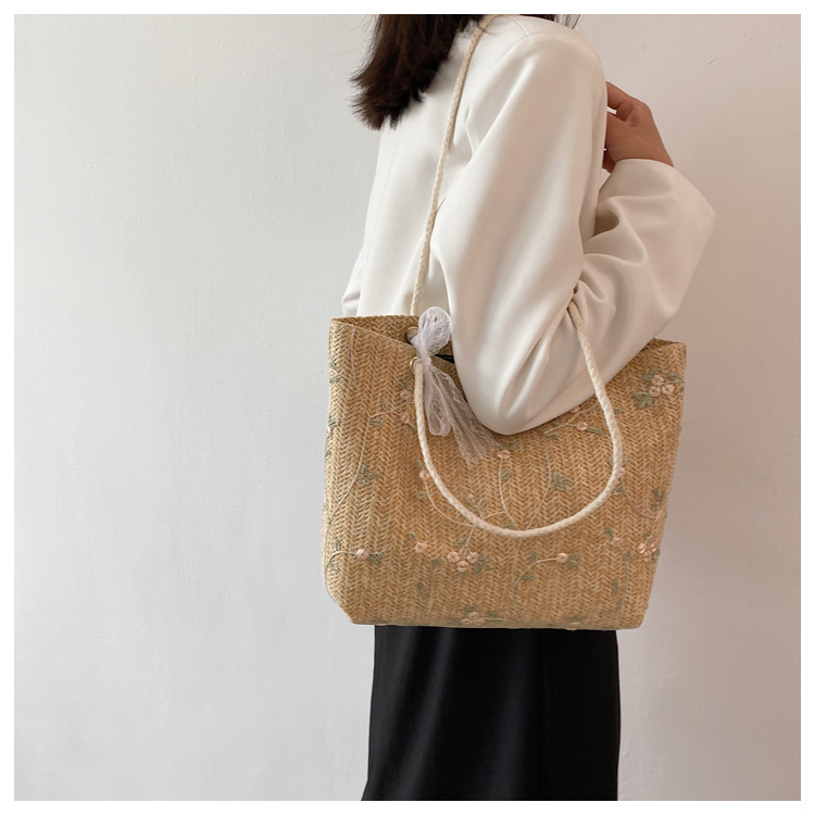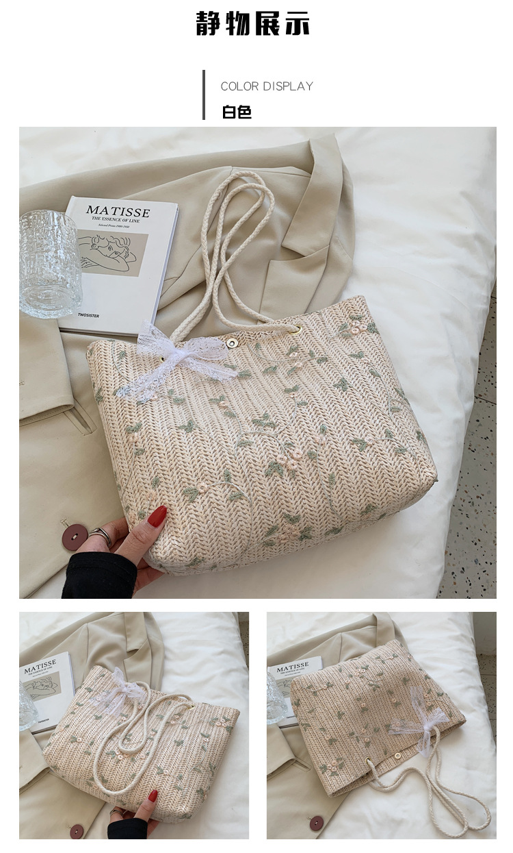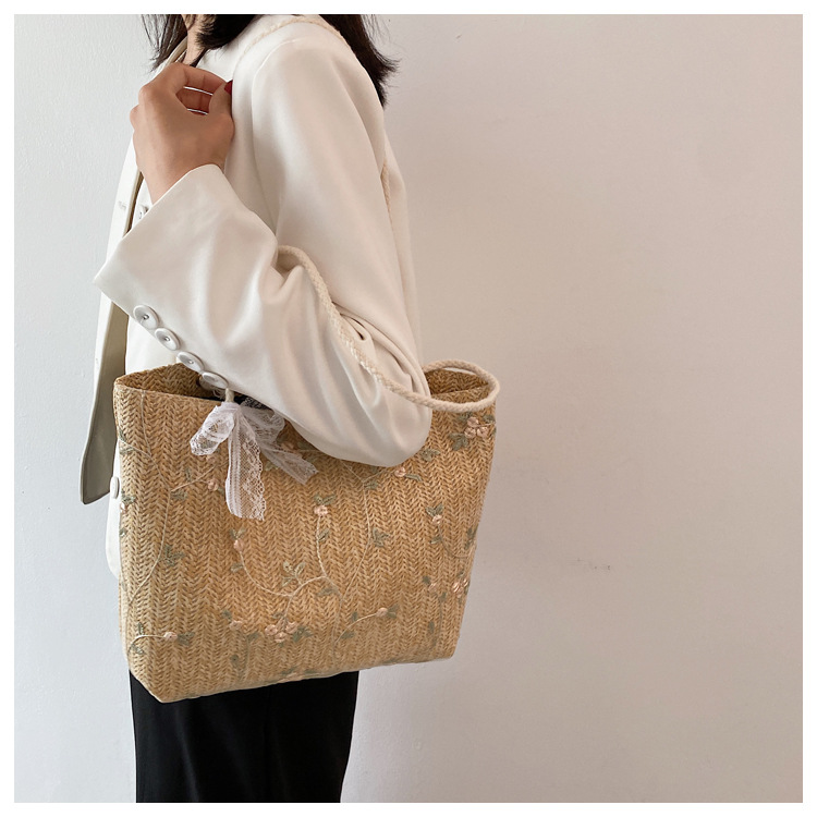 【YOOE】简约草编洋气单肩托特包 蝴蝶结小清新编织手提包 新款户外沙滩大容量包