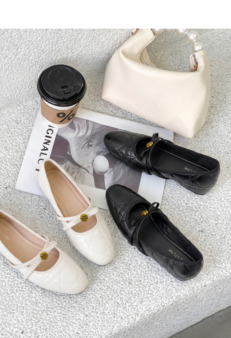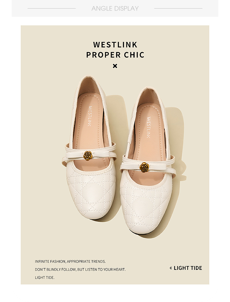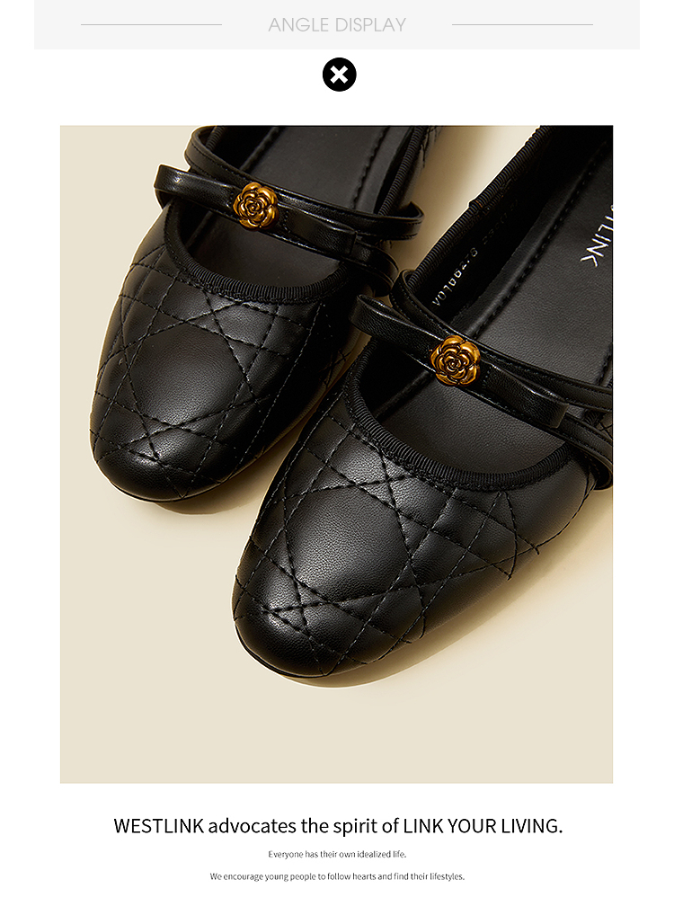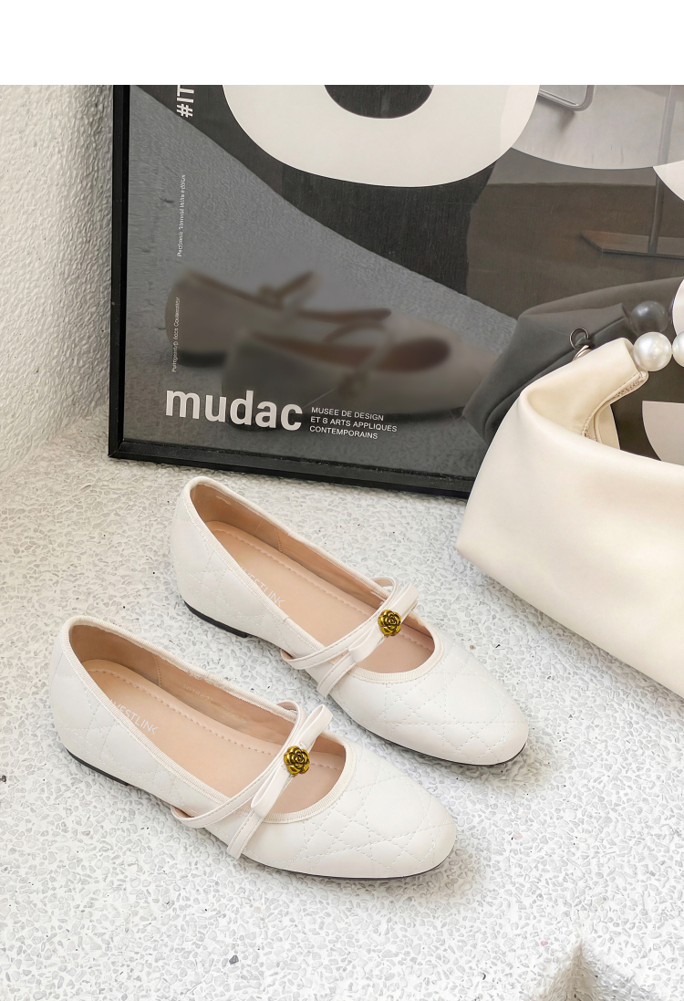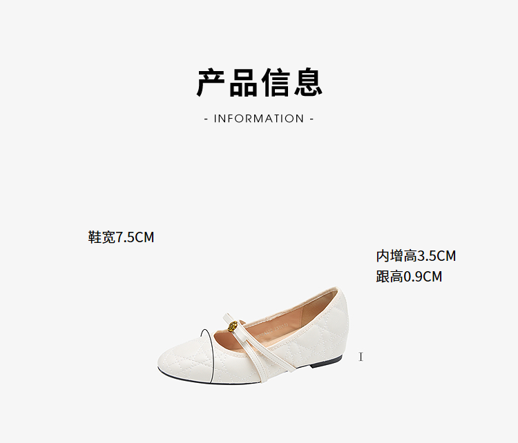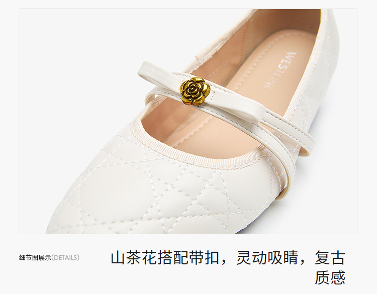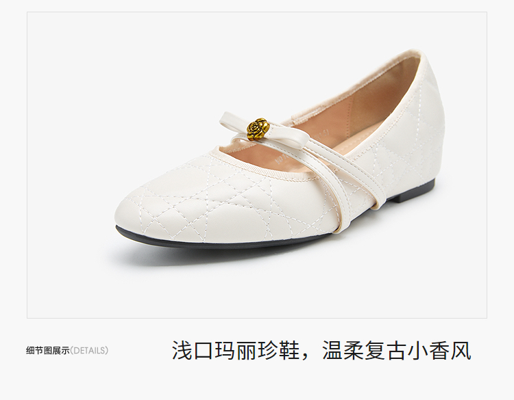 西遇内增高玛丽珍鞋女2026春季新款菱格单鞋山茶花一字带小皮鞋V0166278