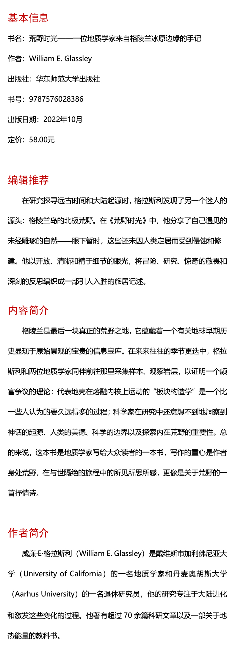 荒野时光 一位地质学家来自格陵兰冰原边缘的手记 三棱镜译丛 北极普及读物