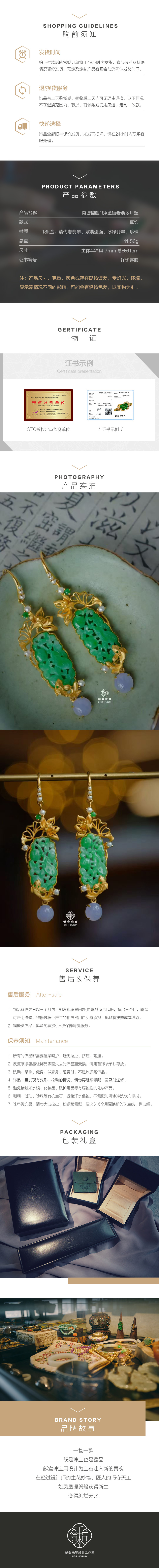 龢盒原创 荷塘锦鲤18k金镶老翡翠耳坠