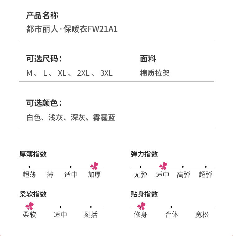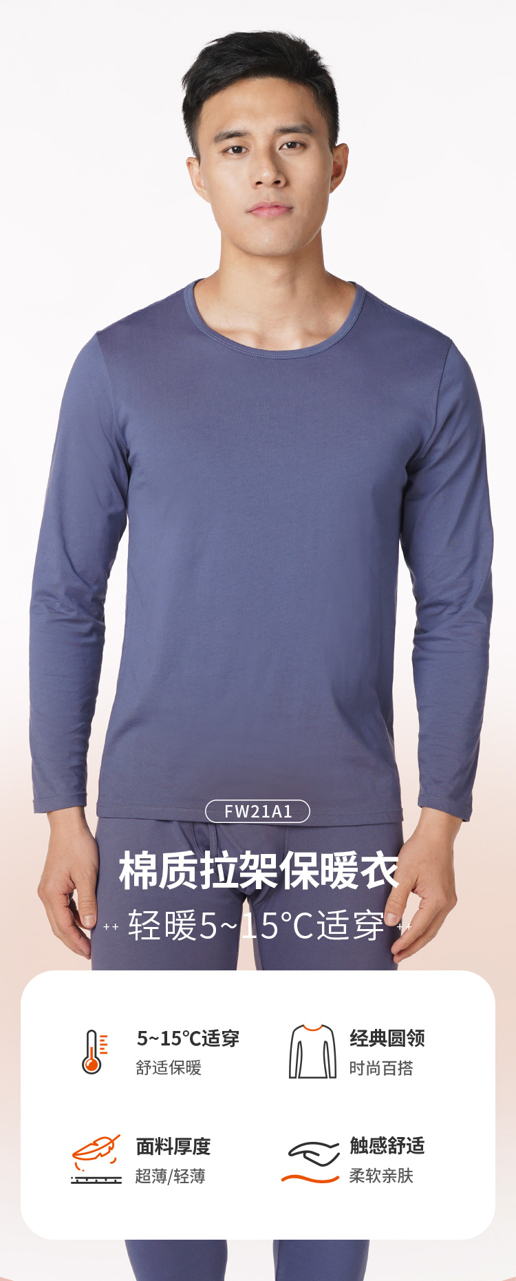 都市丽人都市锋尚轻暖5至15度男士棉质正价套装棉拉架薄套装保暖衣FW21A1