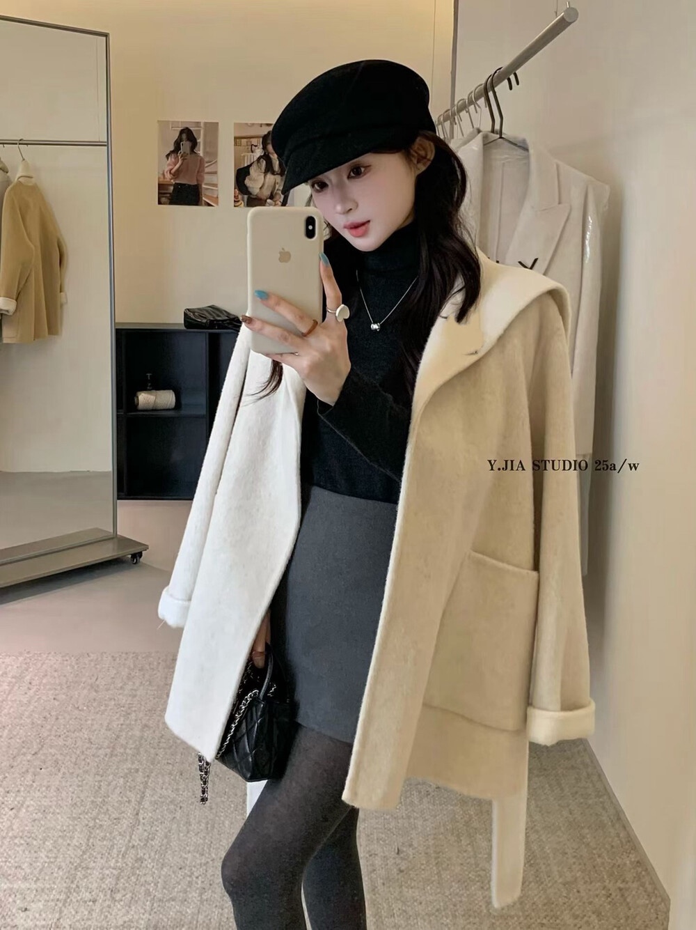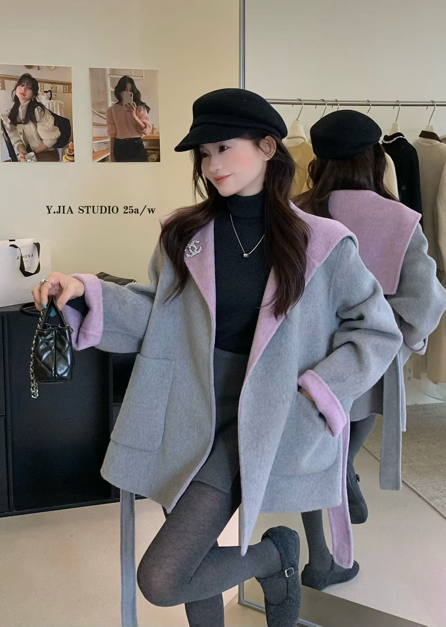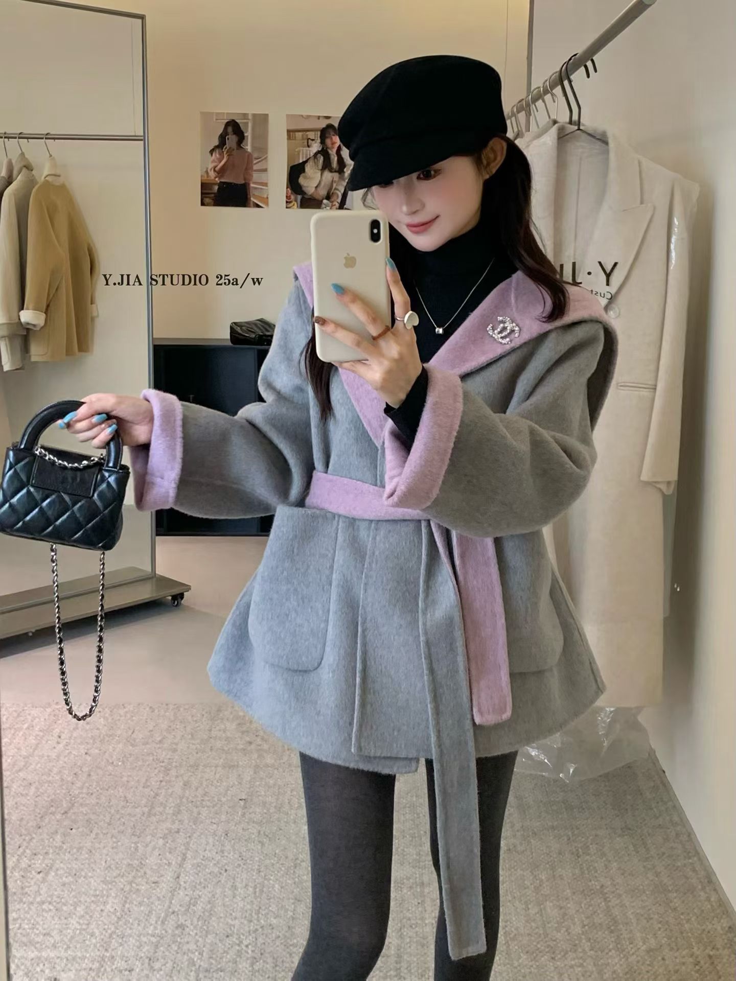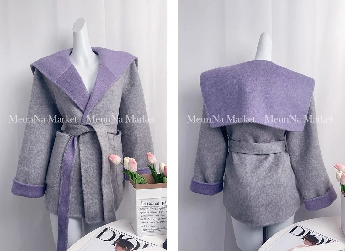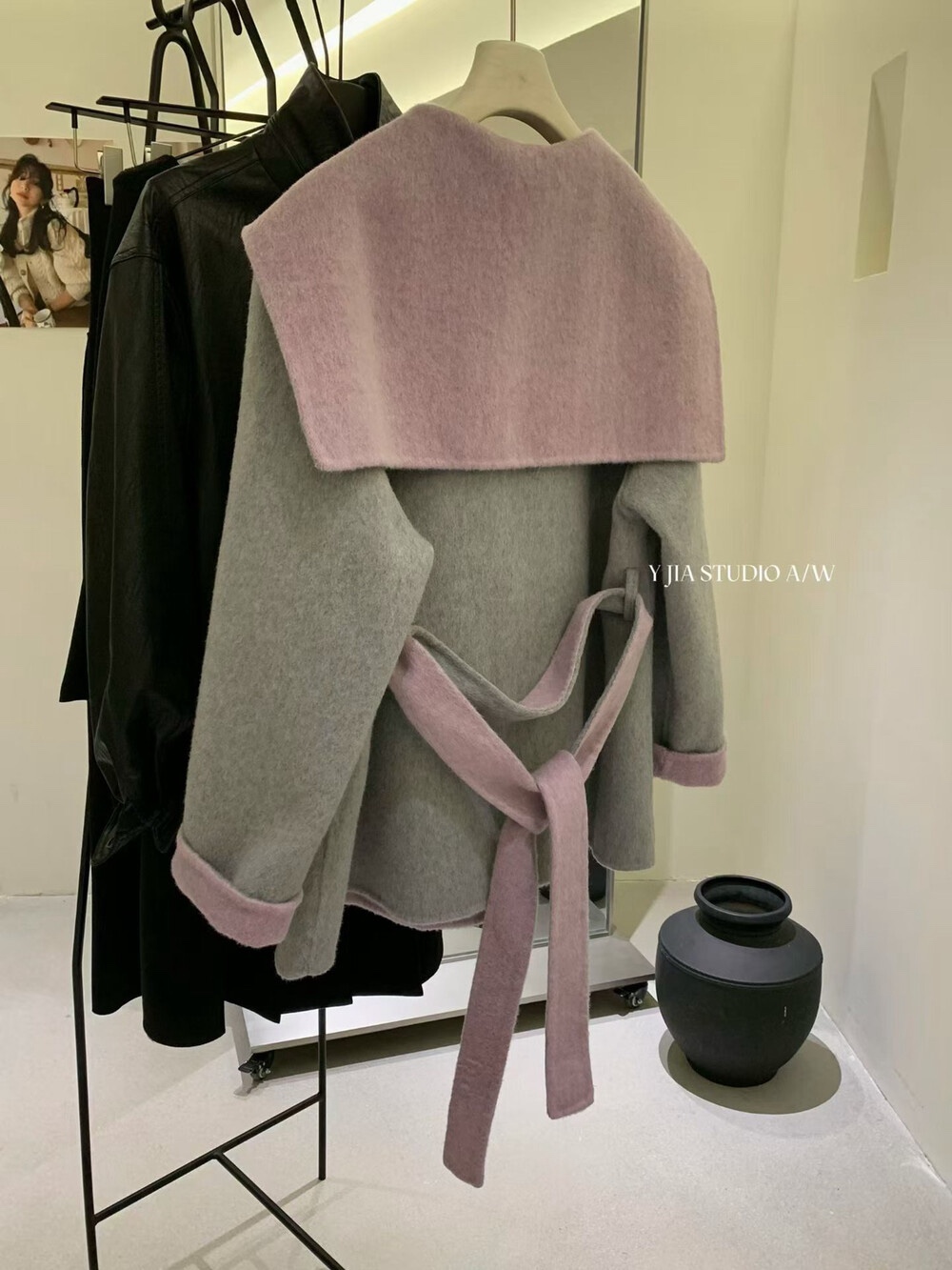 【品名】西蒙日记青乔慕染撞色双面羊毛呢大衣