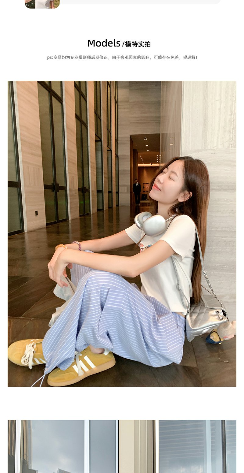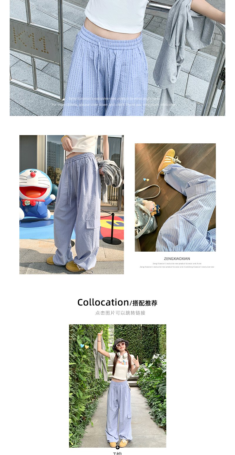 <曾小咸推荐>现货秒杀!卖完不补 !微信打折价!蓝色条纹休闲裤束脚裤 日常179.99 立减80 秒杀99.99!