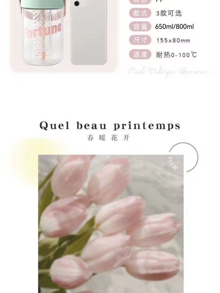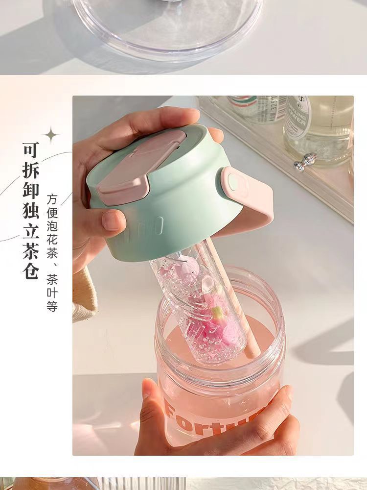 「三款可选!郁金香随身杯」夏季水杯女ins吸管杯学生颜值茶水分离泡茶杯子男款上班族颜控餐饮用具